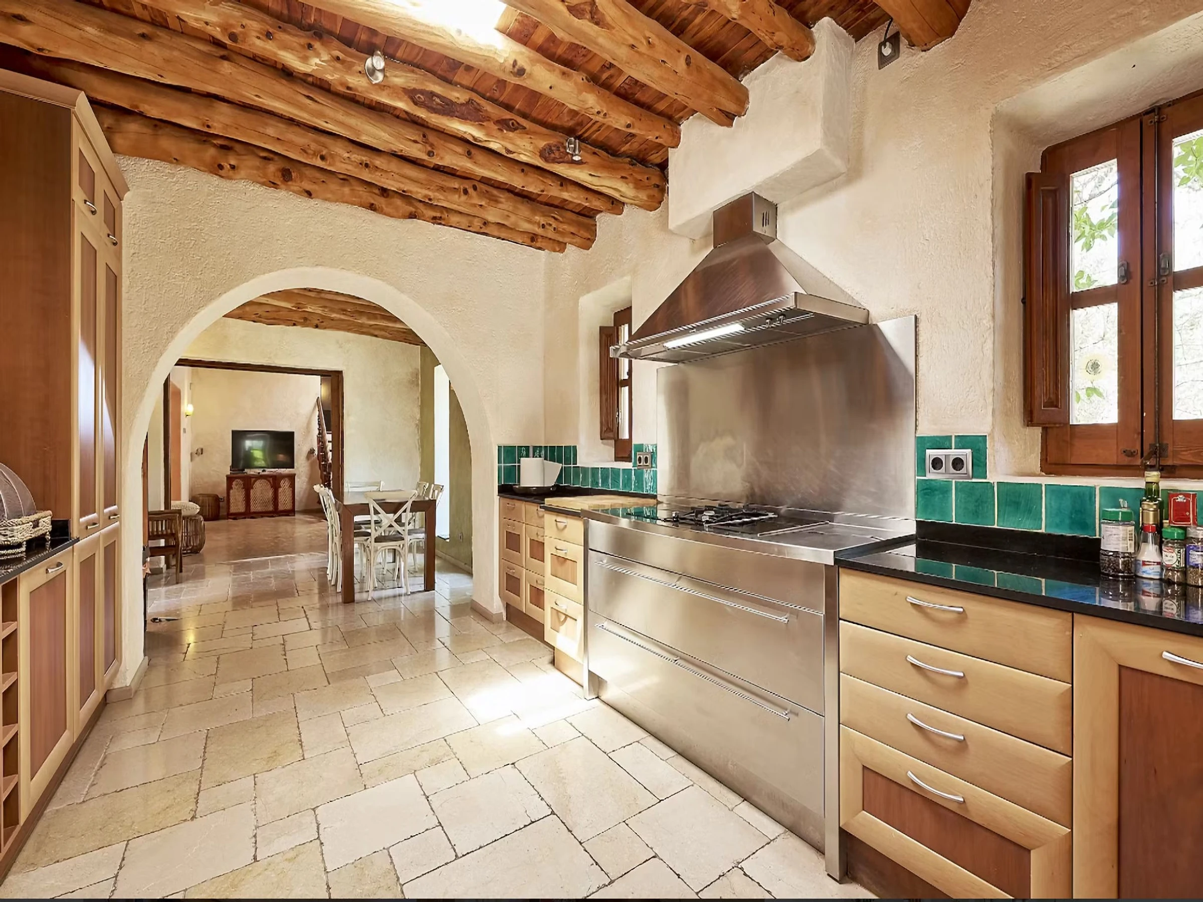 La cuisine, est équipée avec réfrigérateur, micro-ondes, four, lave-vaisselle et cafetière.