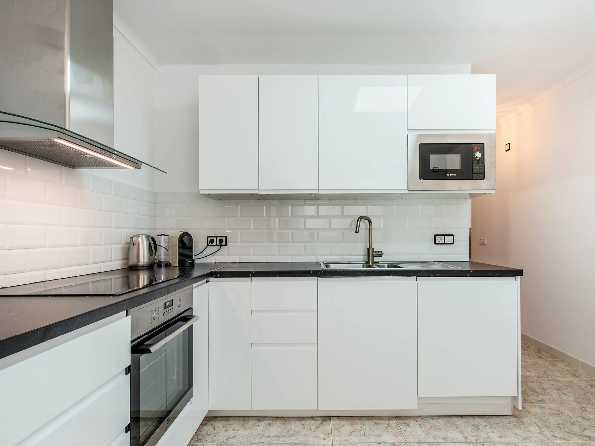 La cuisine, est équipée avec réfrigérateur, micro-ondes, four, congélateur, lave-vaisselle, cafetière, grille pain et bouilloire.