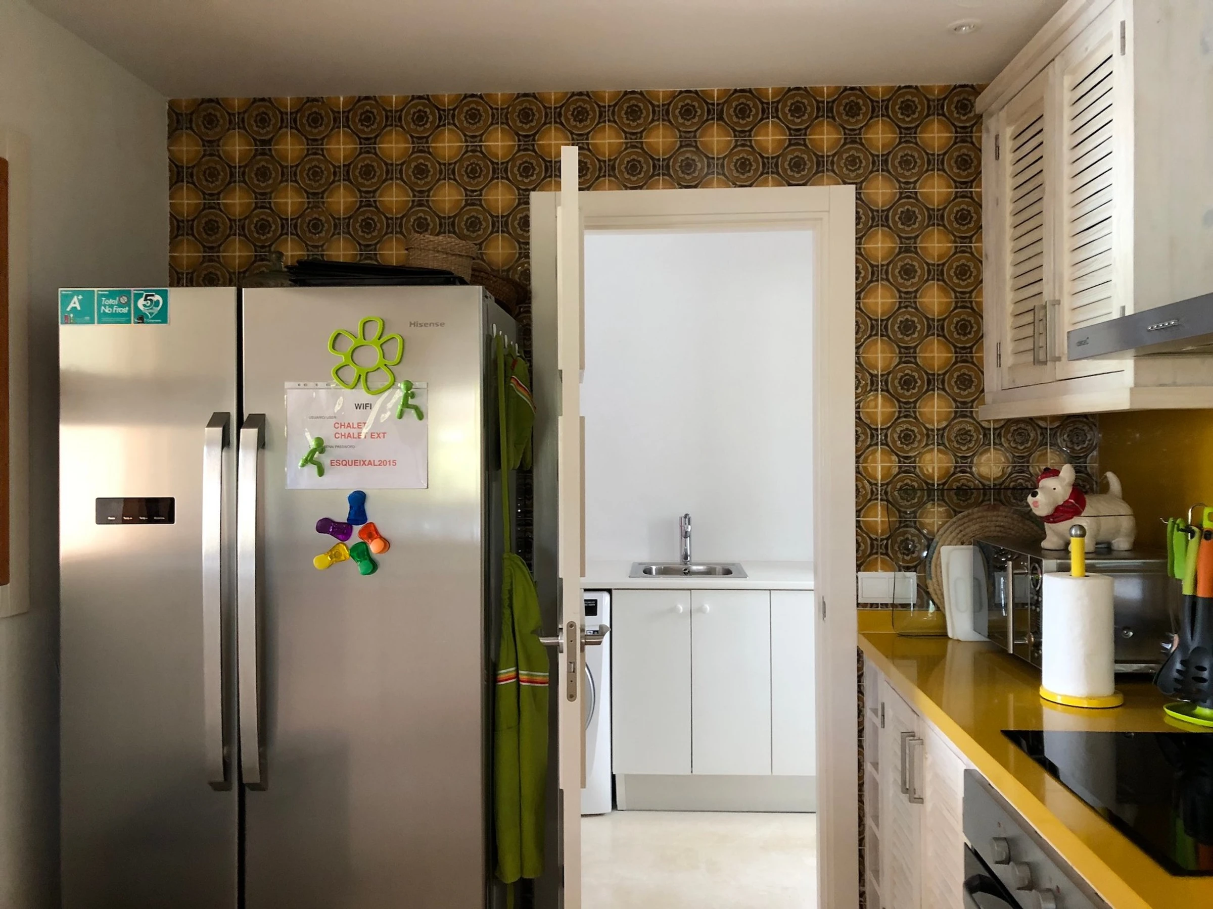 La cuisine, est équipée avec réfrigérateur, micro-ondes, four, congélateur, lave-vaisselle, cafetière, grille pain et bouilloire.