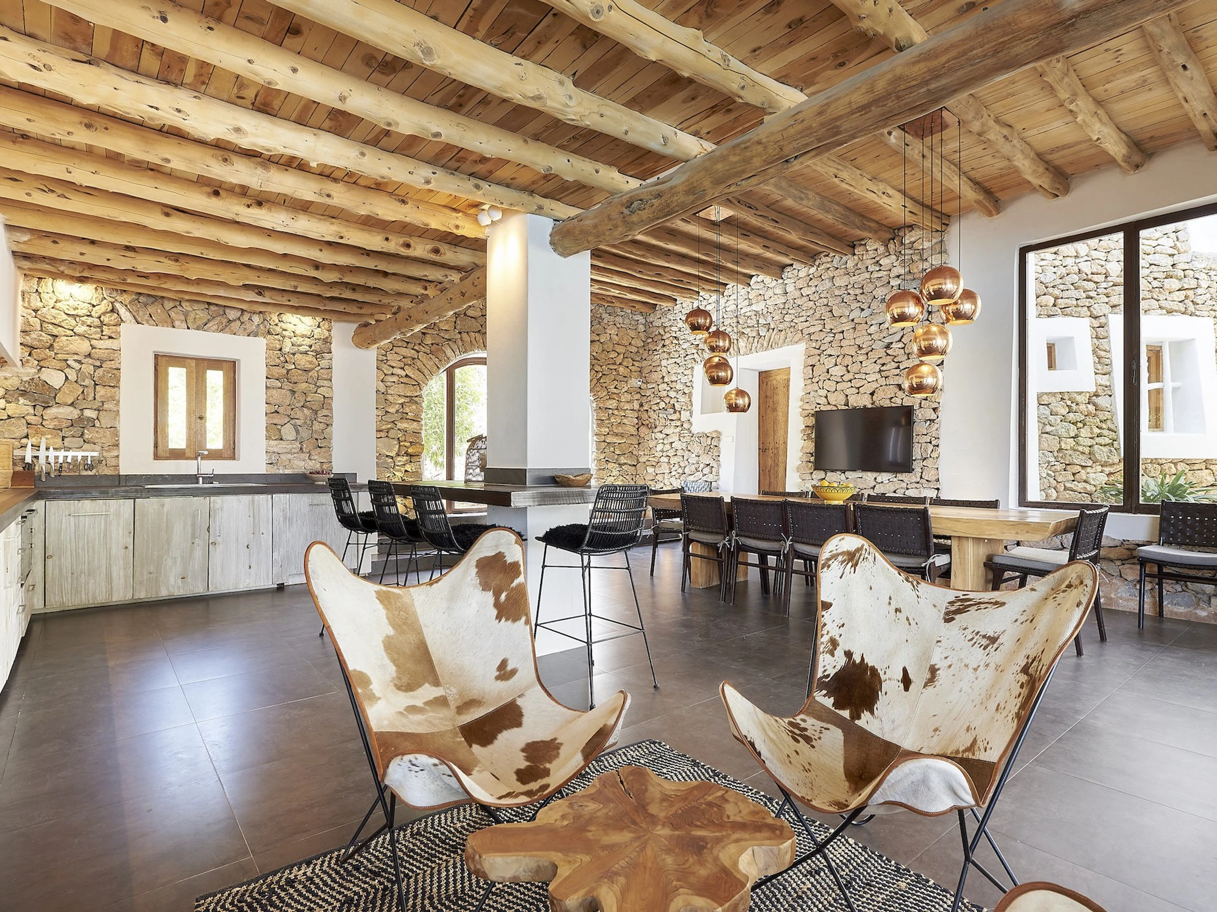 Villa Ibicenca Idéalique avec Cheminée et Climatisation, 5 Chambres