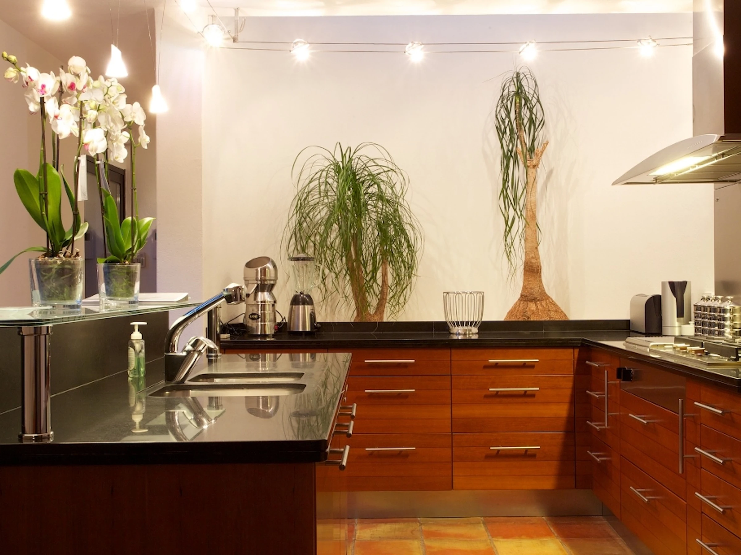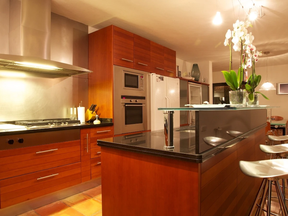 La cuisine, est équipée avec réfrigérateur, micro-ondes, four, lave-vaisselle, cafetière et grille pain.