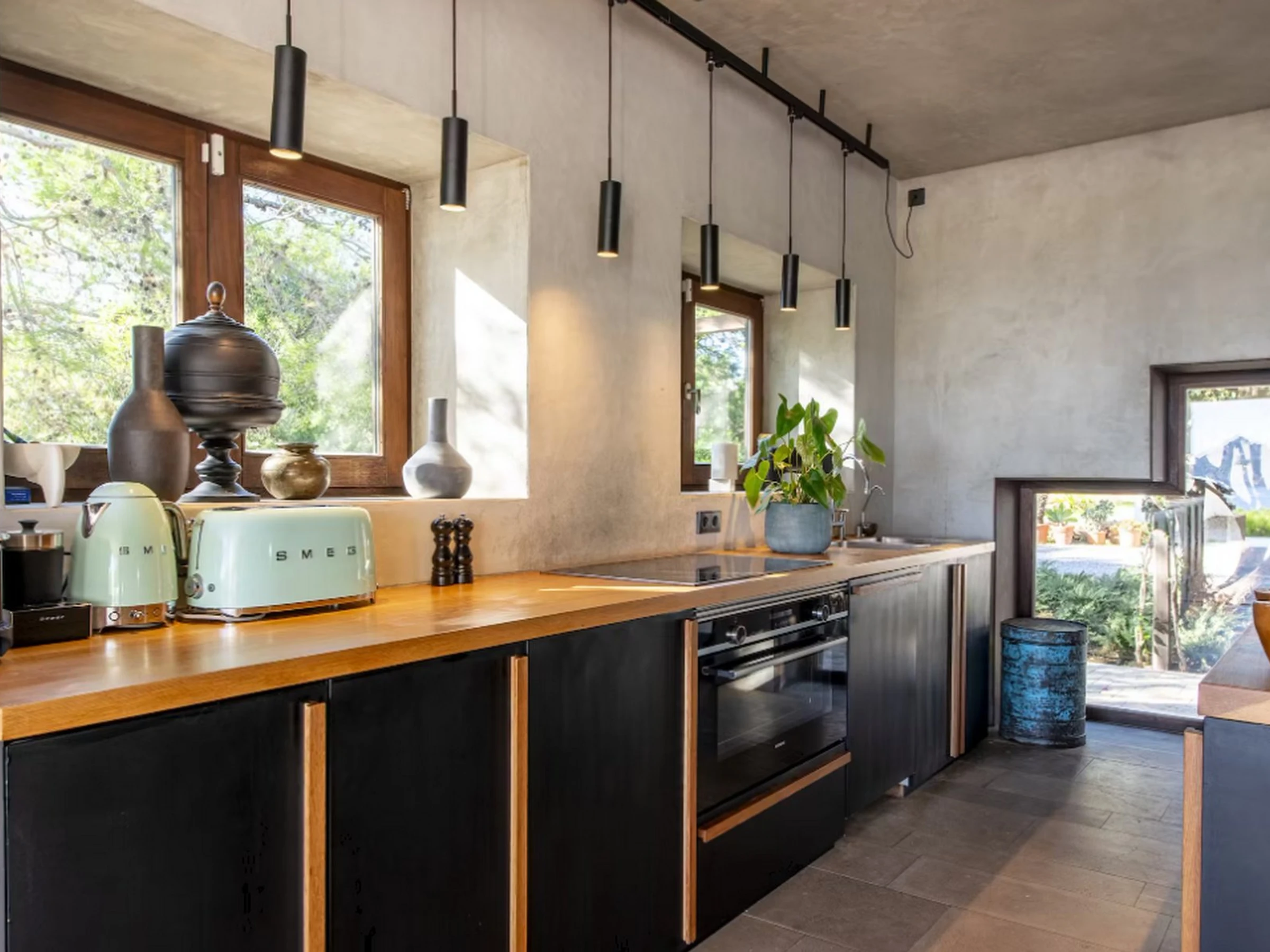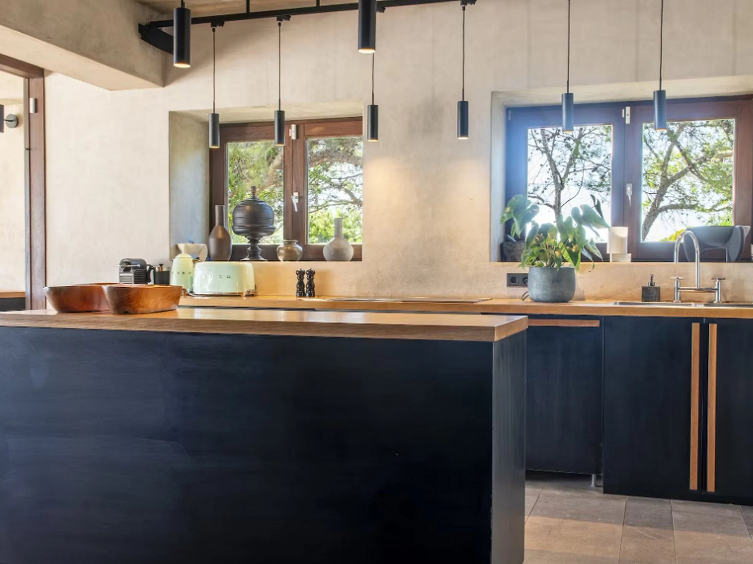 La cuisine, est équipée avec réfrigérateur, micro-ondes, four, congélateur, lave-vaisselle, cafetière, grille pain et bouilloire.