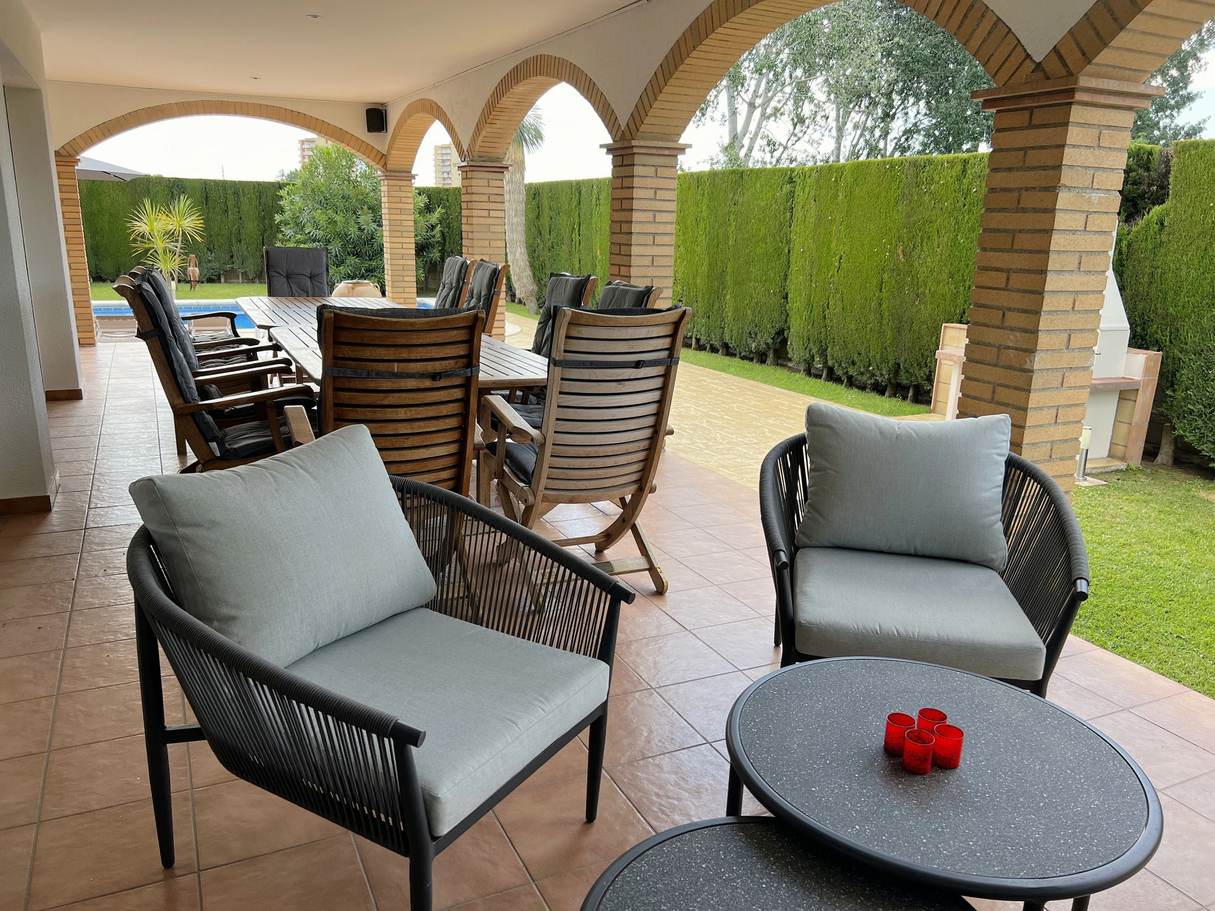À l’intérieur, la villa allie confort et commodité avec un salon chaleureux, une cuisine entièrement équipée, ainsi que des chambres et salles de bains spacieuses, idéale pour les familles ou les groupes. À l’extérieur, profitez de votre oasis privée : un magnifique jardin, une terrasse couverte et une piscine accueillante avec transats – parfait pour profiter du soleil espagnol.