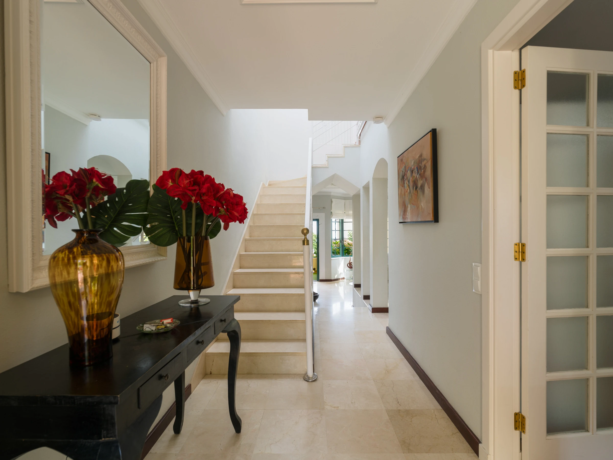 Parmi ses caractéristiques, on peut citer le sol en marbre, la climatisation individuelle dans le salon et certaines chambres, le chauffage par pompe à chaleur, la connexion WiFi et la cheminée pour les soirées plus fraîches.