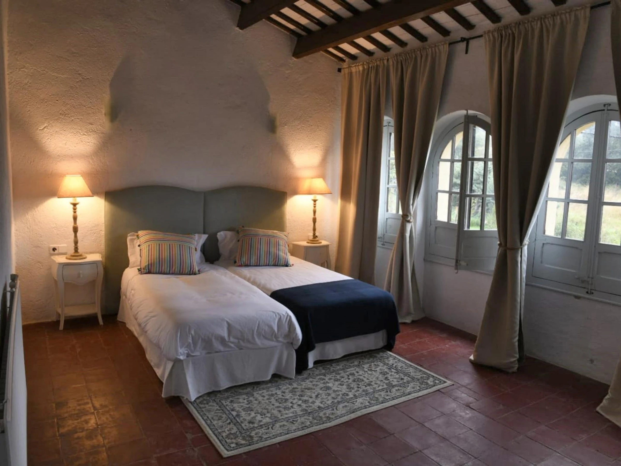 Premier étage : une chambre avec deux lits simples, cinq chambres avec lits doubles, deux salles de bains avec douche et une grande pièce à partir de laquelle on accède à toutes les chambres.