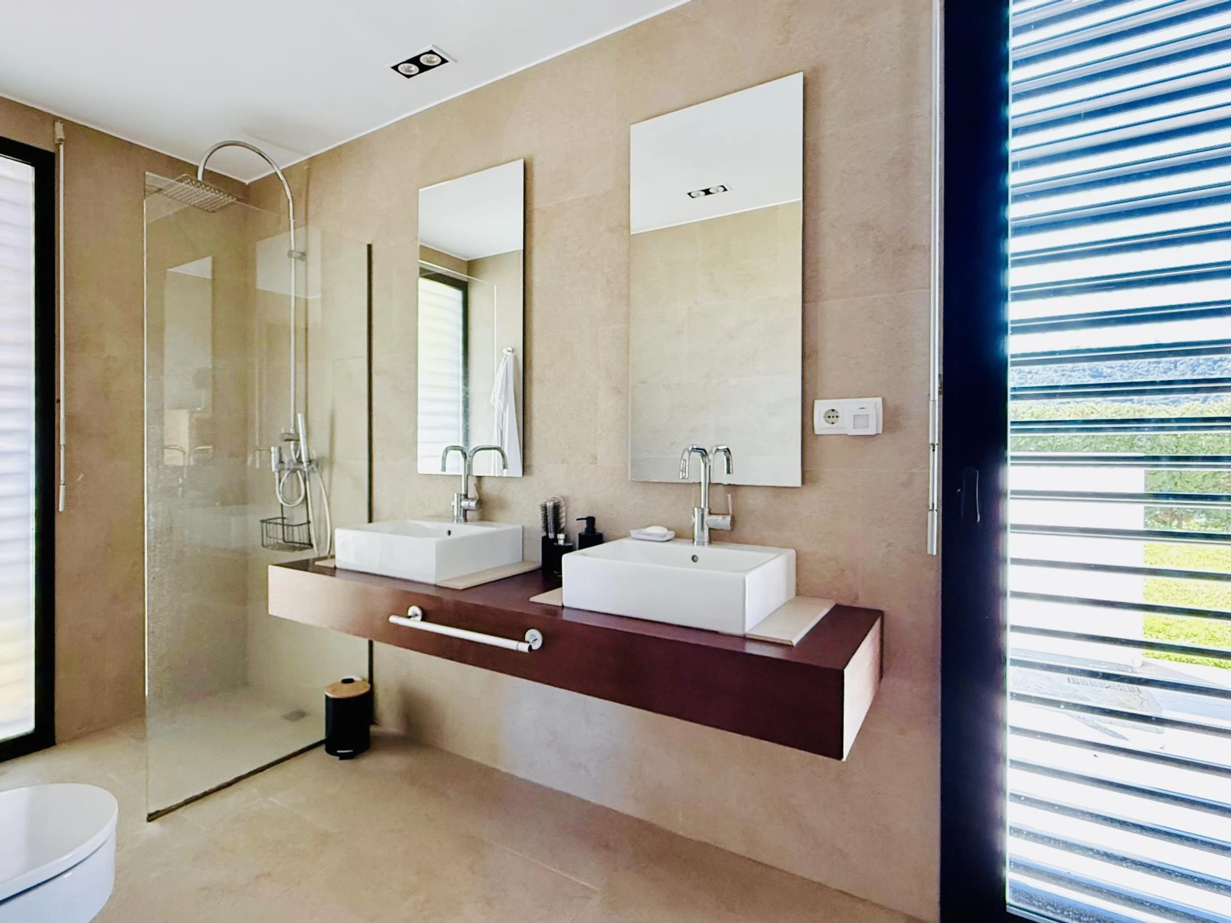 Ce logement spectaculaire dispose de 300 m2 habitables et de 24 m2 de piscine. La maison est de construction récente, réalisée avec des matériaux de bonne qualité. La décoration est moderne et fraîche et dispose de nombreux accessoires qui vous permettront de profiter de vacances relaxantes et charmantes. En entrant dans la maison, vous trouverez un très grand salon à côté de la salle à manger, avec accès direct à la cuisine, accès direct à la piscine et vue sur l'étage supérieur. Au rez-de-chaussée, nous avons également une suite avec sa propre salle de bain, une chambre double et une autre salle de bain. Depuis la suite, nous avons également un accès direct à la piscine où nous pouvons profiter d'une baignade rafraîchissante. A l'étage, nous avons deux chambres doubles, une salle de bain et un salon avec table et chaises, ouvert avec vue sur le rez-de-chaussée.