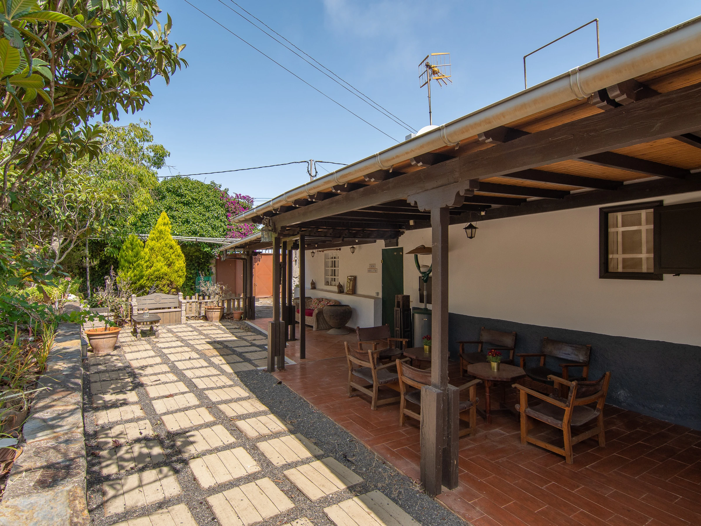 Autour de la maison se trouve un domaine privé de [hidden] m² rempli d'arbres fruitiers, qui offrent une ombre rafraîchissante et des arômes délicieux. Le chant apaisant des oiseaux crée une atmosphère de paix, parfaite pour prendre le thé tout en contemplant le lever de soleil canarien impressionnant ou simplement se reposer à l'ombre fraîche du jardin.