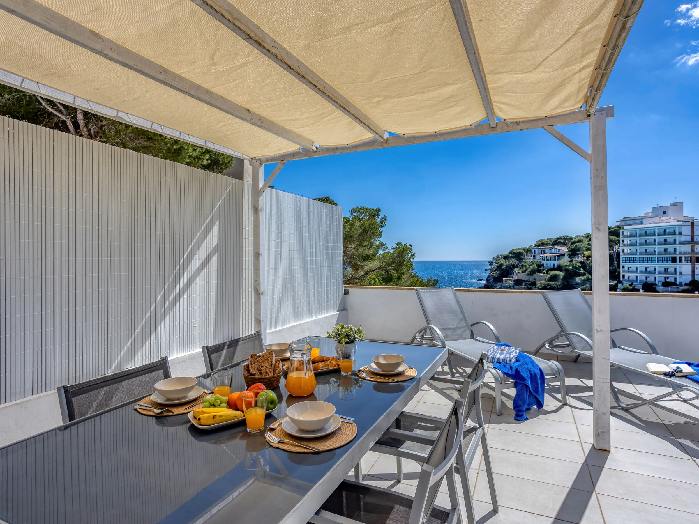 Drac 5 dans un emplacement unique en première ligne de mer sur la plage de sable blanc et fin de Cala Santanyí, une petite et tranquille baie bordée de pins dans le sud-est de Majorque, à environ 50 km de l\'aéroport. C\'est un appartement spacieux avec balcon et accès à la terrasse. Il dispose de deux chambres doubles, dont une avec accès au balcon, de deux salles de bains, d\'un salon avec accès au balcon, d\'une salle à manger et d\'une cuisine entièrement équipée avec plaque de cuisson vitrocéramique, four électrique, micro-ondes et réfrigérateur combiné. La salle à manger donne sur un escalier extérieur menant à la terrasse. Cette terrasse est meublée de 4 transats, d\'une table avec 4 chaises et d\'un parasol et offre une vue fantastique sur toute la baie. Le logement est meublé et équipé de télévision par satellite, de chauffage central et d\'internet. Un lit bébé et une chaise haute sont fournis sur demande. Bien sûr, le linge de lit et les serviettes sont disponibles.