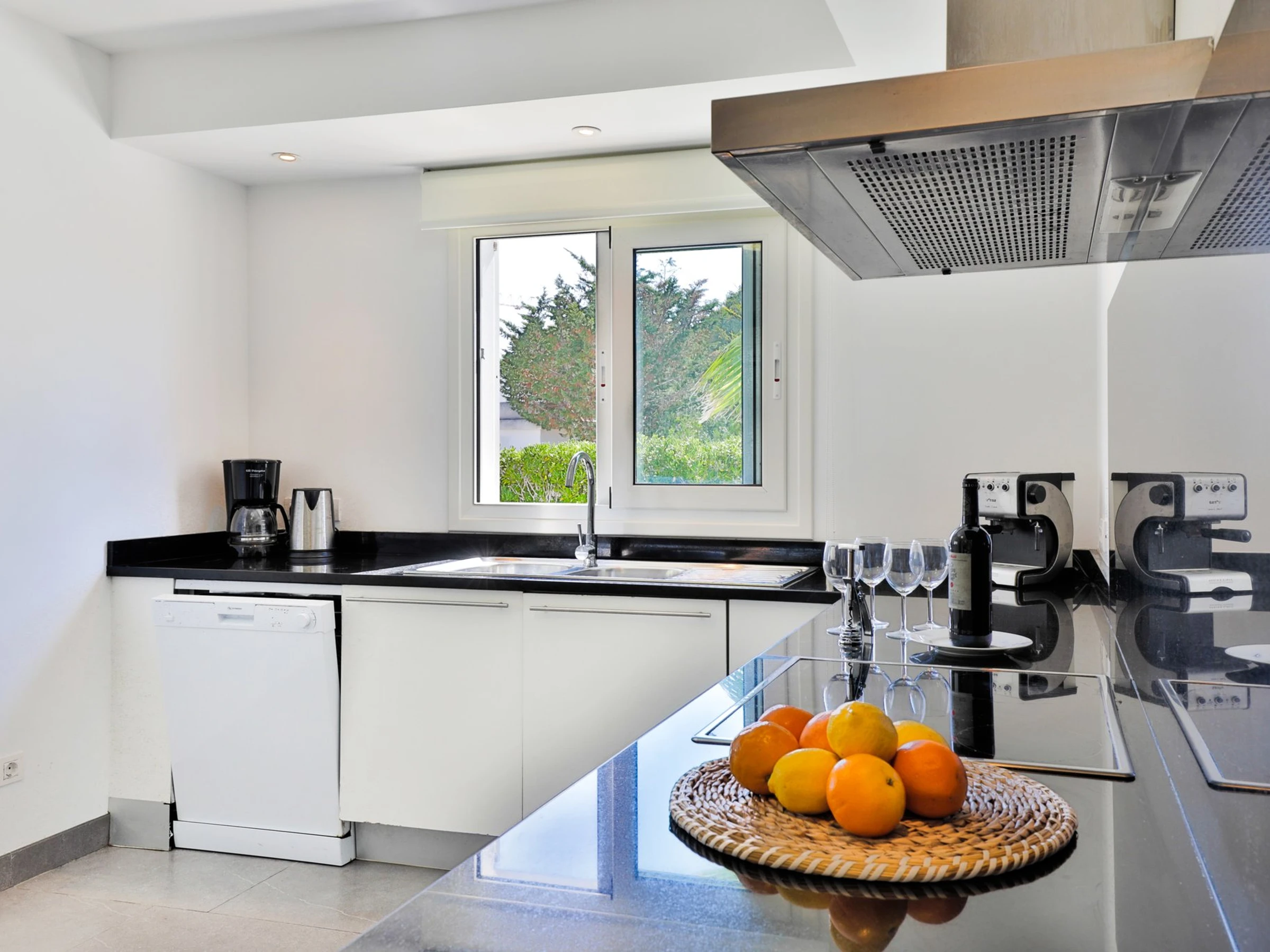 La cuisine, est équipée avec réfrigérateur, micro-ondes, four, lave-vaisselle, cafetière, grille pain et bouilloire.