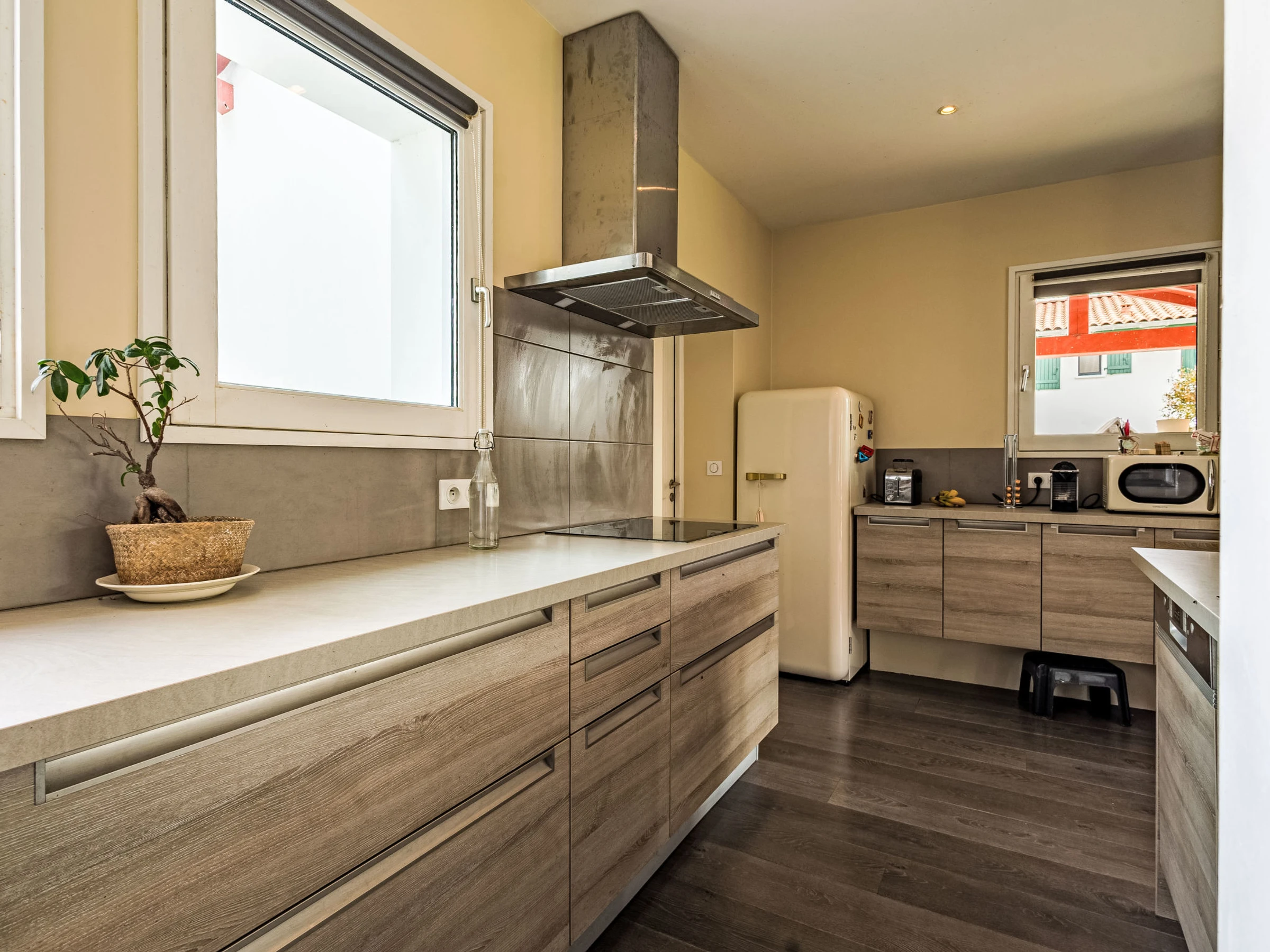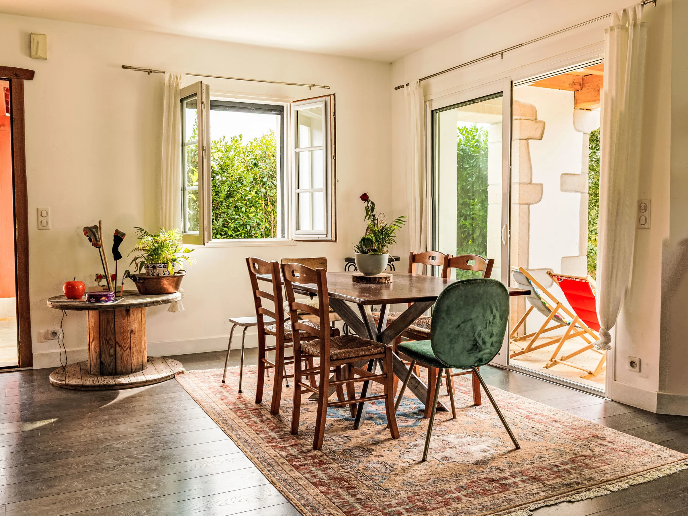 "OLHAKO BIDEA", maison 5 pièces 150 m2. Aménagement confortable et agréable: séjour/salle à manger avec TV (écran plat). Sortie sur le jardin, sur la terrasse. 1 chambre avec 1 grand-lit (140 cm, longueur 190 cm), TV (écran plat). Cuisine ouverte (lave-vaisselle, 3 plaques à induction, grille-pain, bouilloire électrique). WC séparé, bains ou douche. Chauffage par le sol. À l'étage supérieur: 1 chambre 14 m2 avec 1 grand-lit (160 cm, longueur 200 cm). 1 chambre 17 m2 avec 1 grand-lit (140 cm, longueur 190 cm). 1 chambre 17 m2 avec 1 grand-lit (140 cm, longueur 190 cm). Douche, WC séparé. Chauffage électrique. Grande terrasse 30 m2, grand jardin 300 m2. Meubles de terrasse, barbecue, chaises longues. A disposition: lave-linge, fer à repasser, sèche-cheveux. Internet (Connexion WIFI, gratuit). Place de parking. Veuillez noter: 1 animal/ chien de petite taille autorisé. Détecteur de fumée. Annonce d'un particulier (art 155, IV du CGI).