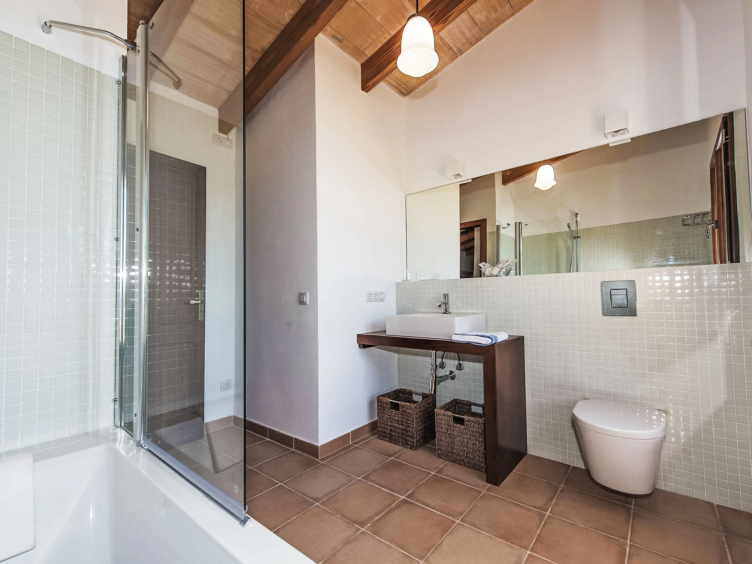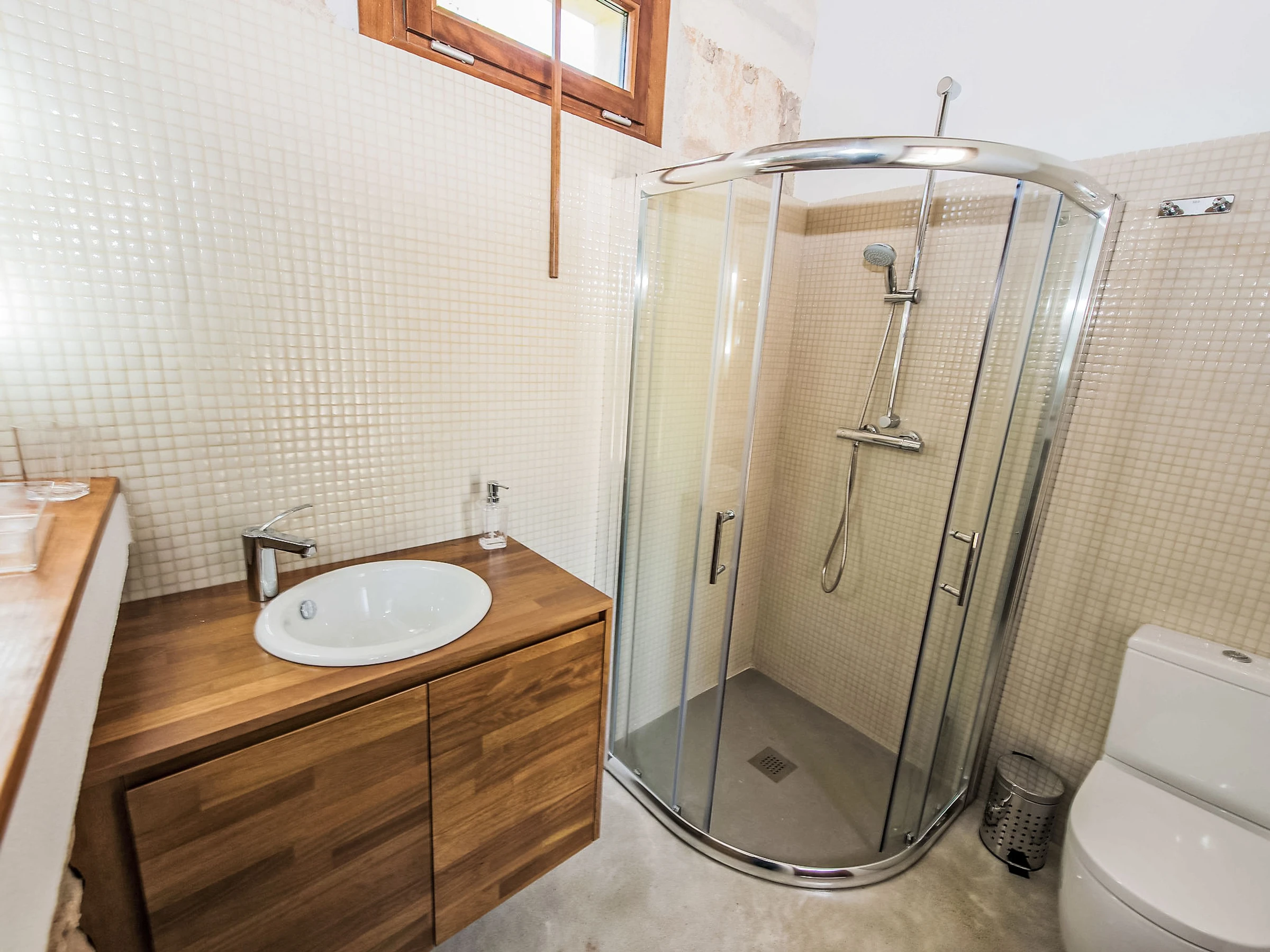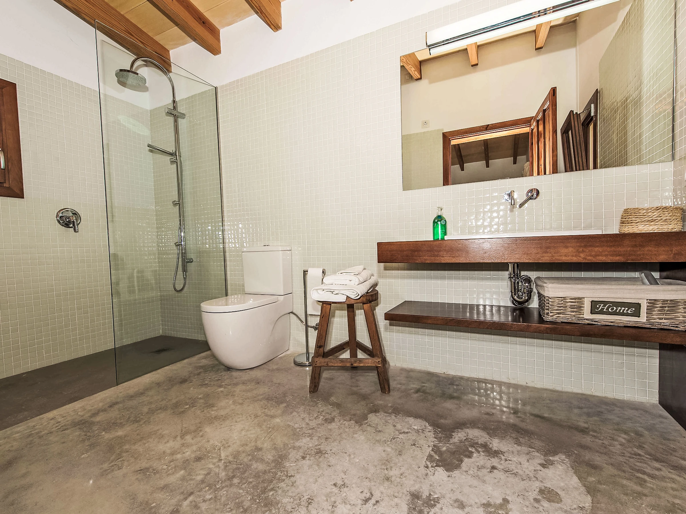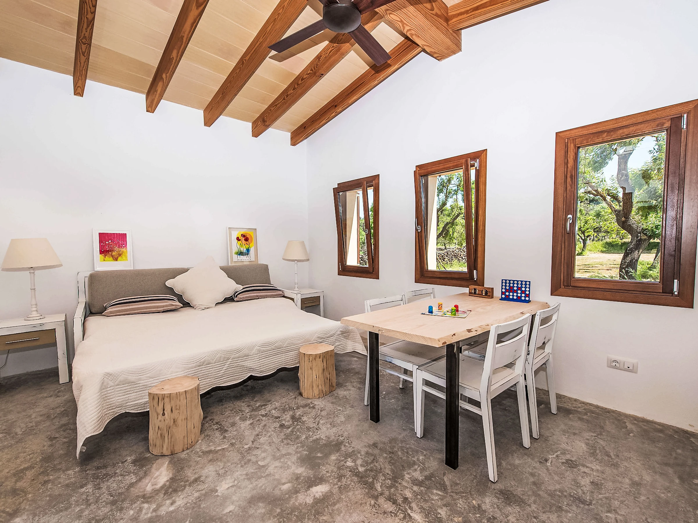 Grand domaine moderne, rustique "Cas Ciutada", année de construction 1850, renové en 2015, environné par les champs. Location composée d'un bâtiment principal et d'une annexe en-dehors de la localité, à 3 km du centre de Selva, situation tranquille, ensoleillée, à 25 km de la mer, dans la verdure. A usage privé: terrain à l'état naturel (clôturé) avec pelouse et plantes, piscine (12 x 5 m, profondeur 50 - 180 cm, disponibilité saisonnière: [hidden] - [hidden] WC dans l'espace piscine, douche extérieure, ping-pong, jardinet, tonnelle, pergola, meubles de jardin, barbecue, espace barbecue, entretien de la piscine par le propriétaire/jardinier. Infrastructures de la Maison: accès internet, Connexion WIFI, réduit pour bicyclettes, air-conditionné. Place de parking près de la maison sur le terrain. Magasin d'alimentation 2 km, supermarché 3 km, restaurant 3 km, bar 3 km, arrêt de bus "Selva 1 (58011)." 3 km, plage de sable "Playa de Port d'Alcúdia" 27.5 km. Port plaisance 27.8 km, terrain de golf (18 trous) 24 km, tennis 4 km, centre équestre 5 km, centre sportif 5 km, chemins de randonnées pédestres depuis la maison 4 km, piste cyclable 100 m. Attractions à proximité: Ciudad d'Inca 4 km, Pueblos,Campanet,Caimari,Moscari,Mancor. Palma City 31 km, Mallorca Fashion Oulet & Cinemas 24 km, Playa de Formentor 35 km, Ermita de Lluc 15 km. Région de randonnées: Serra de Tramuntana, Puig de Santa Magdalena. Veuillez noter: voiture recommandée. Indiqué pour séniors. Bien convenant à 8 adultes. Le propriétaire n'accepte pas les groupes de jeunes. Animaux dans le voisinage. Aéroport 40 km de la maison.