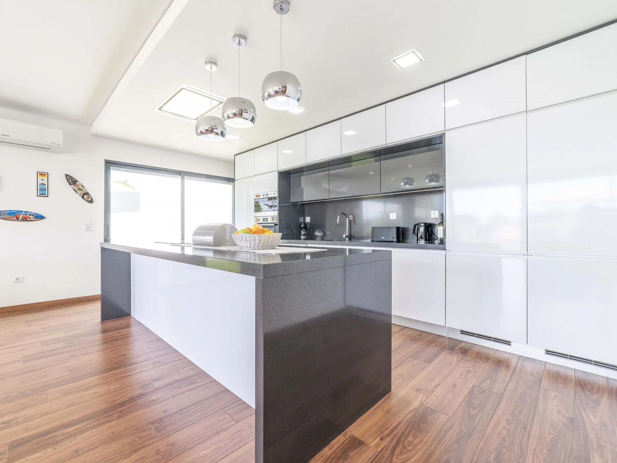 La cuisine, est équipée avec réfrigérateur, micro-ondes, four, lave-vaisselle, cafetière et bouilloire.