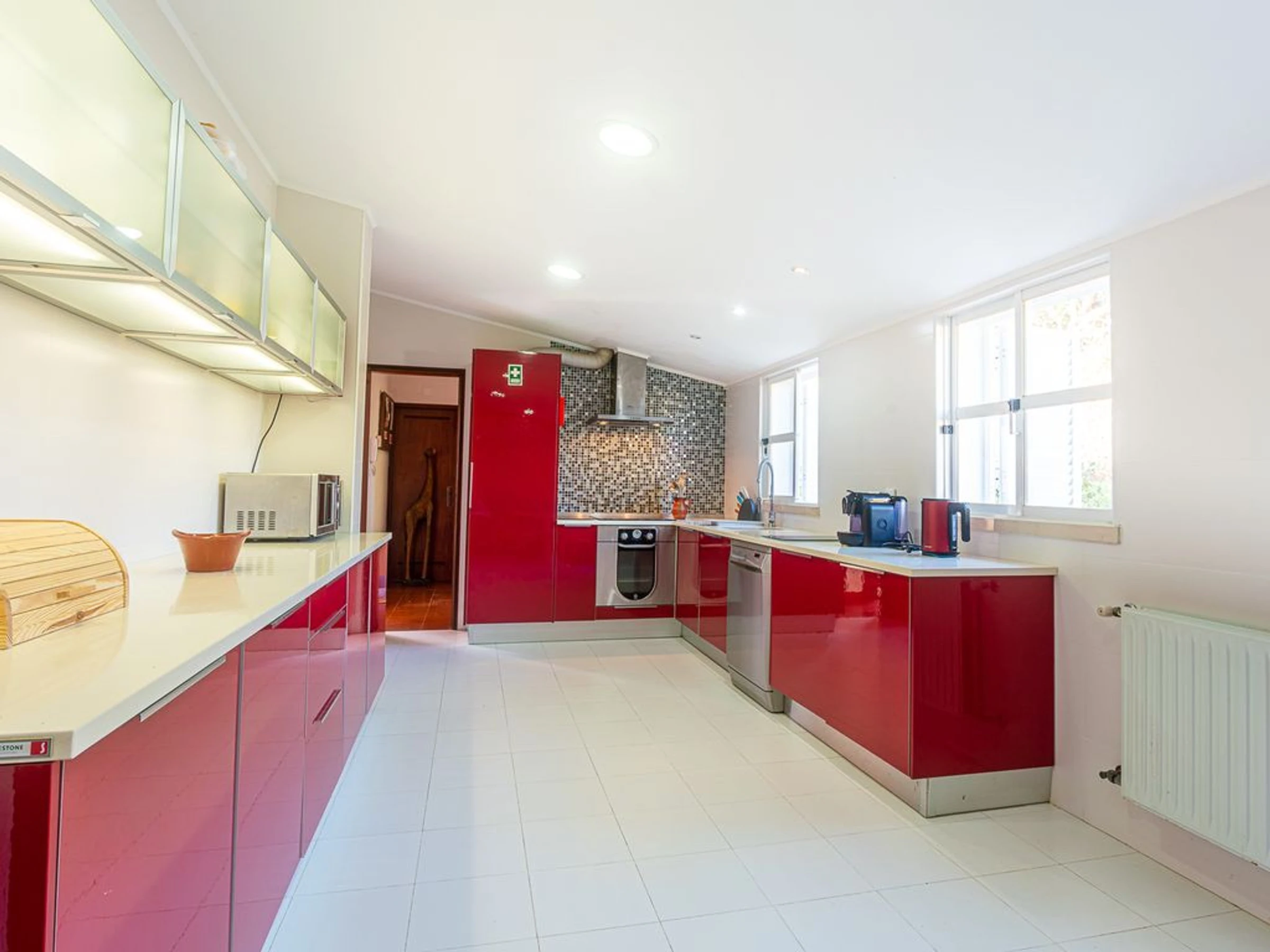 La cuisine, est équipée avec réfrigérateur, micro-ondes, four, congélateur, lave-vaisselle, cafetière, grille pain et bouilloire.