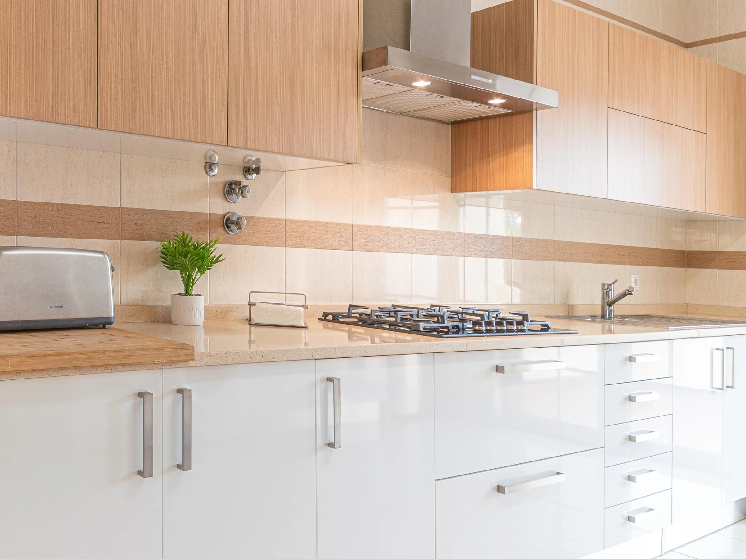 La cuisine, est équipée avec réfrigérateur, micro-ondes, four, congélateur, lave-vaisselle, cafetière, grille pain et bouilloire.