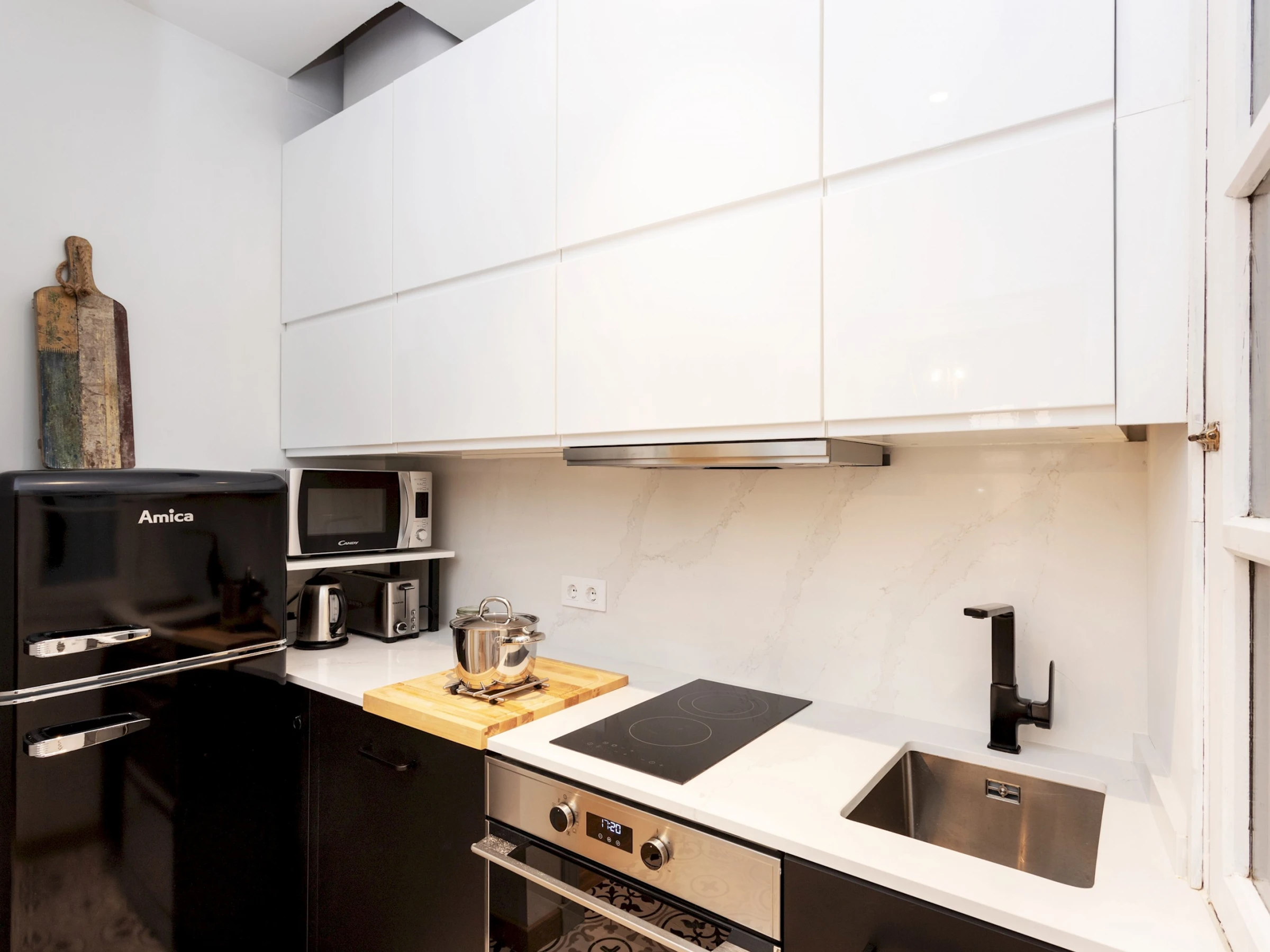 La cuisine, est équipée avec réfrigérateur, micro-ondes, four, congélateur, lave-vaisselle, vaisselle/couverts, cafetière, grille pain et presse-agrumes.