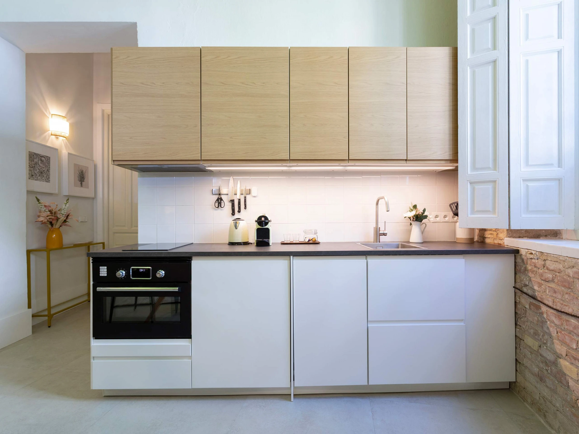 La cuisine, est équipée avec réfrigérateur, micro-ondes, four, congélateur, lave-vaisselle, vaisselle/couverts, cafetière et grille pain.