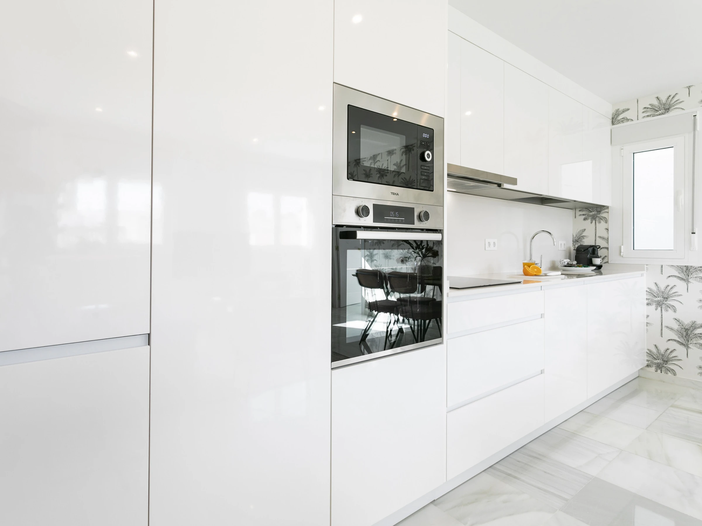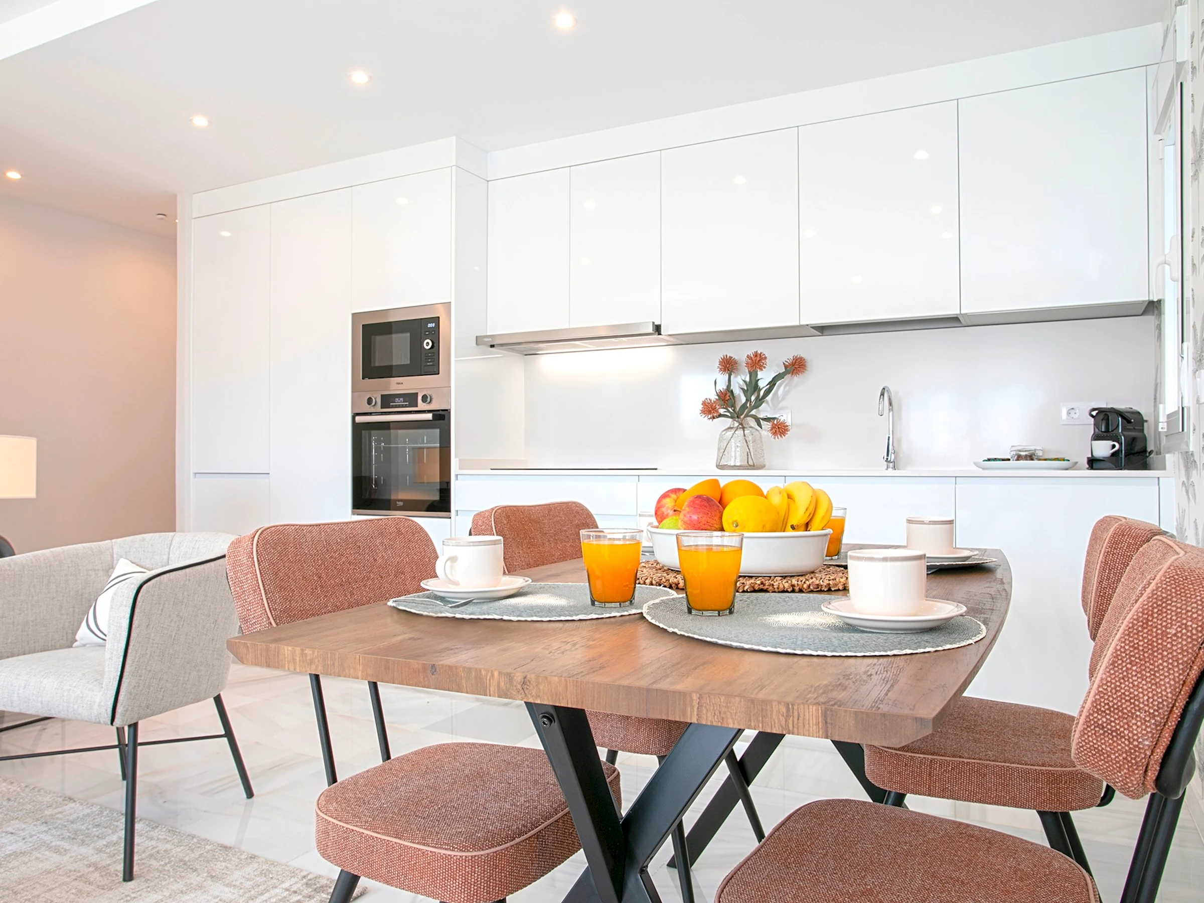 La cuisine, est équipée avec réfrigérateur, micro-ondes, four, congélateur, lave-vaisselle, vaisselle/couverts, cafetière et grille pain.
