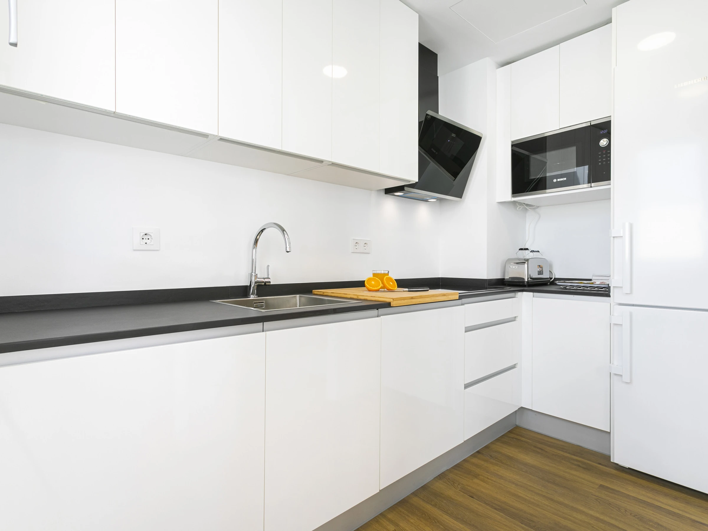 La cuisine, est équipée avec réfrigérateur, micro-ondes, congélateur, lave-vaisselle, vaisselle/couverts, cafetière et grille pain.