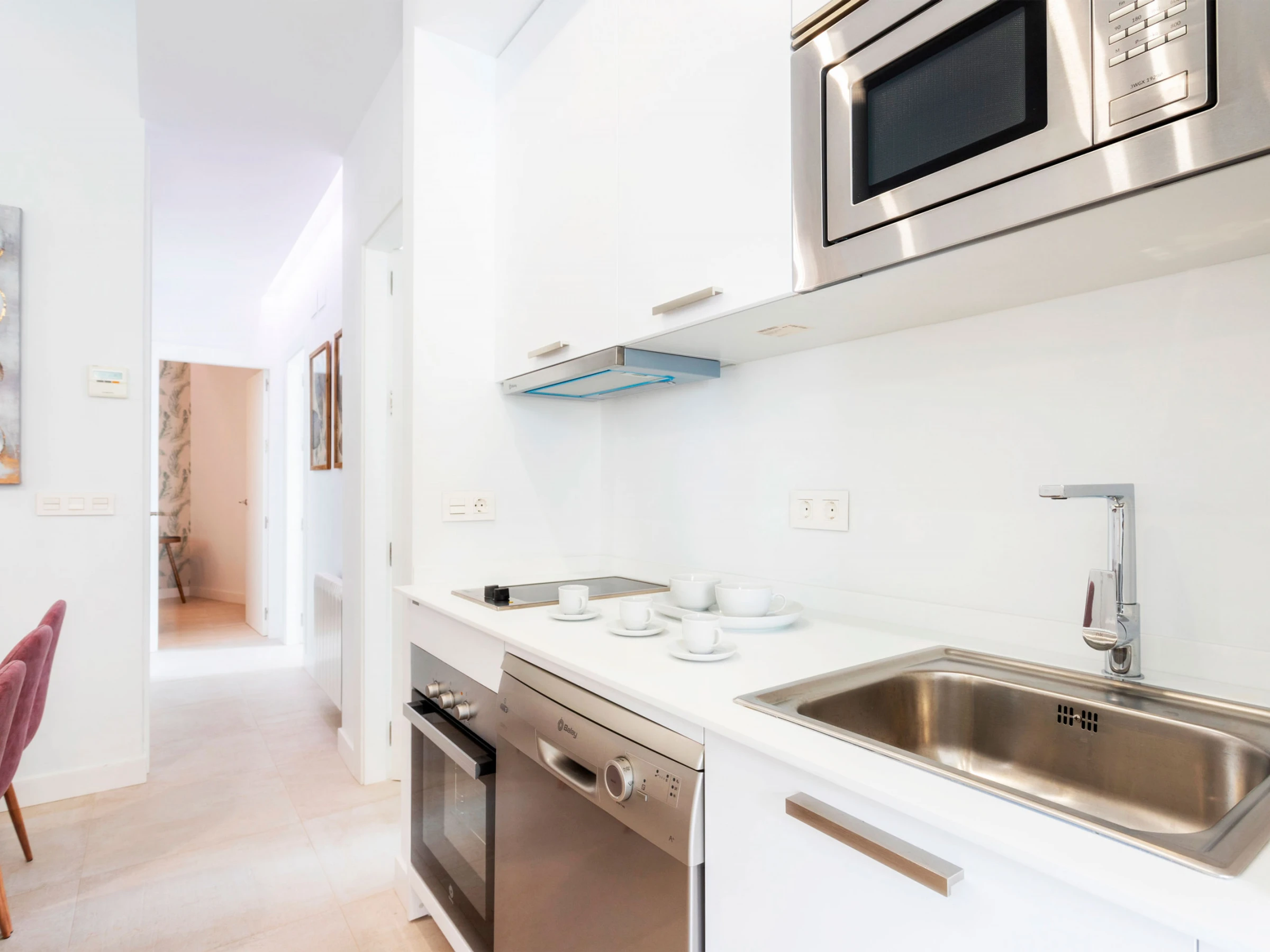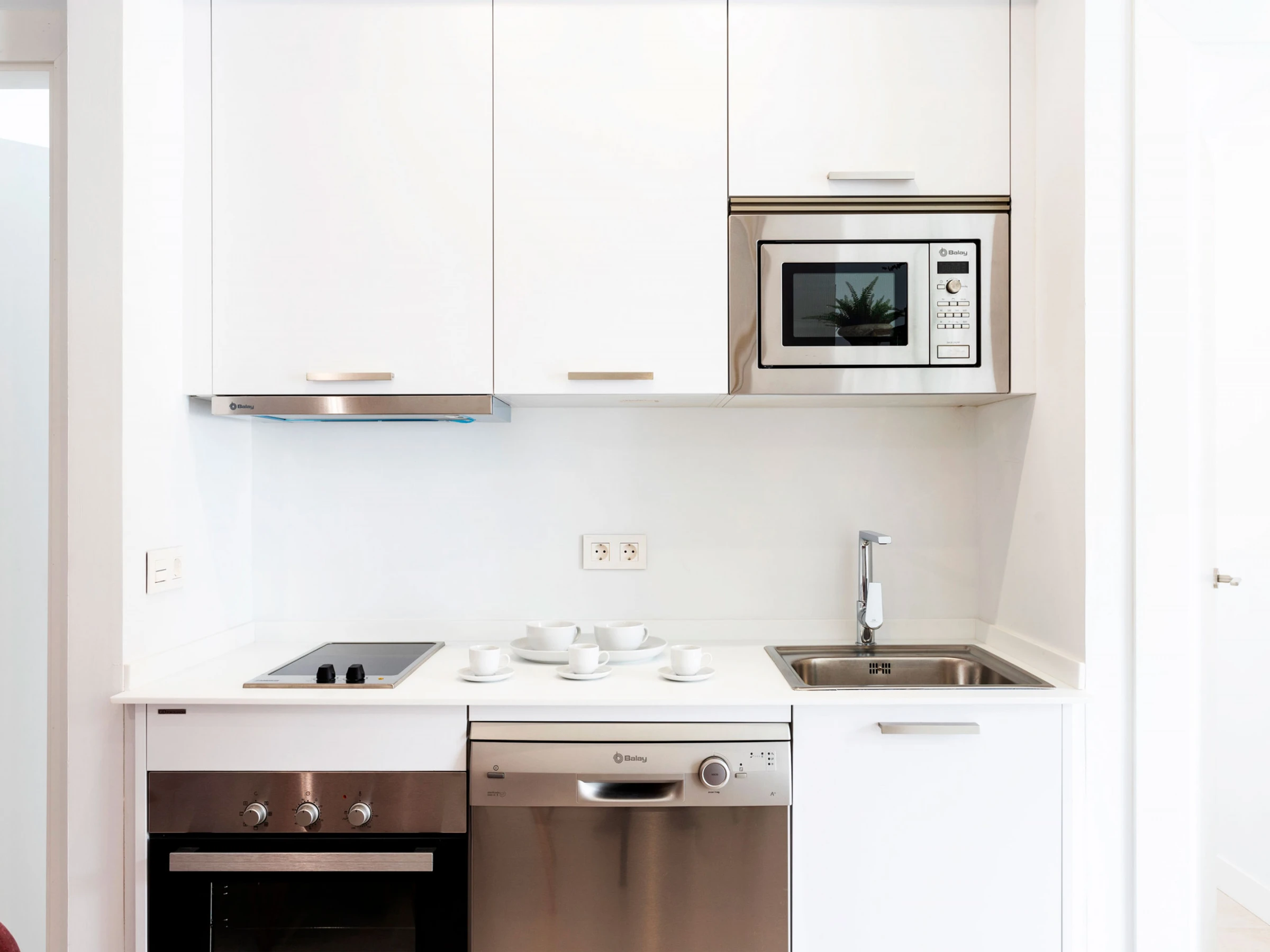 La cuisine, est équipée avec réfrigérateur, micro-ondes, four, congélateur, lave-vaisselle, vaisselle/couverts et cafetière.