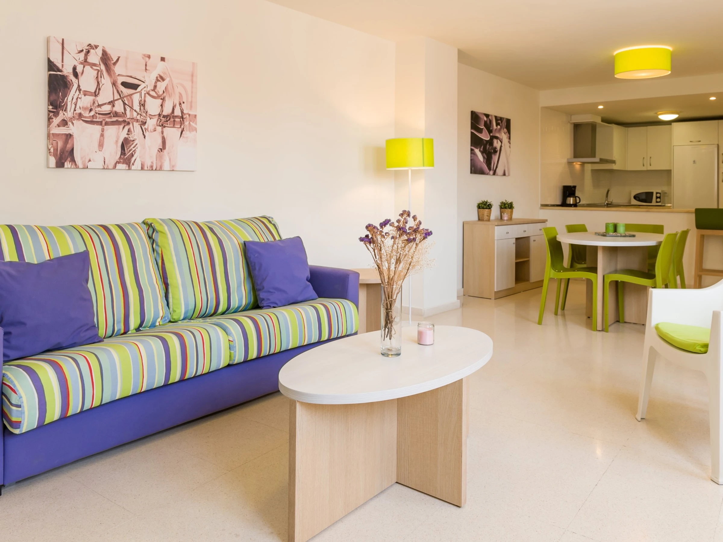 La cuisine, est équipée avec micro-ondes, congélateur, lave-vaisselle et cafetière.