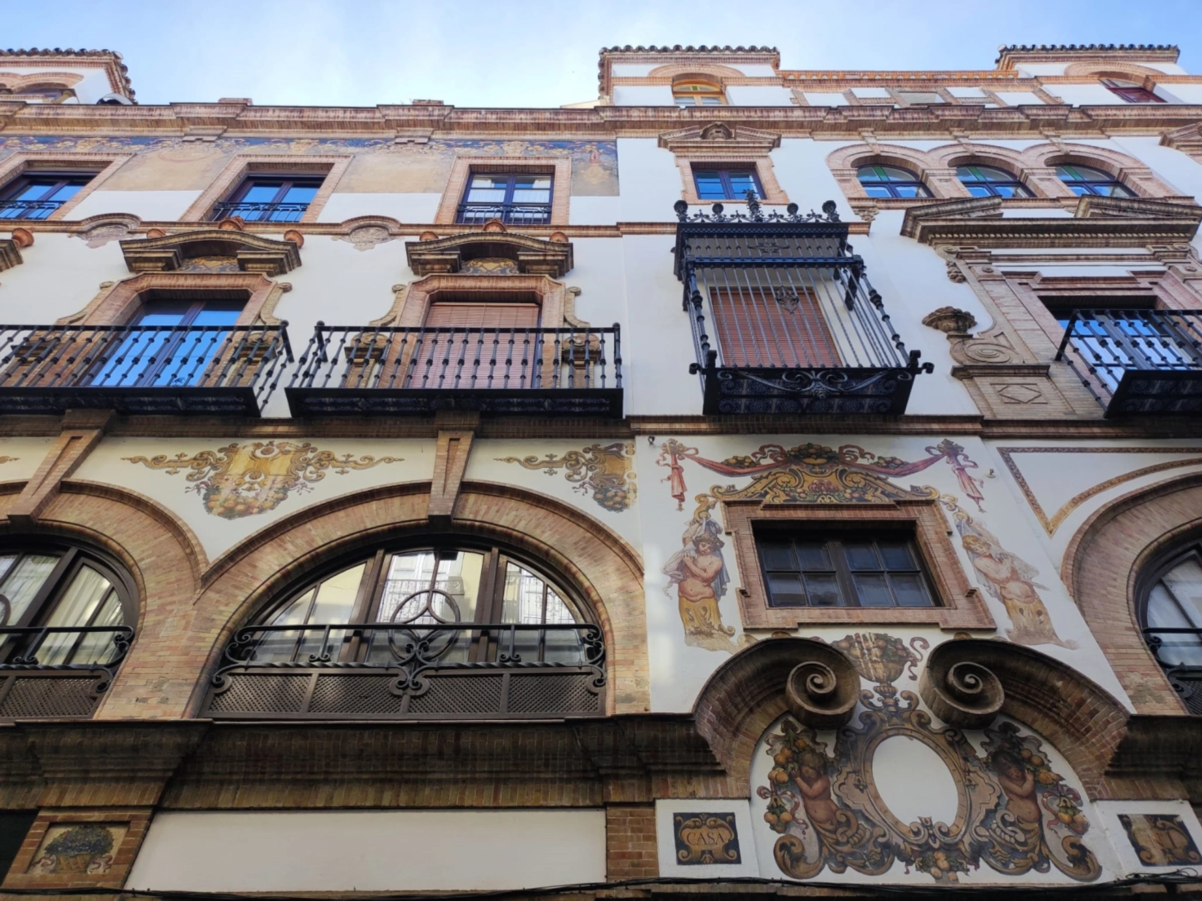 Cet hébergement bénéficie d'un emplacement stratégique, à 2 minutes à pied de la cathédrale de Séville, dans une rue piétonne qui mène à la Giralda. Vous vivrez une expérience unique ; séjourner dans cet endroit est un rêve. À Pâques, vous pourrez admirer le défilé de la Macarena depuis votre fenêtre. Un lieu exclusif et unique, construit au début du XXe siècle, dont la façade est ornée de magnifiques fresques de l'école d'Anibal González. Un lieu incroyable. Appartement d'une chambre, une salle de bain, un salon-salle à manger et un canapé-lit double. Cuisine équipée. Ascenseur : 6 marches à monter depuis l'entrée de l'immeuble. Accès par un escalier.