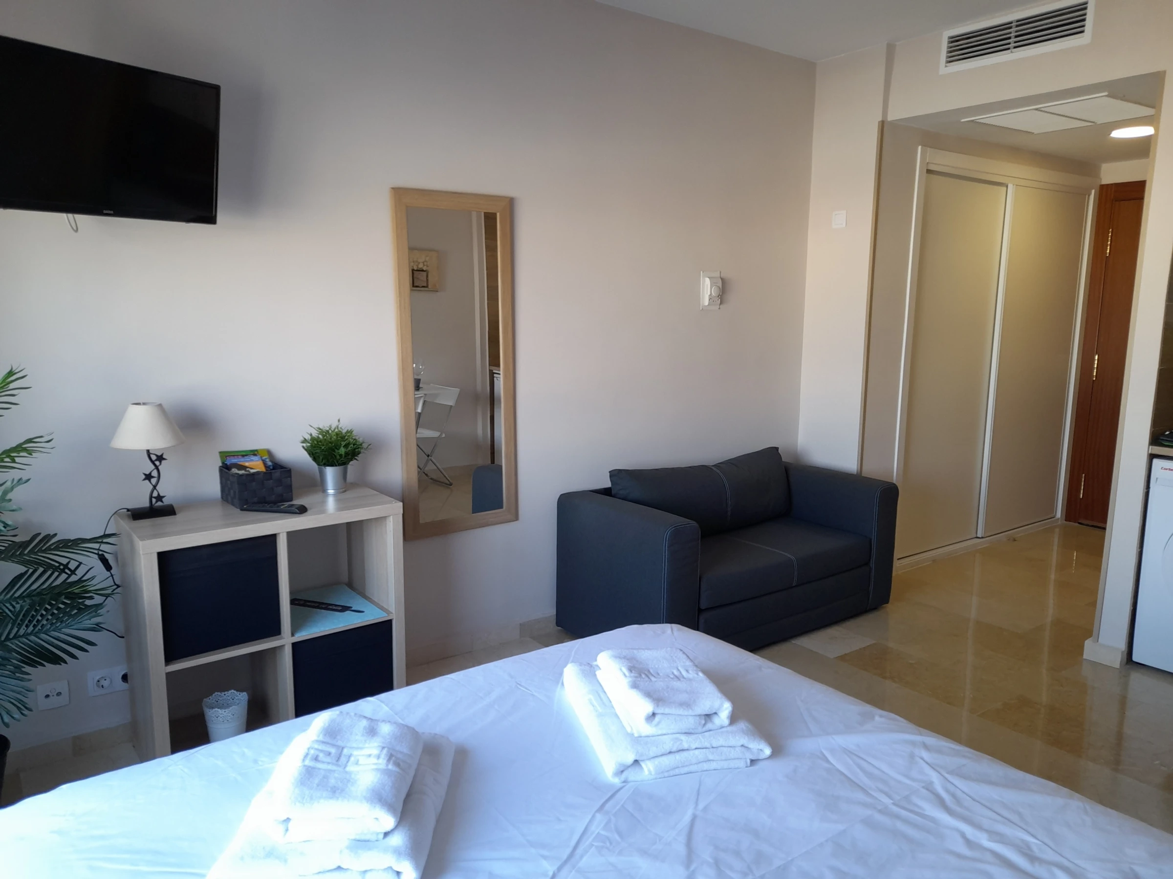 Détendez-vous dans cette maison calme et élégante. Avec une vue magnifique sur la ville, profitez de la lumière de Séville dans ce bel appartement à Triana, à 10 minutes à pied du centre historique et à proximité de toutes les commodités : restaurants, boutiques, supermarchés et transports en commun (bus, métro, taxis) qui vous mèneront partout en ville en quelques minutes, et à 5 minutes à pied de la Feria d'Avril. Réception ouverte 24h/24. L'appartement comprend une pièce avec cuisine, un lit queen-size, un canapé-lit de 110 cm, une télévision et une table pliante pour le petit-déjeuner ou pour travailler, avec des vérandas. Il dispose d'un double placard intégré spacieux et d'une salle de bains séparée. Petit et fonctionnel, il offre une vue spectaculaire sur les toits de Séville. Idéal pour découvrir Triana et le centre historique de Séville à pied, sans avoir besoin de transport. Arrivées possibles de 15h à 22h. Supplément de 20 € pour toute arrivée après 22h00 ou de 30 € entre minuit et 2h00, à régler en espèces à la remise des clés.