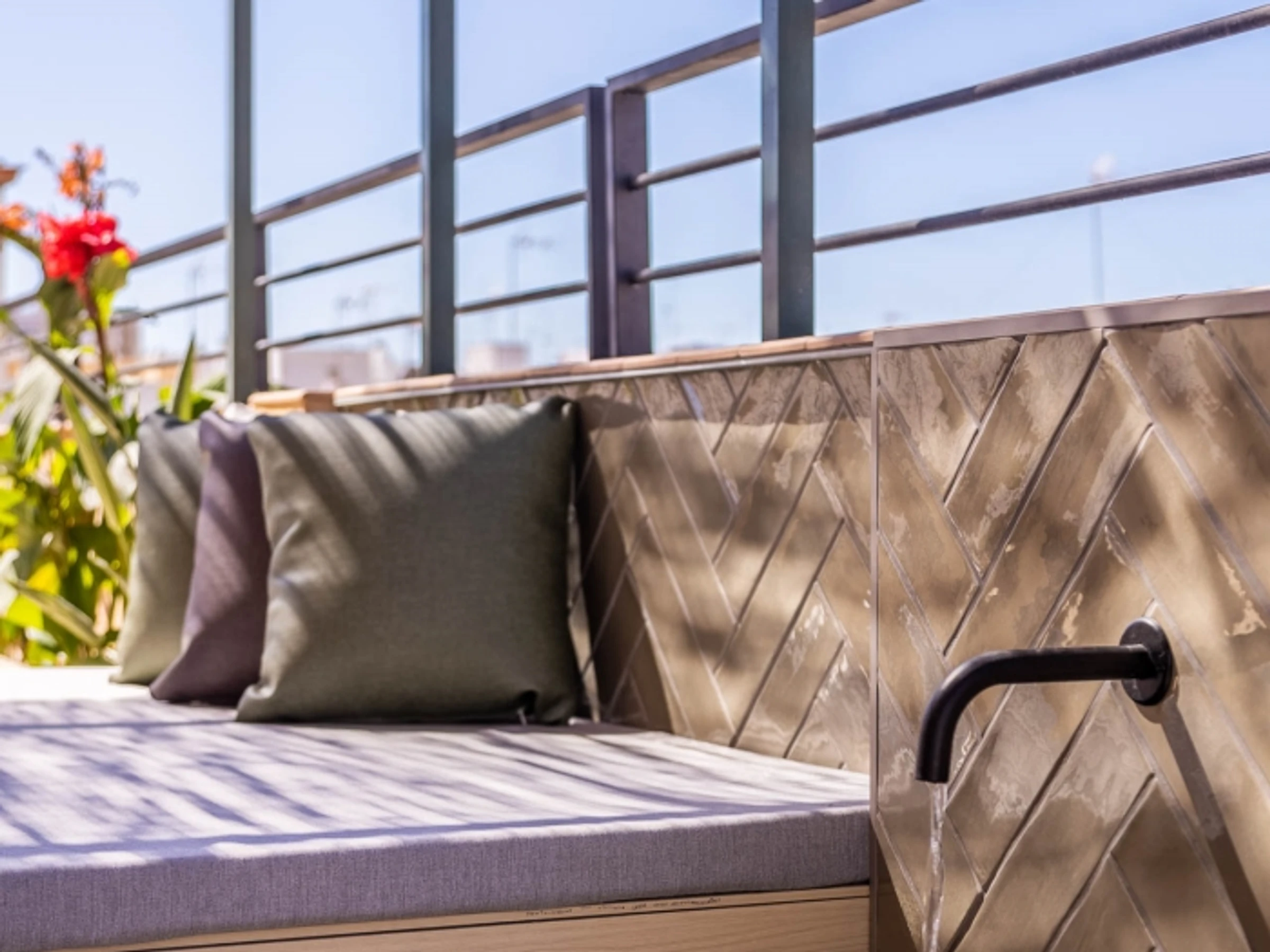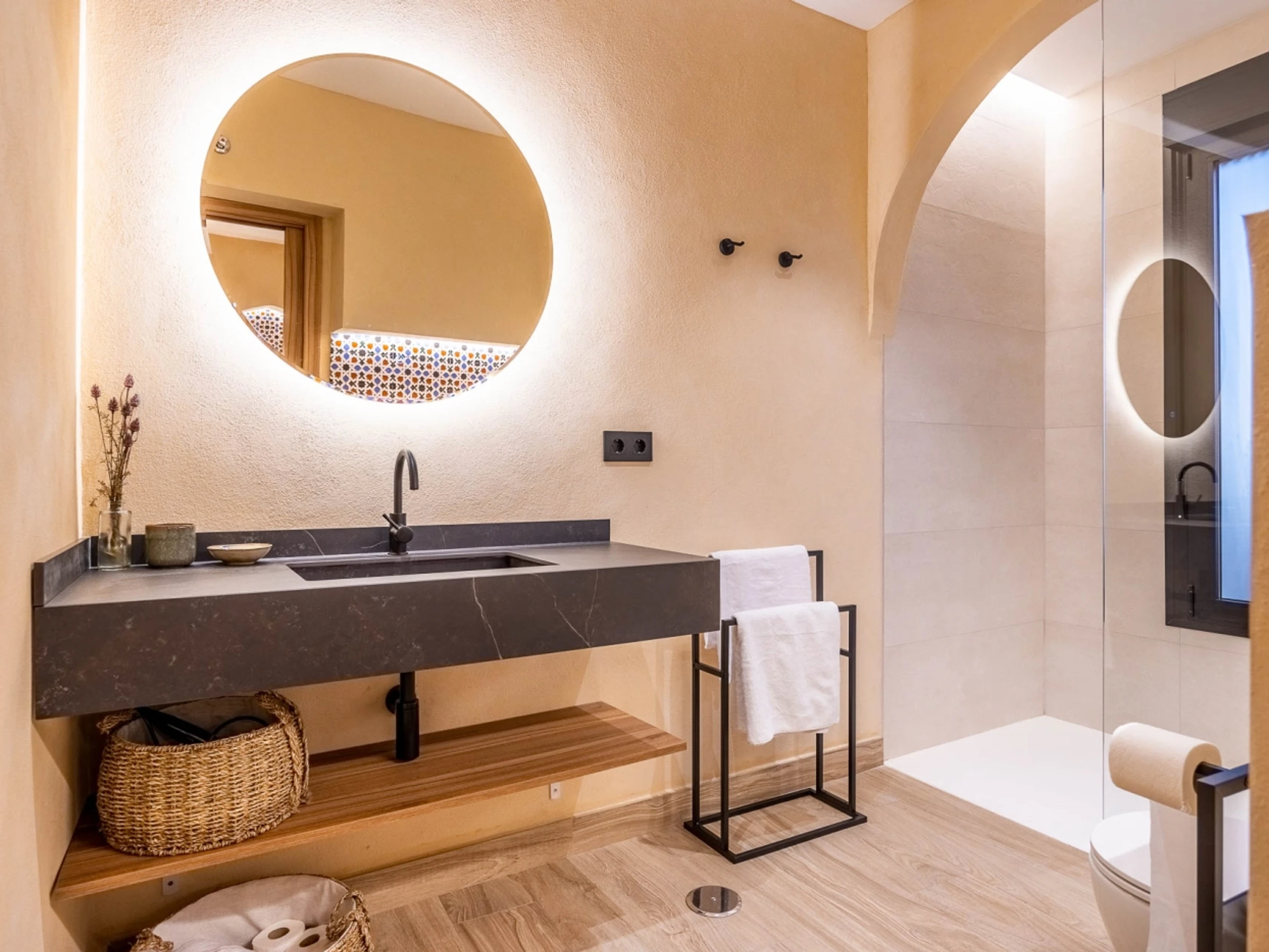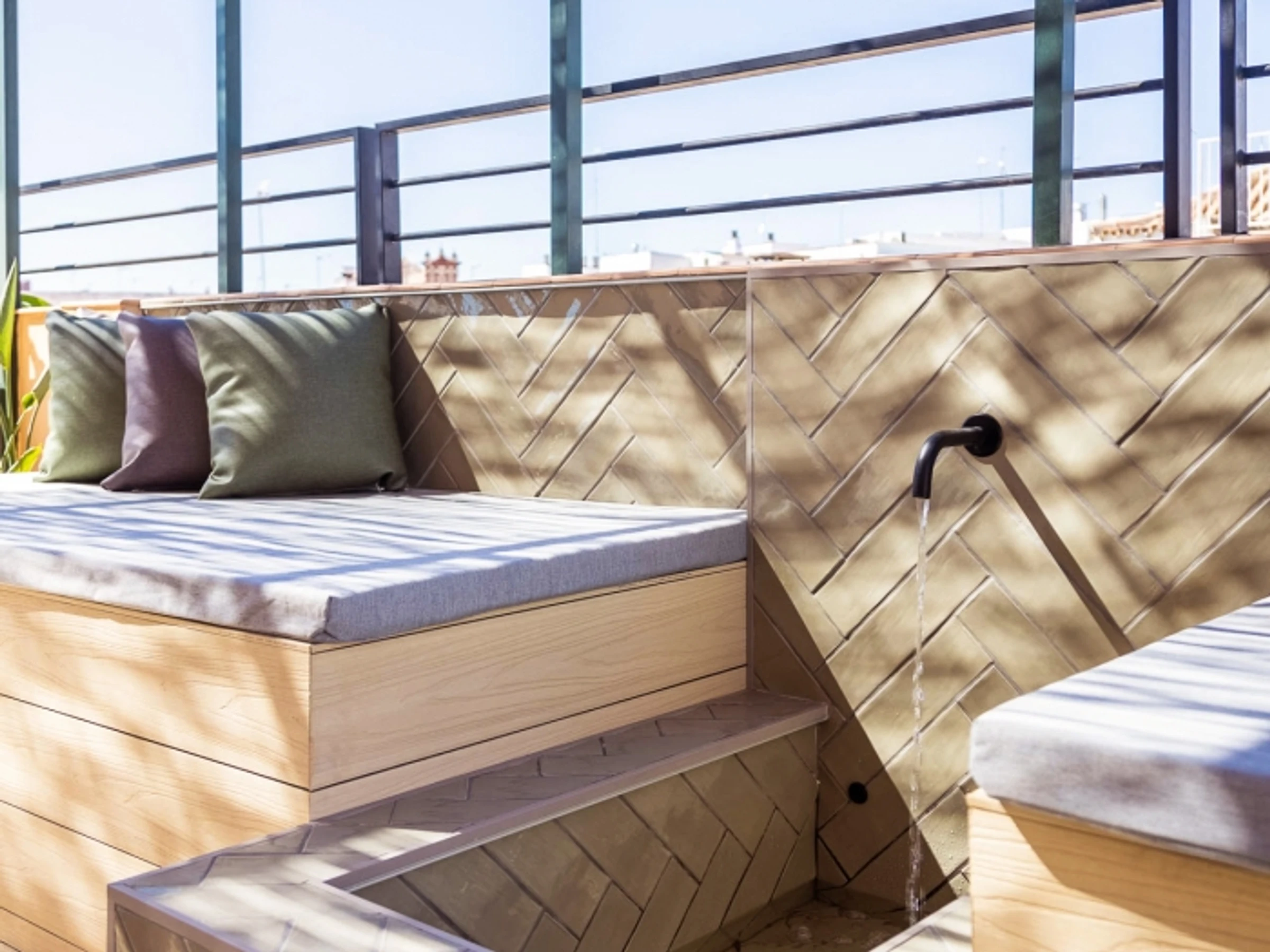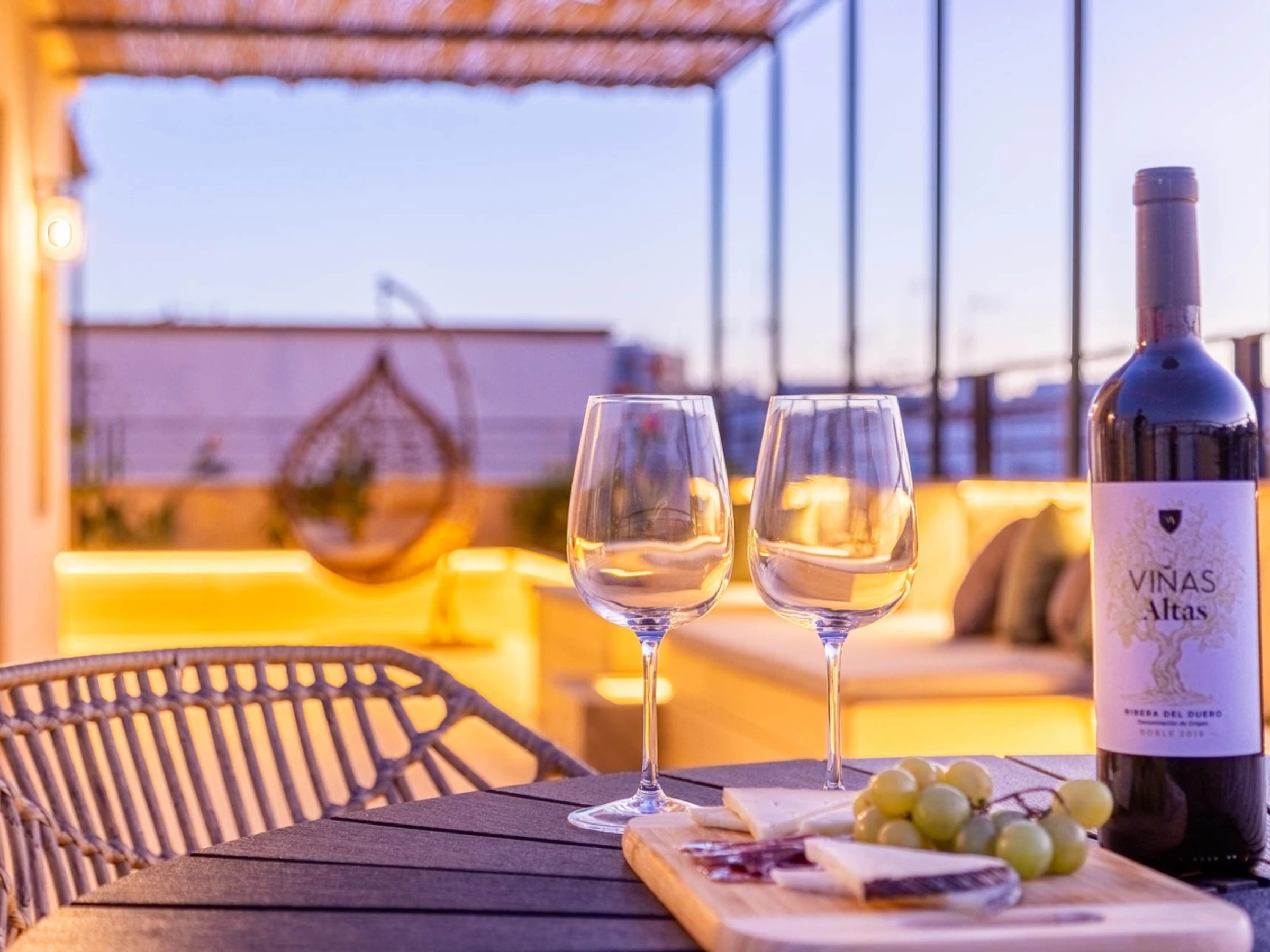 Penthouse de luxe avec terrasse panoramique de 60 m² dans l'un des plus beaux quartiers de Séville : le vieux Triana. Une expérience 100 % sévillane dans une rue calme et authentique, à 30 secondes du pont de Triana, avec vue sur la Giralda. L'appartement comprend un beau salon avec kitchenette entièrement équipée, une chambre avec un lit double de 135 cm et une magnifique tête de lit arabe en carreaux artisanaux du quartier de Triana, une immense salle de bain avec une douche de 2 mètres et, cerise sur le gâteau : une magnifique terrasse de 60 m² aux multiples espaces et ambiances. D'un côté, un coin détente avec canapés… de l'autre, un canapé « nid », une fontaine andalouse avec des coins lecture, un coin repas extérieur et une douche cascade avec vue sur la Giralda, ainsi que des hamacs pour profiter du soleil andalou. Services supplémentaires : carte d'oreillers, fer à lisser, nécessaire à couture, chauffage, presse-agrumes, grille-pain, couteaux, fer et planche à repasser. Possibilité de couchage pour un enfant de 2 à 12 ans sur un canapé-lit d'appoint. Parking couvert à 45 secondes de l'appartement pour 16 € par jour. Wi-Fi fibre optique d'excellente qualité. Netflix gratuit. - Les fêtes et événements sont interdits.
