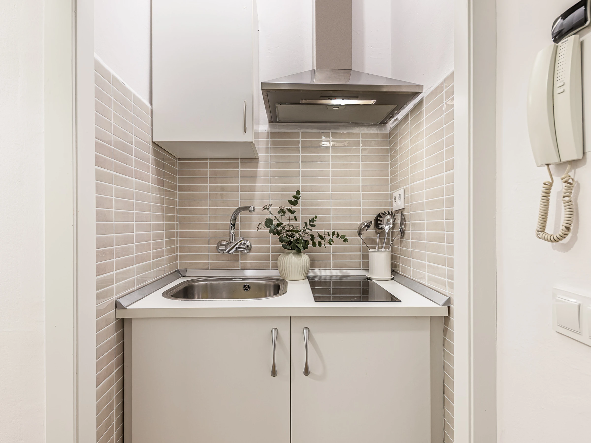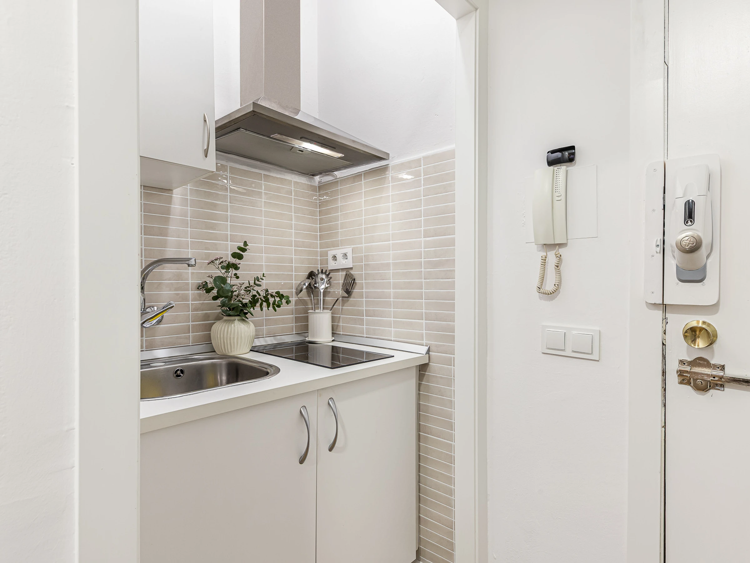 La kitchenette, pratique et équipée de l’essentiel, permet de préparer des repas simples pendant le séjour. La salle de bain, fonctionnelle et bien entretenue, offre tout le nécessaire pour un séjour confortable.