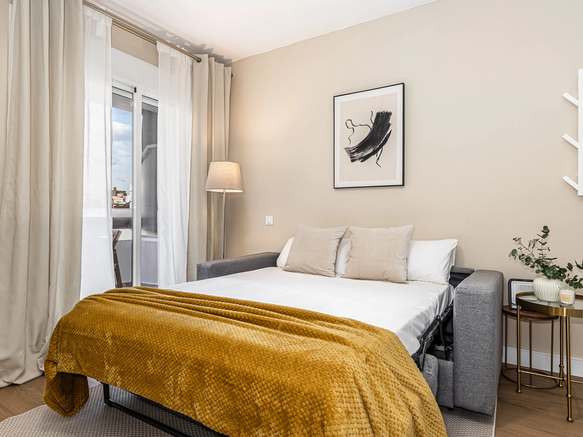 Le logement dispose d’une chambre accueillante, d’un salon avec canapé-lit idéal pour des invités supplémentaires, et d’une décoration soignée qui crée une atmosphère chaleureuse et détendue. La terrasse est l’un de ses principaux atouts, parfaite pour profiter du climat sévillan, prendre un café le matin ou se détendre en fin de journée.
