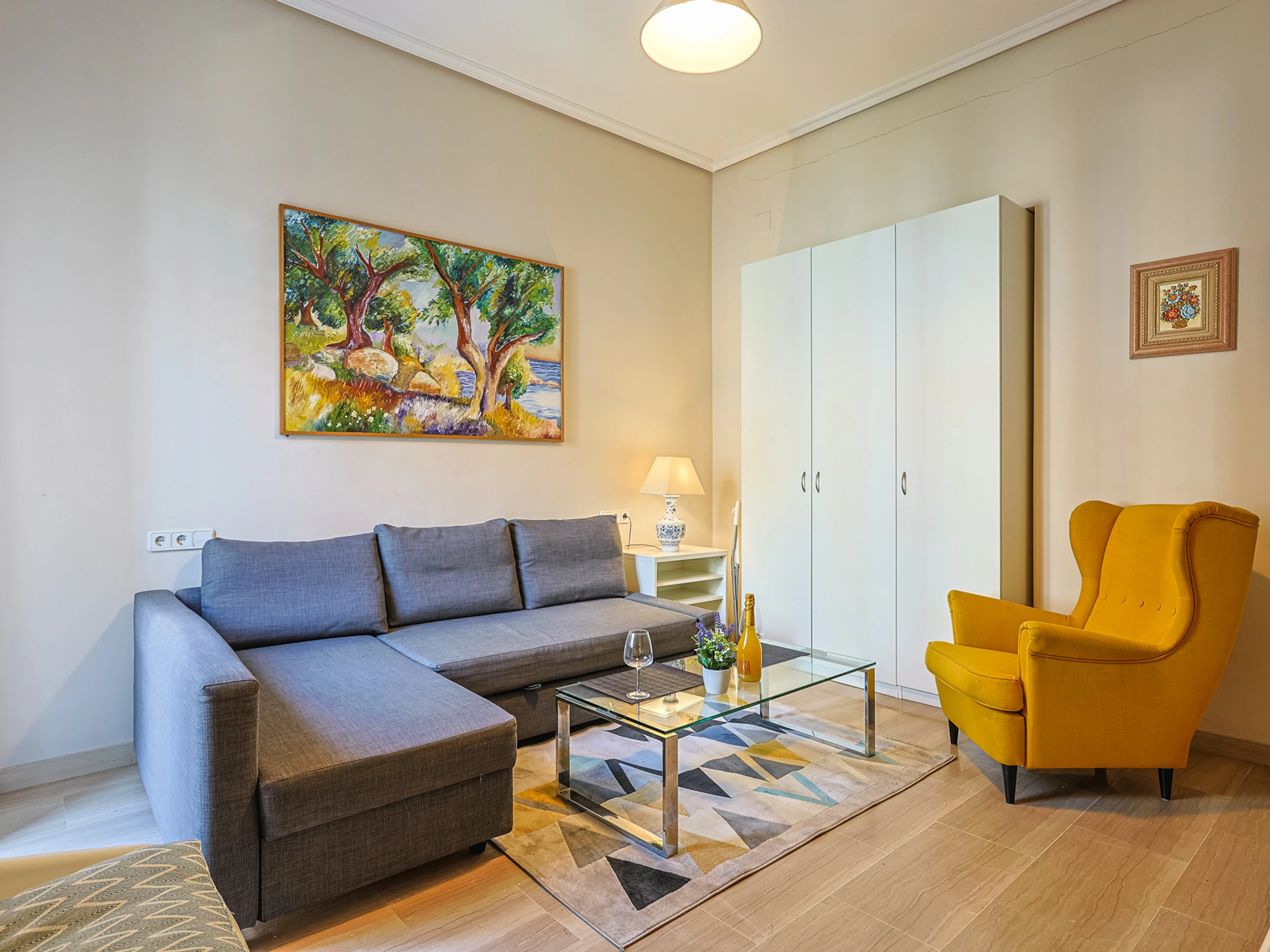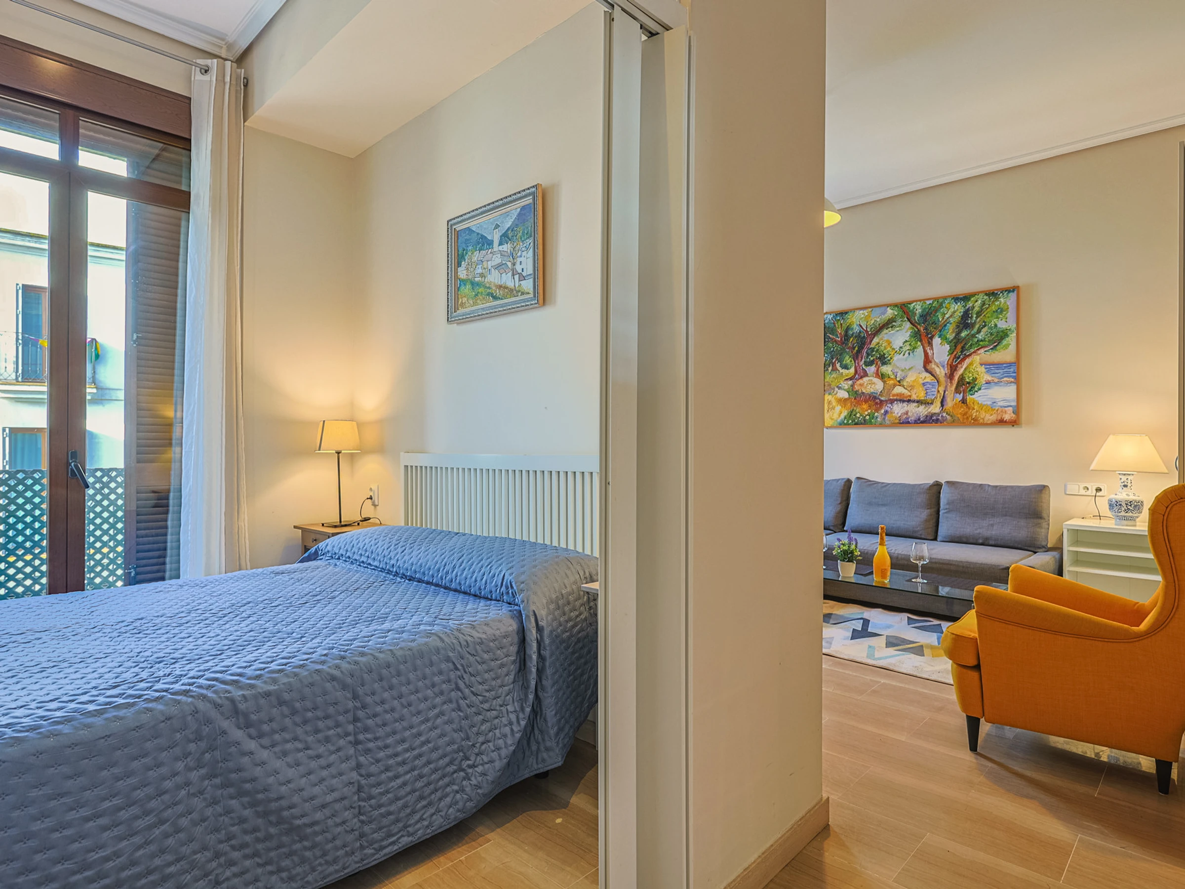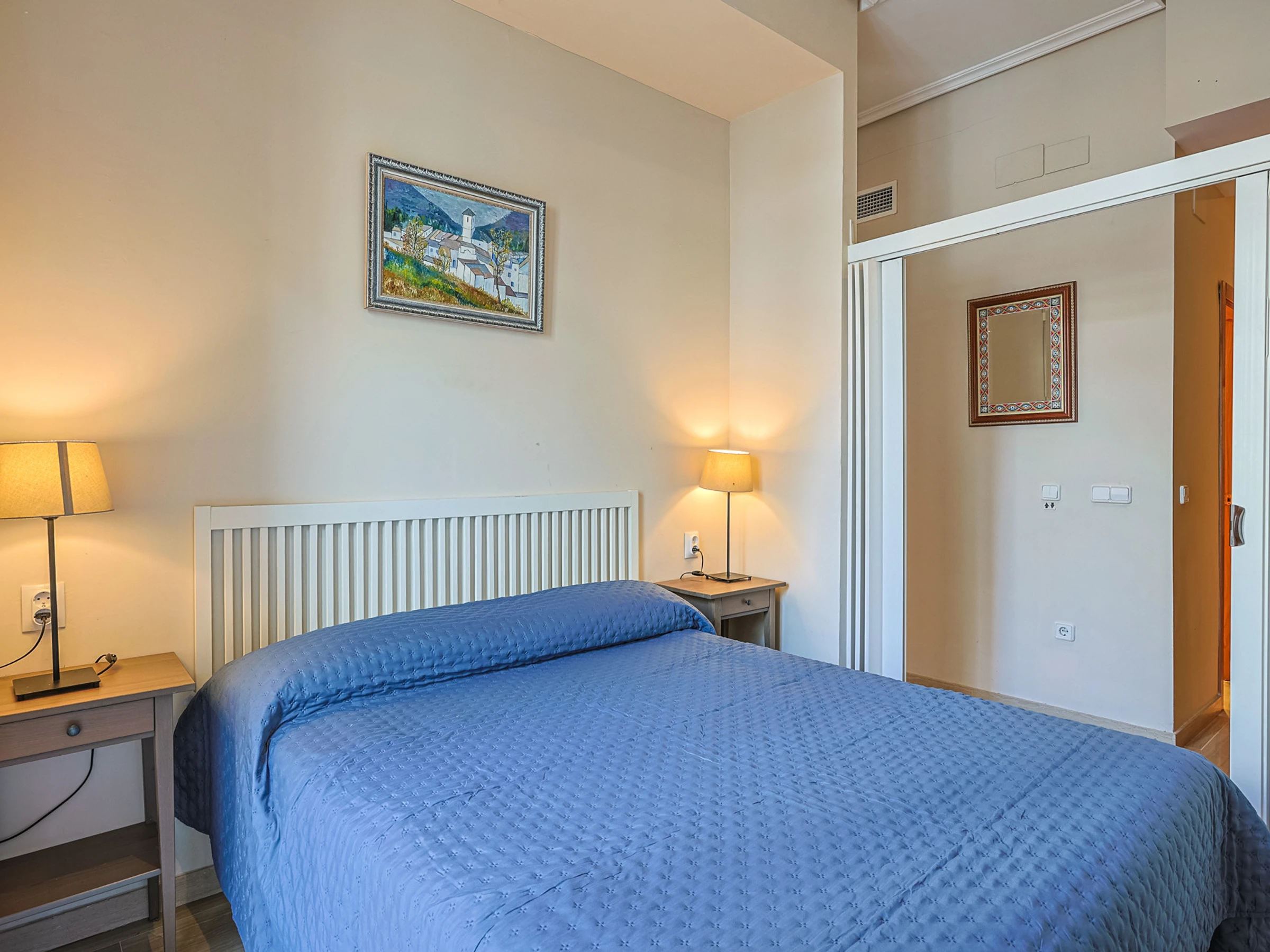 L'appartement dispose d'une chambre avec un lit double, équipé de la climatisation chaud/froid et d'un ventilateur de plafond pour garantir votre confort à toute époque de l'année. Dans le salon, vous trouverez un canapé-lit confortable, idéal pour compléter la capacité si vous voyagez en famille ou avec des amis.