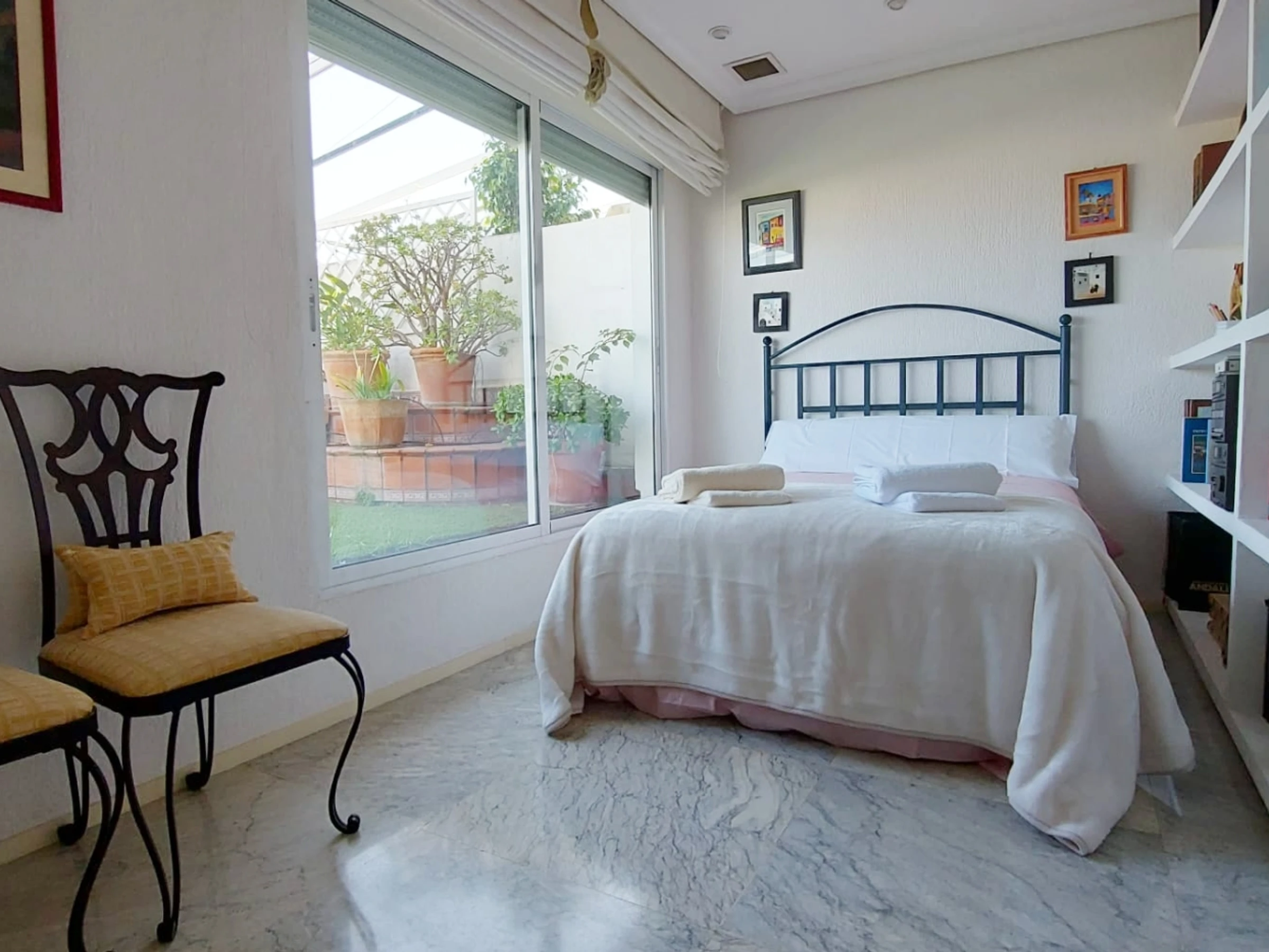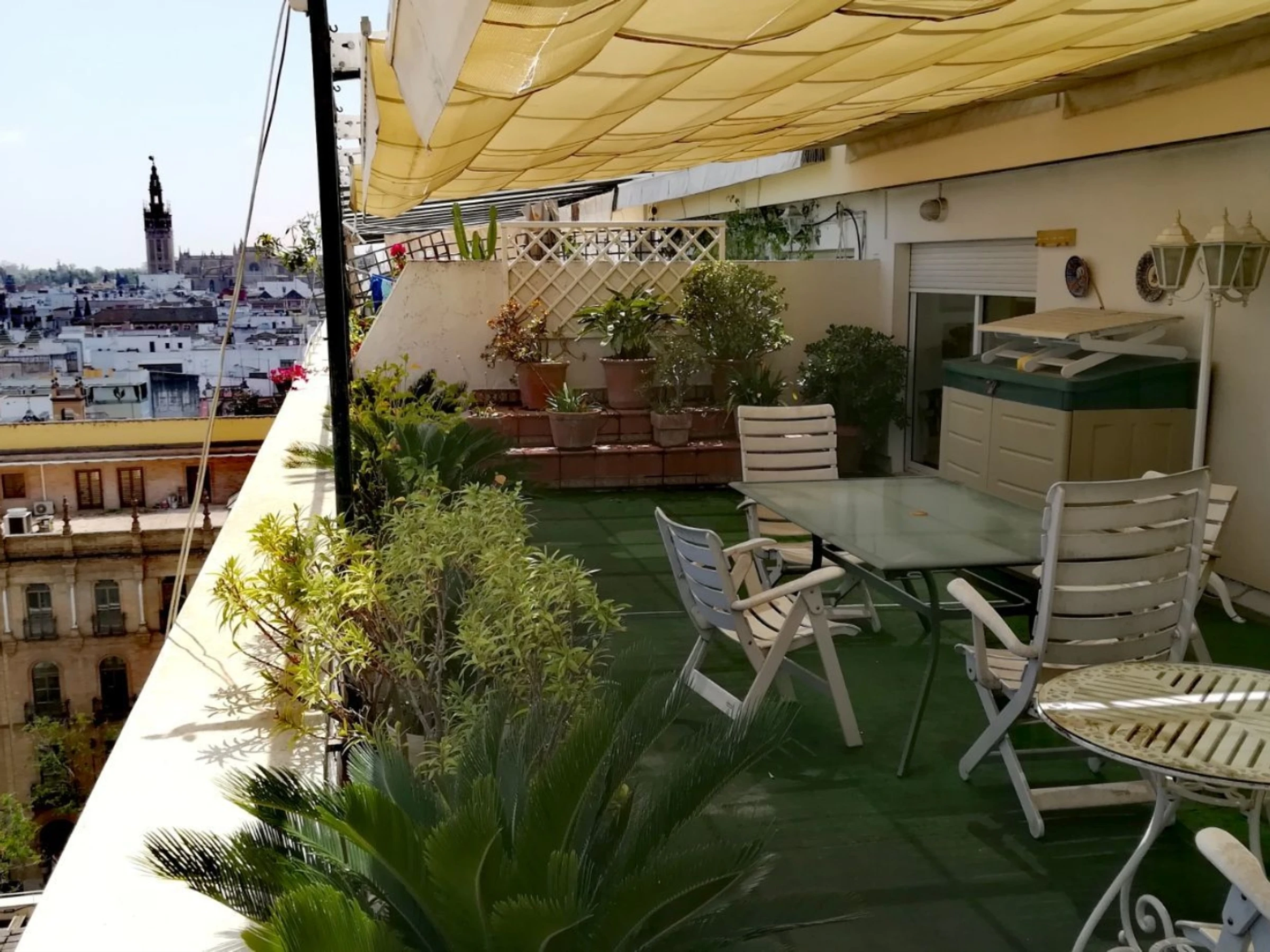 Penthouse en plein cœur de Séville, offrant une vue spectaculaire sur le centre historique de Séville, avec une magnifique terrasse équipée de stores, de chaises et d'une table pour profiter du climat exceptionnel et du soleil sévillan. Situé à proximité de La Campana, le quartier le plus emblématique de la finance, du commerce et de la vie de la ville, passage obligé des confréries à Pâques et à la circulation intense le reste de l'année, il offre des vues imprenables sur la Giralda, la Torre Pelli, Las Setas, etc. Magnifique penthouse en plein cœur de Séville, parfaitement équipé et décoré avec soin. Il comprend un salon, deux chambres (la deuxième chambre est également un salon avec table à manger, le lit de cette chambre étant petit, mesurant 80x1,80), une cuisine et une salle de bains. La grande terrasse vous séduira sans aucun doute, tant pour sa vue imprenable sur Séville que pour son confort grâce au mobilier de jardin soigné. Nous avons l'habitude de faire en sorte que nos hôtes se sentent comme chez eux.