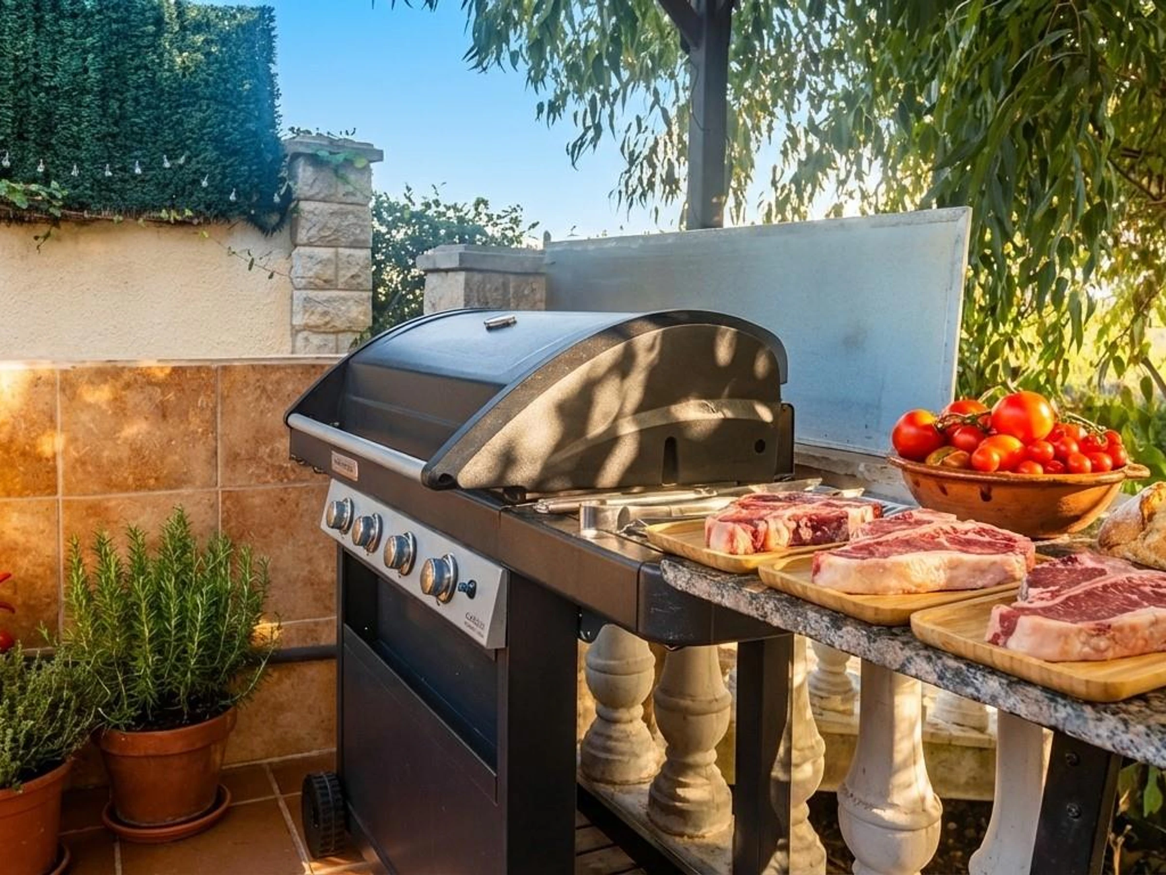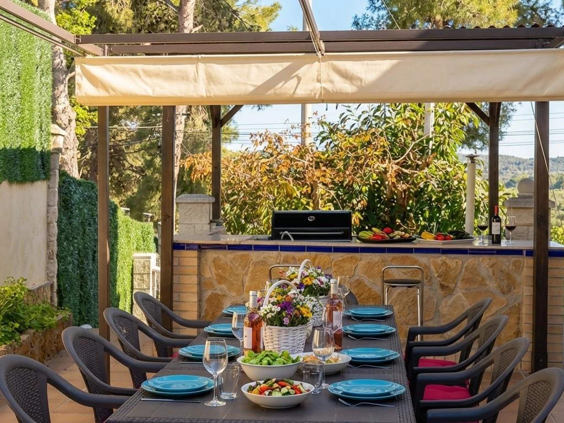 Espace détente extérieur sous pergola pour des dîners en plein air et des