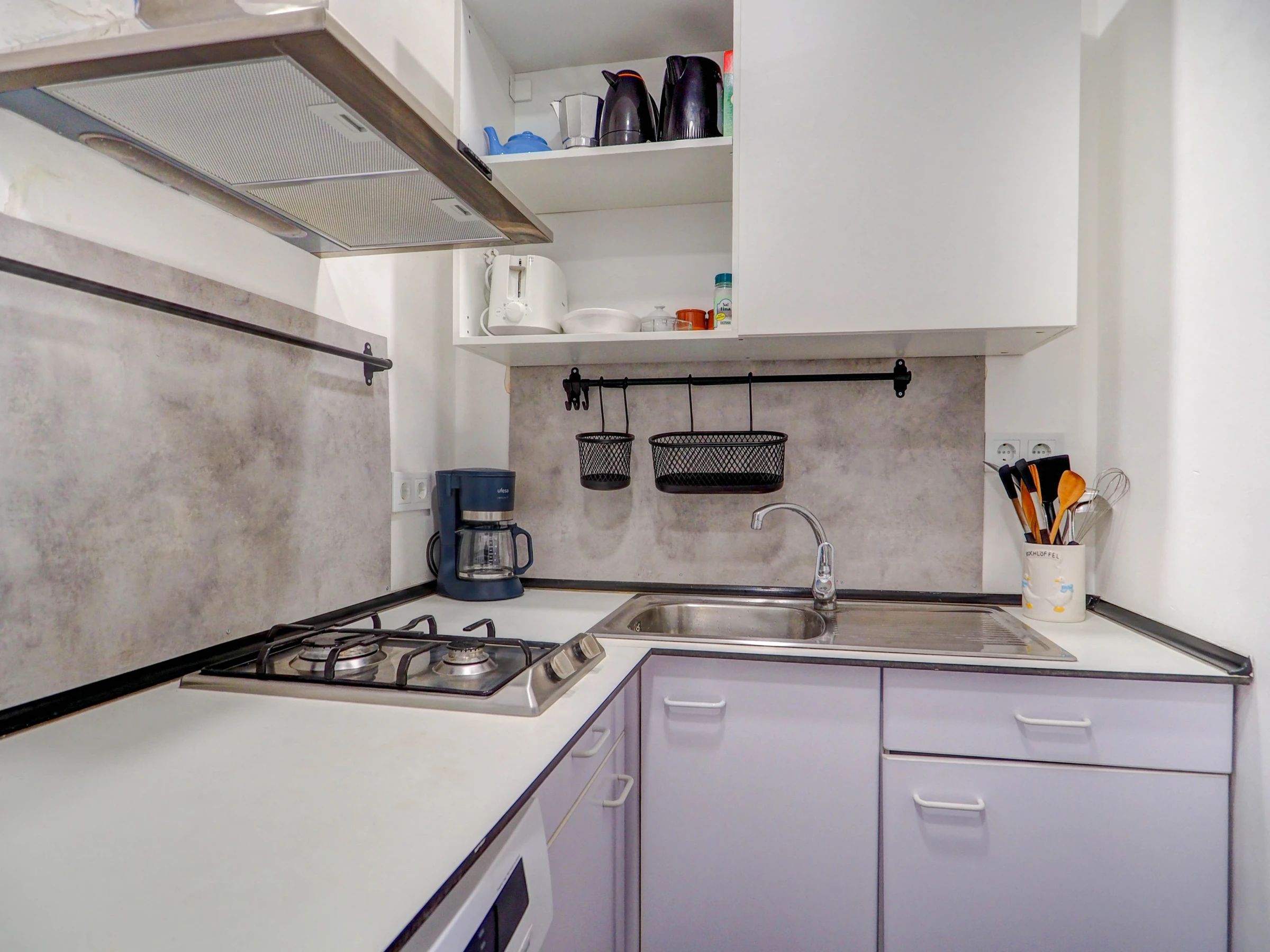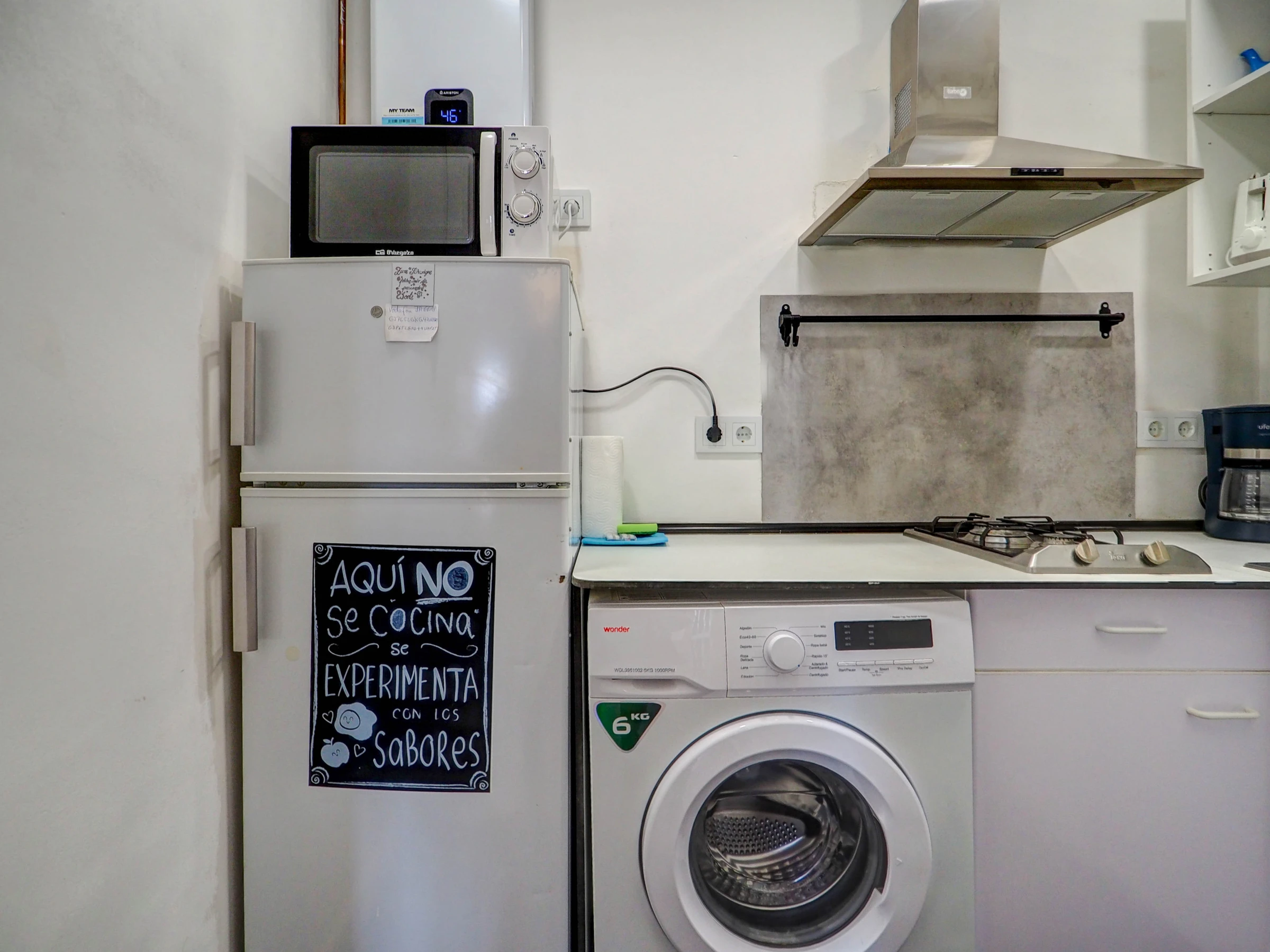 La cuisine, est équipée avec réfrigérateur, micro-ondes, four, congélateur, vaisselle/couverts, ustensiles/cuisine, cafetière, grille pain et bouilloire.