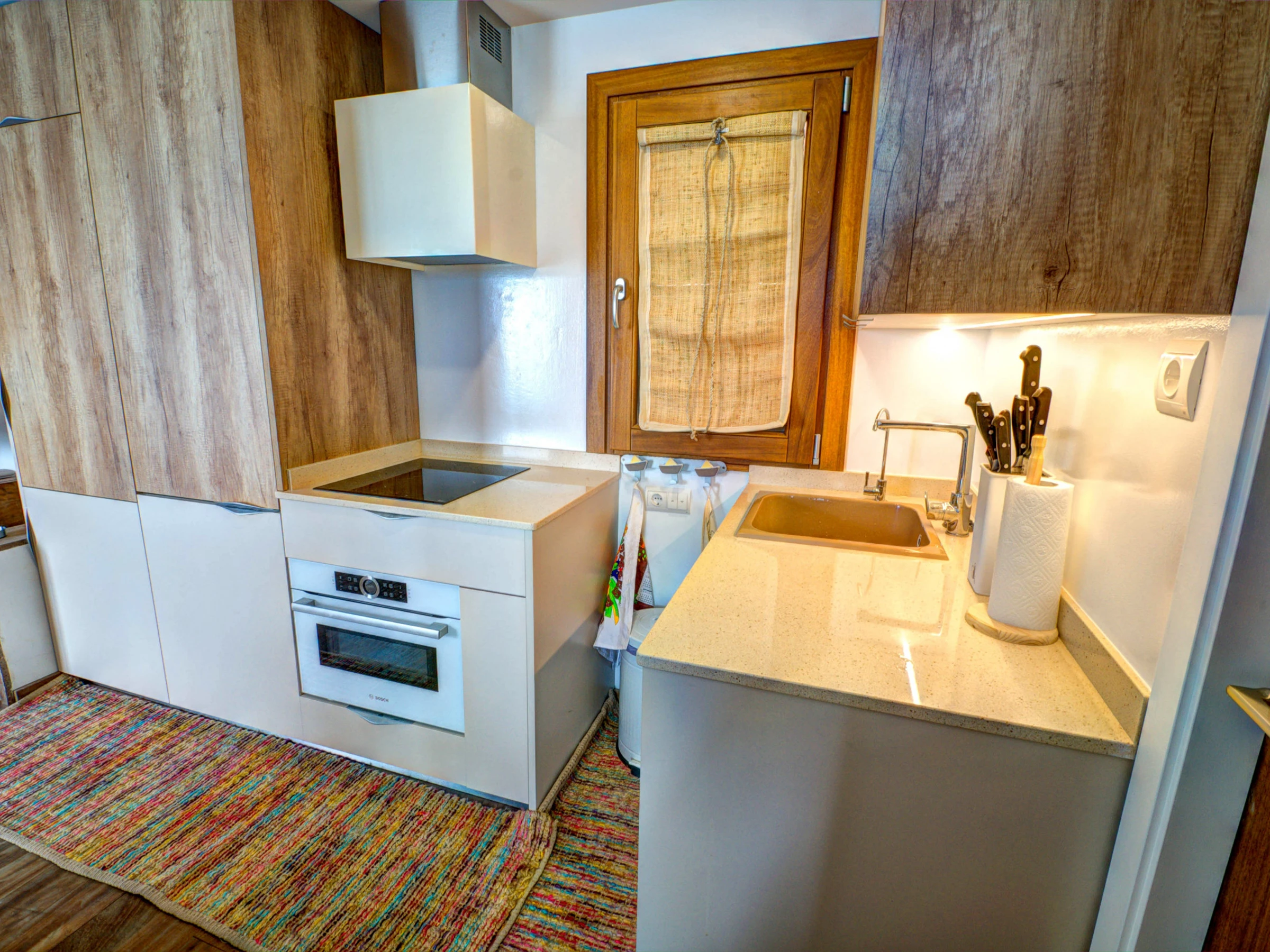 La cuisine, est équipée avec réfrigérateur, micro-ondes, four, congélateur, lave-vaisselle, vaisselle/couverts, ustensiles/cuisine, cafetière, grille pain et bouilloire.
