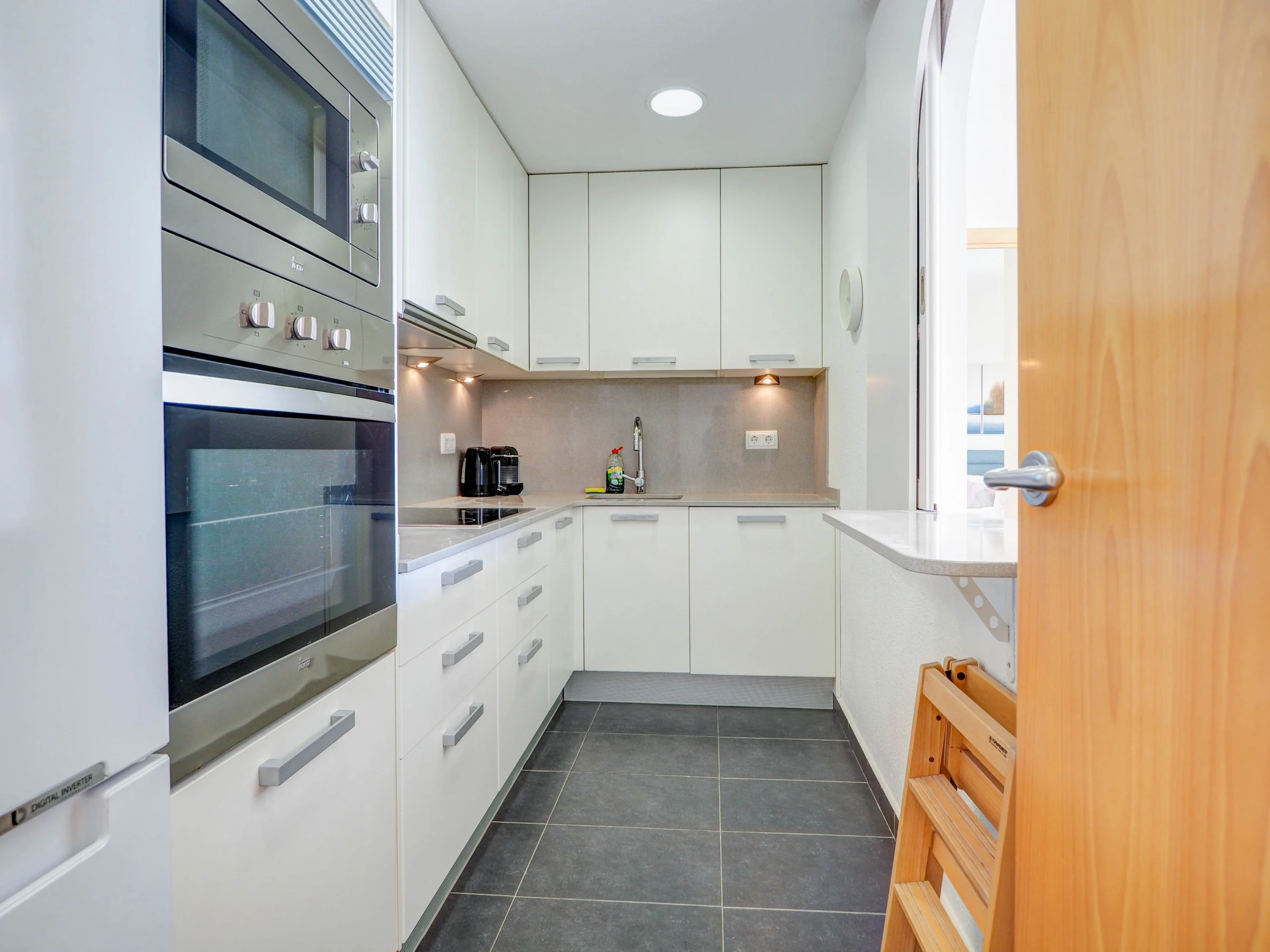 La cuisine, est équipée avec réfrigérateur, micro-ondes, four, congélateur, vaisselle/couverts, ustensiles/cuisine, cafetière, grille pain et bouilloire.