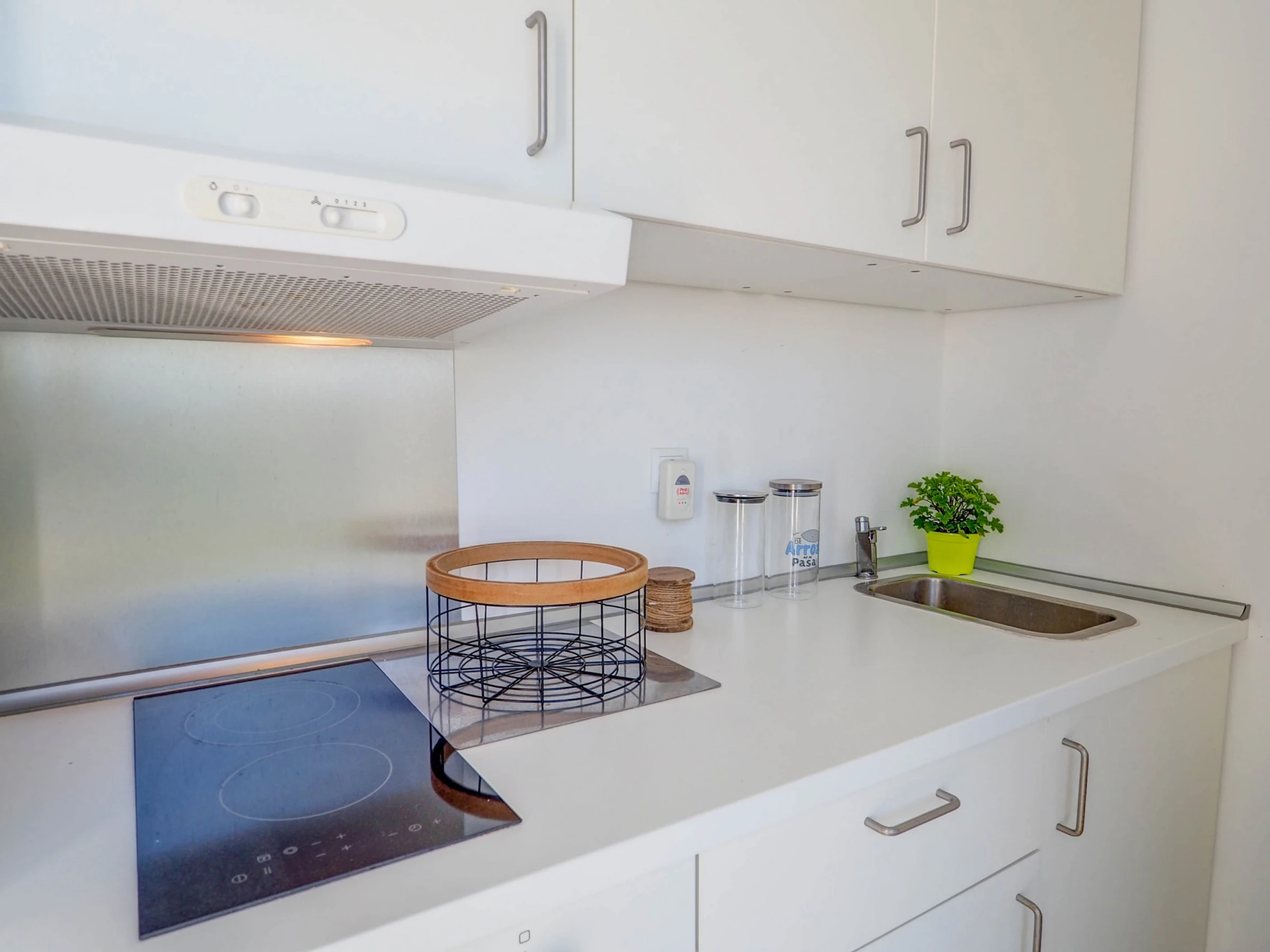 La cuisine, est équipée avec réfrigérateur, micro-ondes, four, congélateur, lave-vaisselle, vaisselle/couverts, ustensiles/cuisine, cafetière, grille pain et bouilloire.
