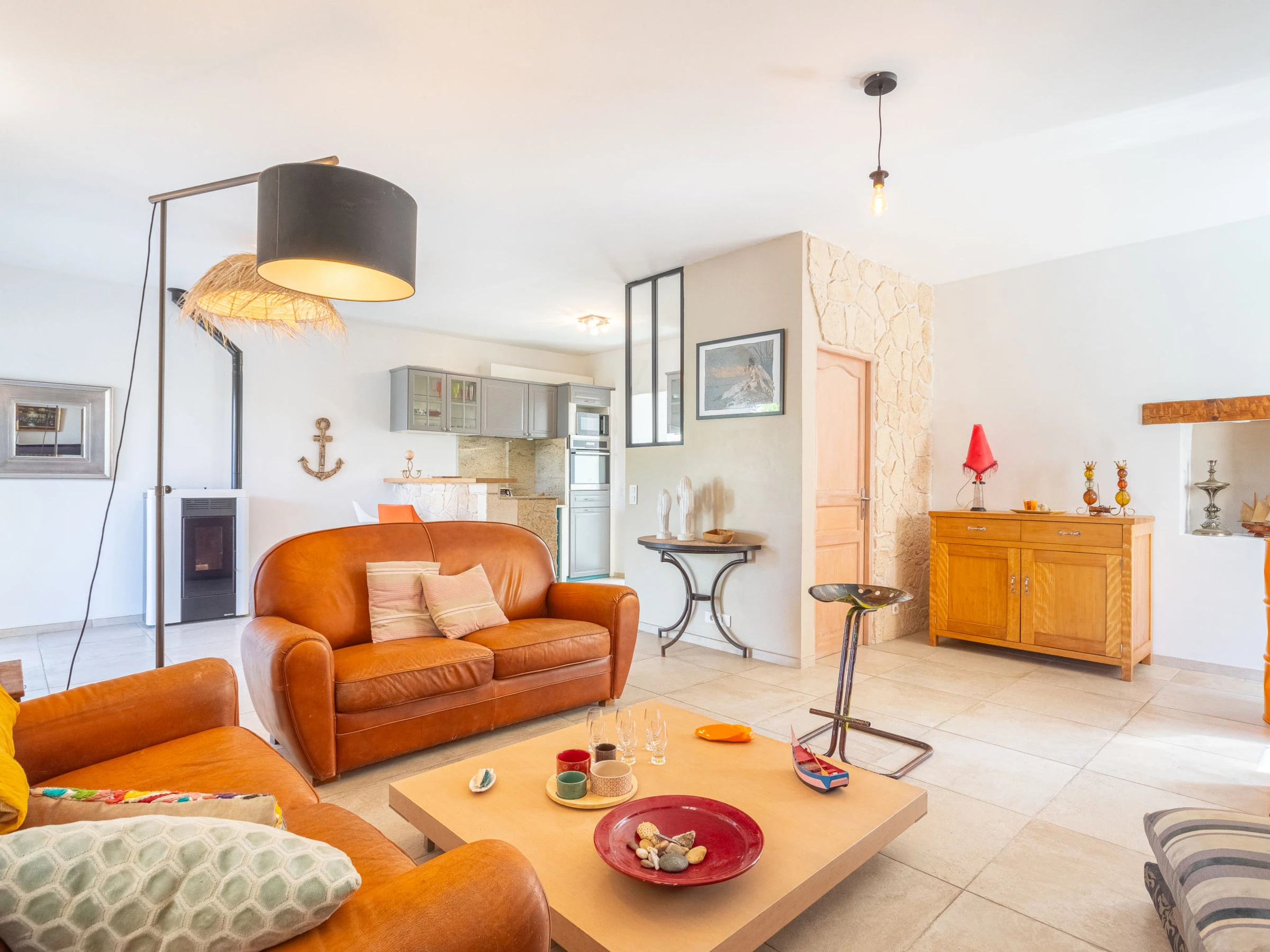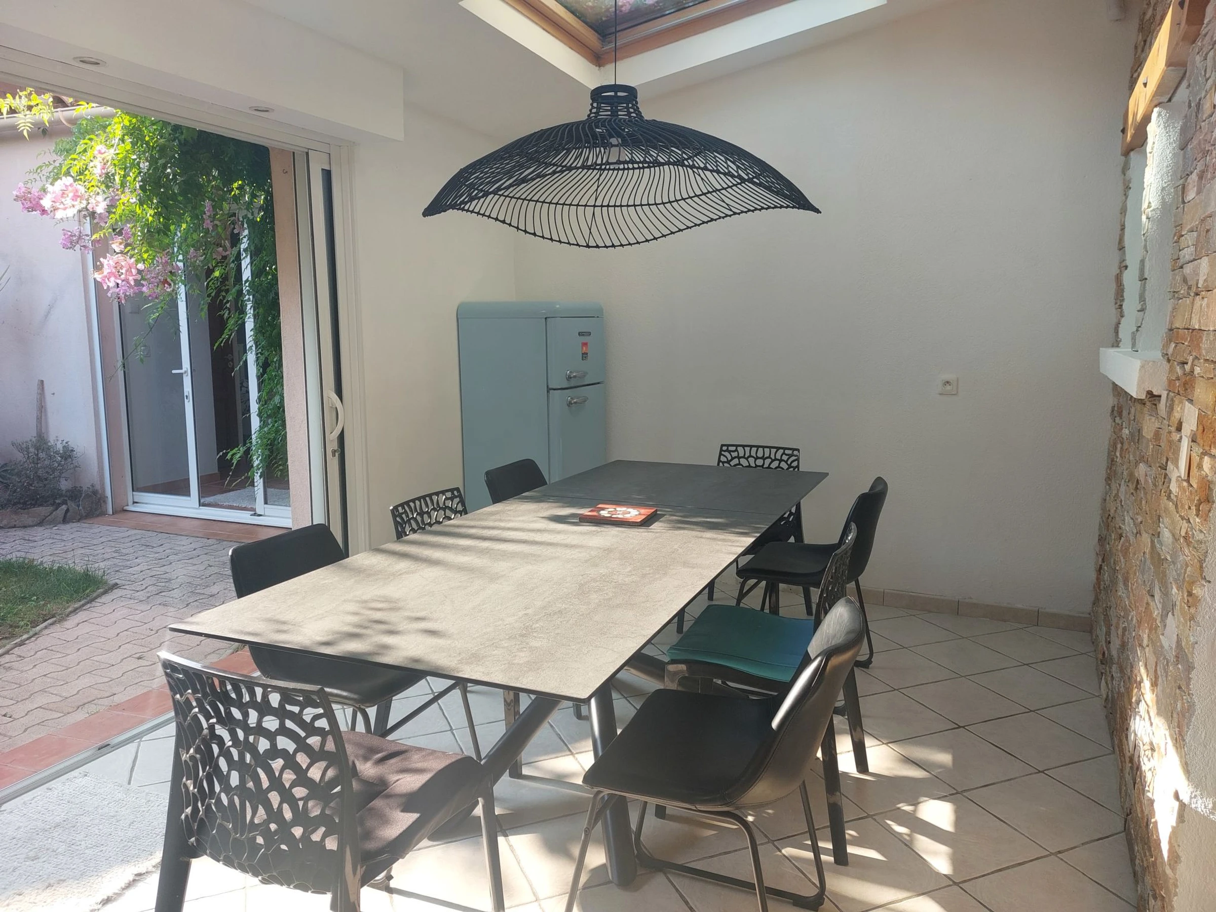 "La maison du Port", maison 5 pièces 150 m2 sur 3 niveaux. Aménagement agréable: séjour avec poêle suédois, TV et Télévision numérique (écran plat). Sortie sur la terrasse. Salle à manger avec table pour les repas. Sortie sur le jardinet. 1 chambre avec 1 grand-lit (140 cm, longueur 190 cm), douche/WC. Sortie sur le jardinet. Cuisine ouverte (four, lave-vaisselle, 3 plaques à induction, grille-pain, bouilloire électrique, micro-ondes, congélateur, cafetière électrique). WC séparé. À l'étage supérieur: bureau. Sortie sur la terrasse. 1 chambre avec Dressing avec 1 grand-lit (160 cm, longueur 190 cm), air-conditionné. Sortie sur la terrasse. 1 chambre avec 1 grand-lit (140 cm, longueur 190 cm), air-conditionné. Douche/WC. 2ème étage: (escalier raide) 1 chambre, mansardée avec fenêtre sous le toit avec 1 grand-lit (140 cm, longueur 190 cm). Chauffage électrique. Meubles de terrasse, barbecue (portable), chaises longues (6). Vue partielle sur la mer et le port. A disposition: lave-linge, fer à repasser. Internet (Connexion WIFI, gratuit). Veuillez noter: une chambre double est à l'exterieur de l'appartement. Maison non-fumeur. Maximum 1 animal/ chien autorisé. Détecteur de fumée. Annonce d'un particulier  (art 155, IV du CGI).