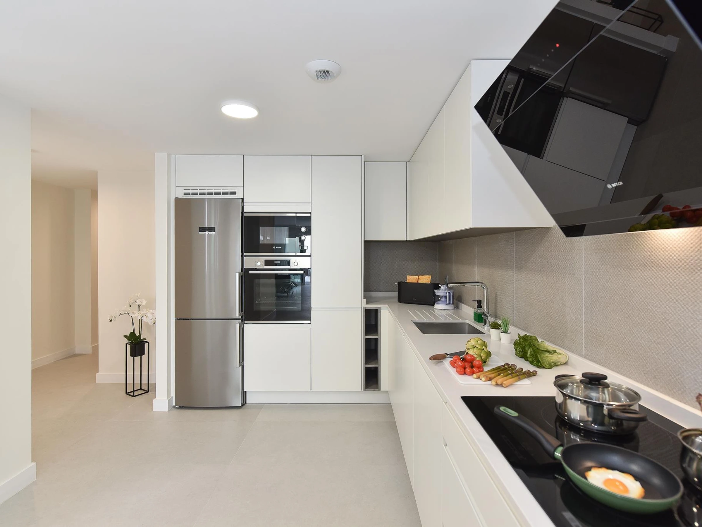 La cuisine, est équipée avec réfrigérateur, micro-ondes, four, congélateur, lave-vaisselle, ustensiles/cuisine, cafetière et grille pain.