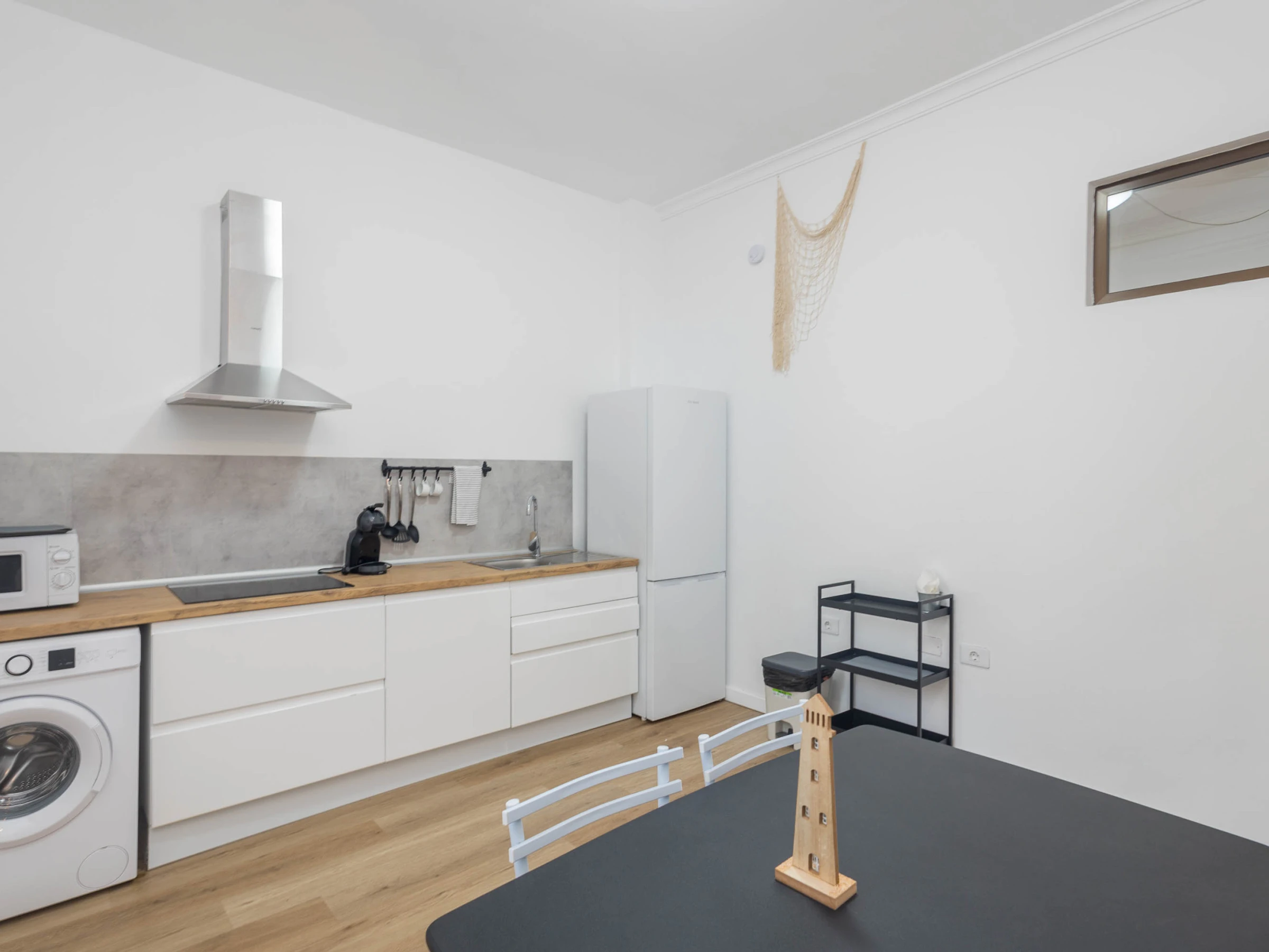 La cuisine indépendante est entièrement équipée avec tout le nécessaire, et la salle de bain avec douche offre praticité et confort pendant le séjour.