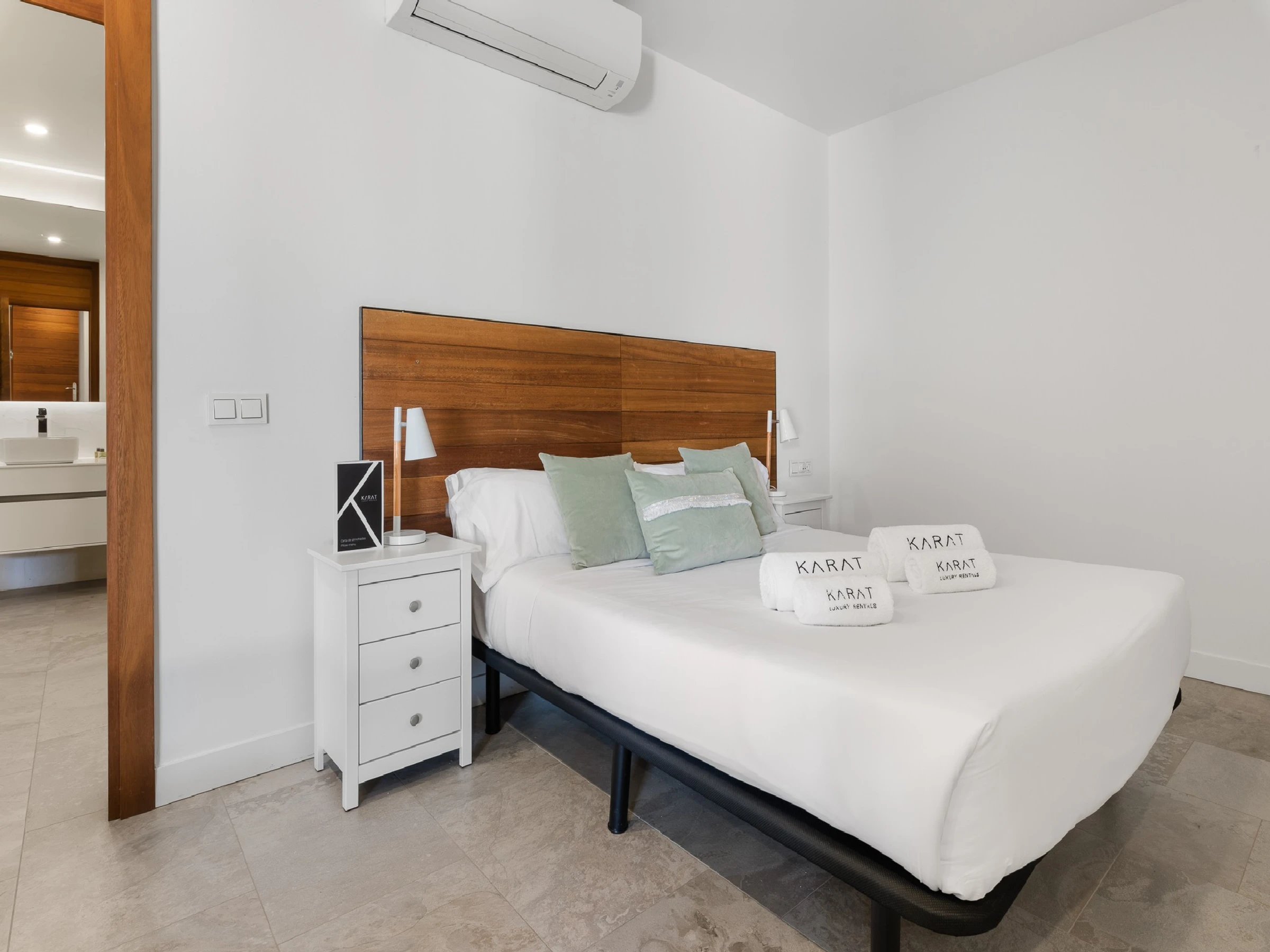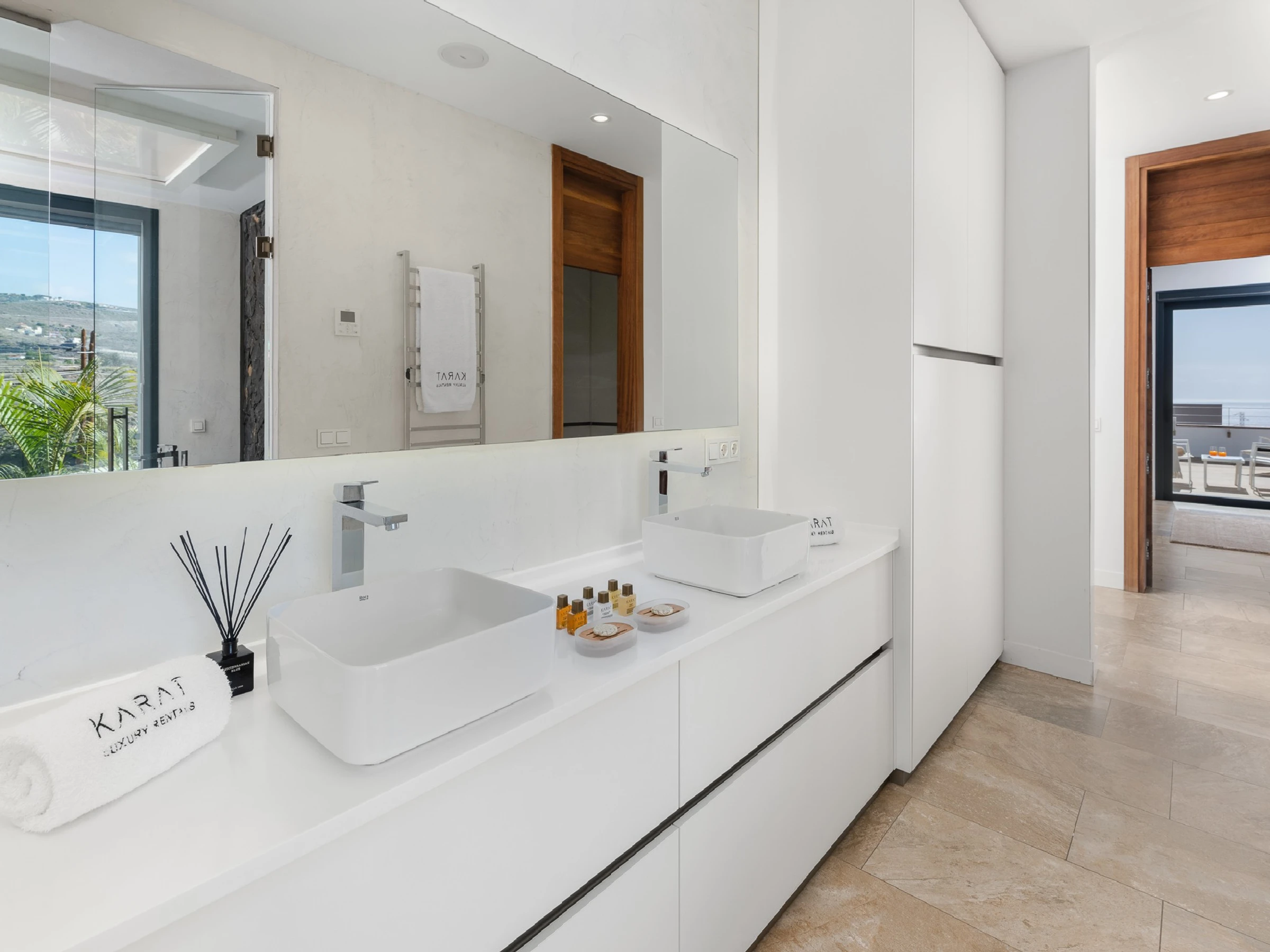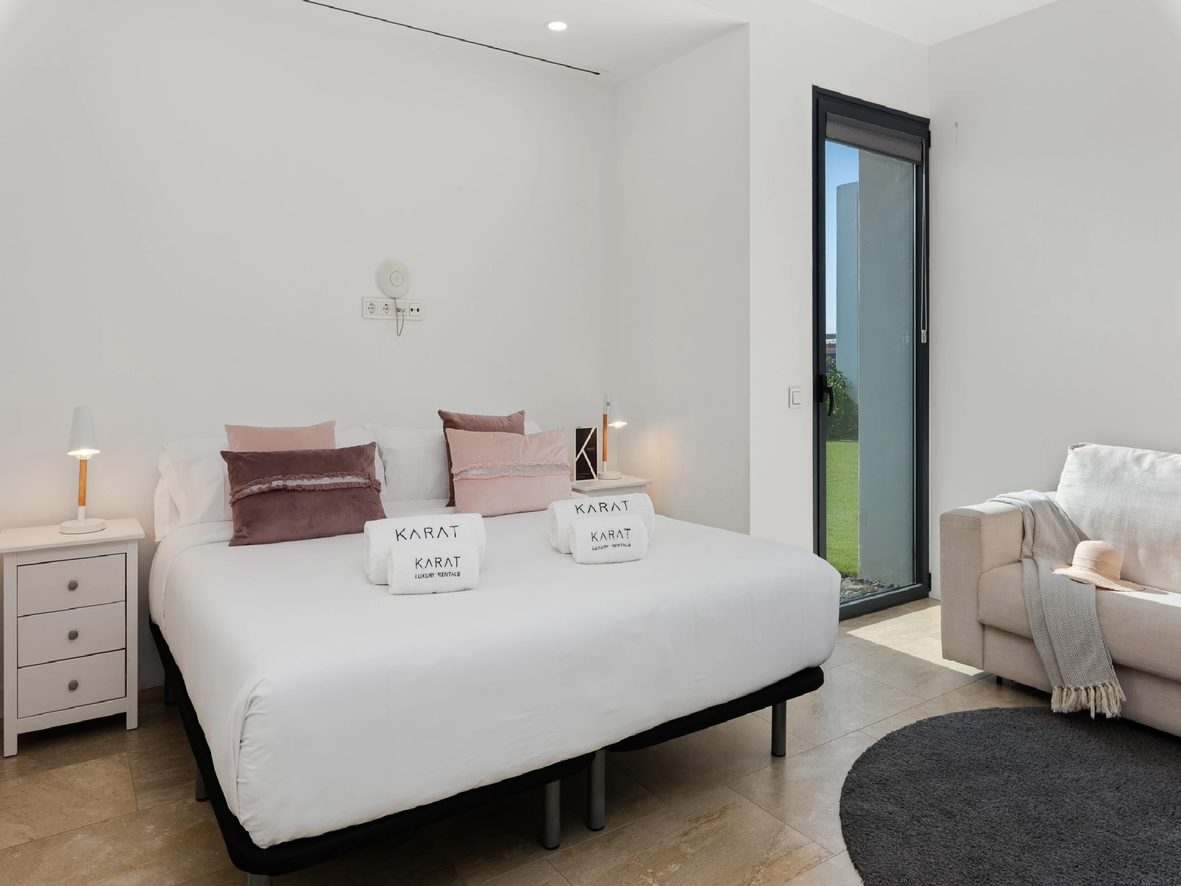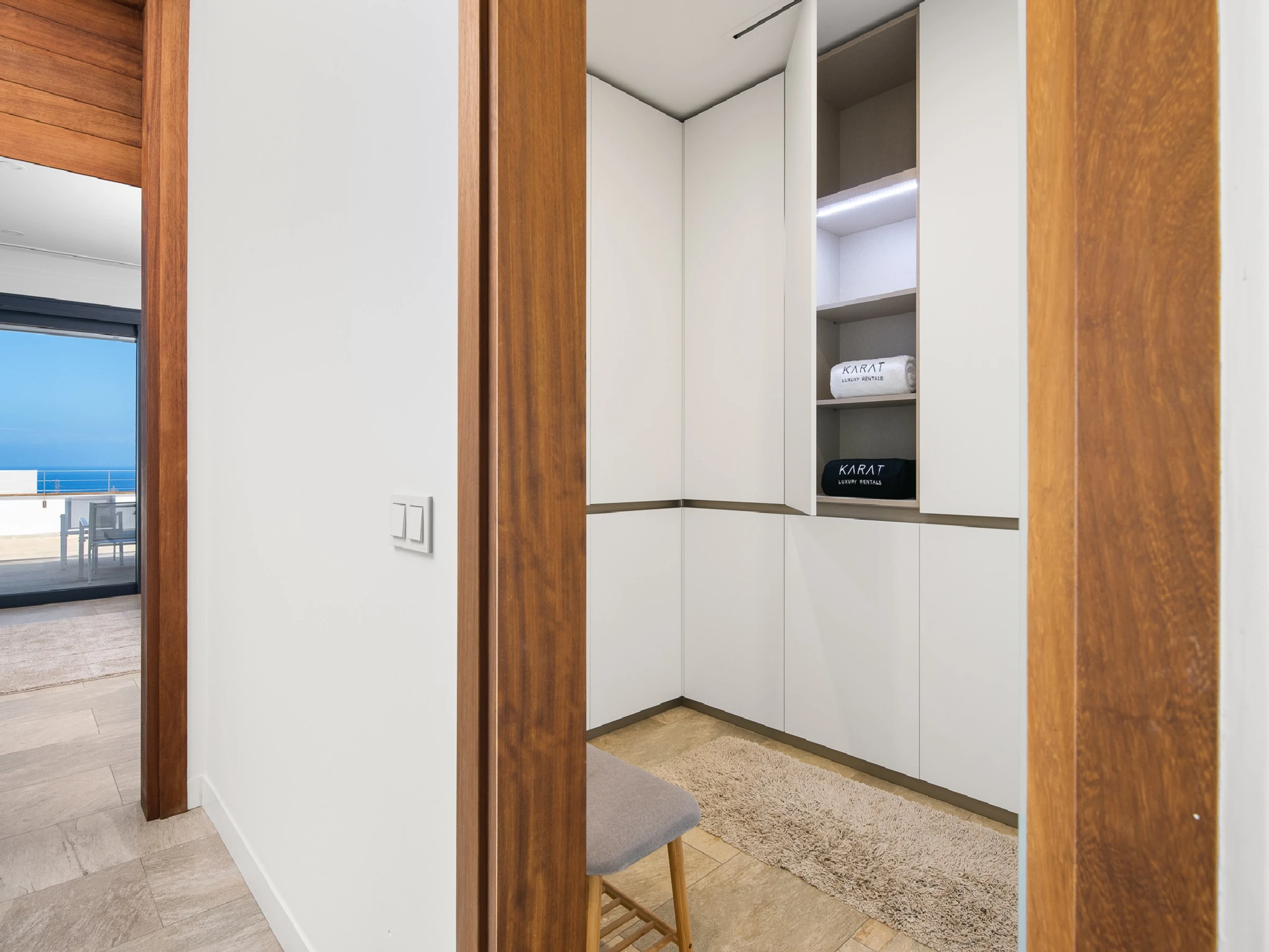 Elle dispose de terrasse, lave-linge, sèche-linge, barbecue, fer à repasser, coffre-fort, accès internet, balcon, salle de sport, alarme, sauna, climatisation, piscine chauffée privée, 1 Télévision.