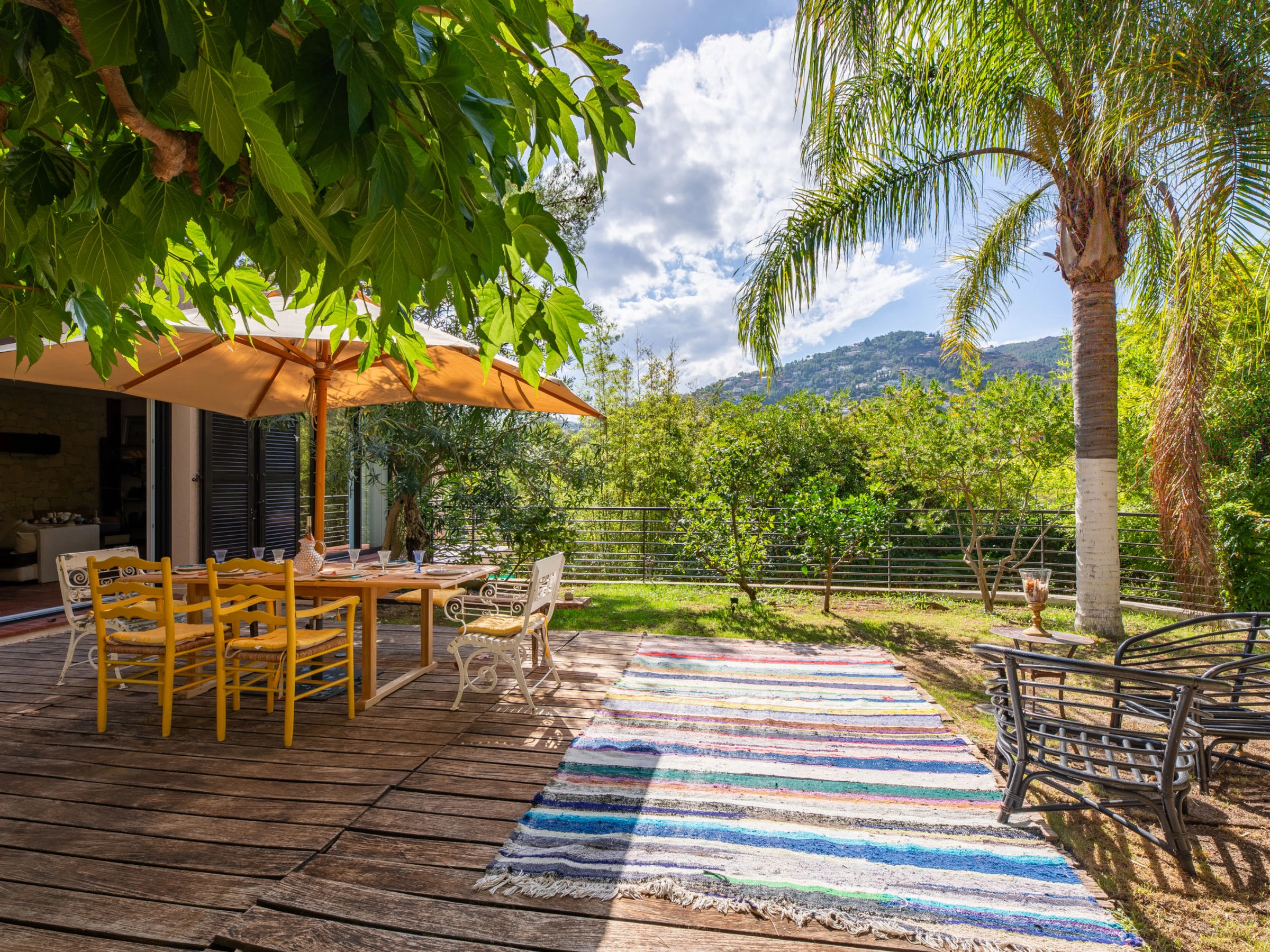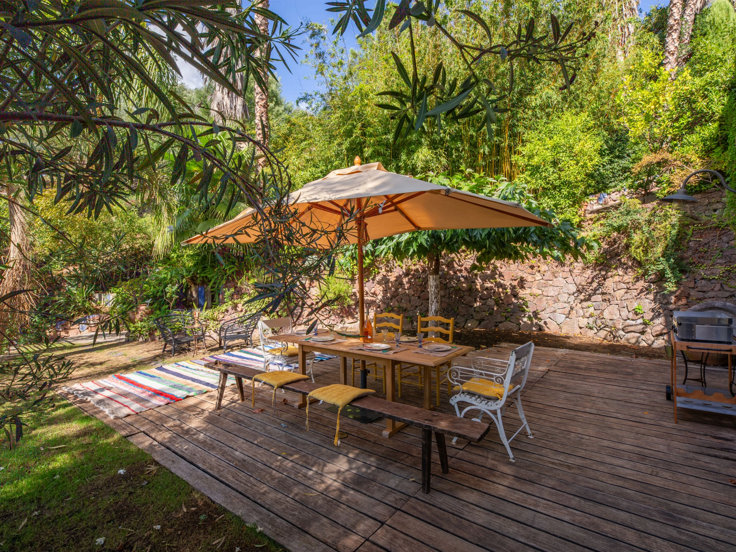"Villa 50", maison 4 pièces 113 m2 sur 2 niveaux. Aménagement plaisant: 1 chambre avec 1 lit (120 cm, longueur 190 cm), douche/WC et ventilateur. À l'étage inférieur: séjour/salle à manger avec 1 divan-lit double (2 x 80 cm, longueur 200 cm), cheminée et ventilateur. Sortie sur la terrasse. Cuisine/séjour (four, lave-vaisselle, 5 feux, grille-pain, bouilloire électrique, micro-ondes, cafetière électrique). Douche/WC. À l'étage supérieur: 1 chambre avec 1 grand-lit (180 cm, longueur 200 cm), ventilateur. Sortie sur le balcon. 1 chambre avec 2 lits (90 cm, longueur 190 cm), air-conditionné. Sortie sur le balcon. Salle de bains, WC séparé. Chauffage électrique. Grande terrasse 50 m2, situation ouest. Meubles de terrasse, barbecue électrique, chaises longues (4). Belle vue panoramique sur la vallée. A disposition: lave-linge. Internet (Connexion WIFI). Place de parking (1 Voiture). Veuillez noter: adapté(e) aux familles. Maison non-fumeur. 1 animal/ chien autorisé. Détecteur de fumée. Annonce d'un professionnel (art 155, IV du CGI) [hidden]