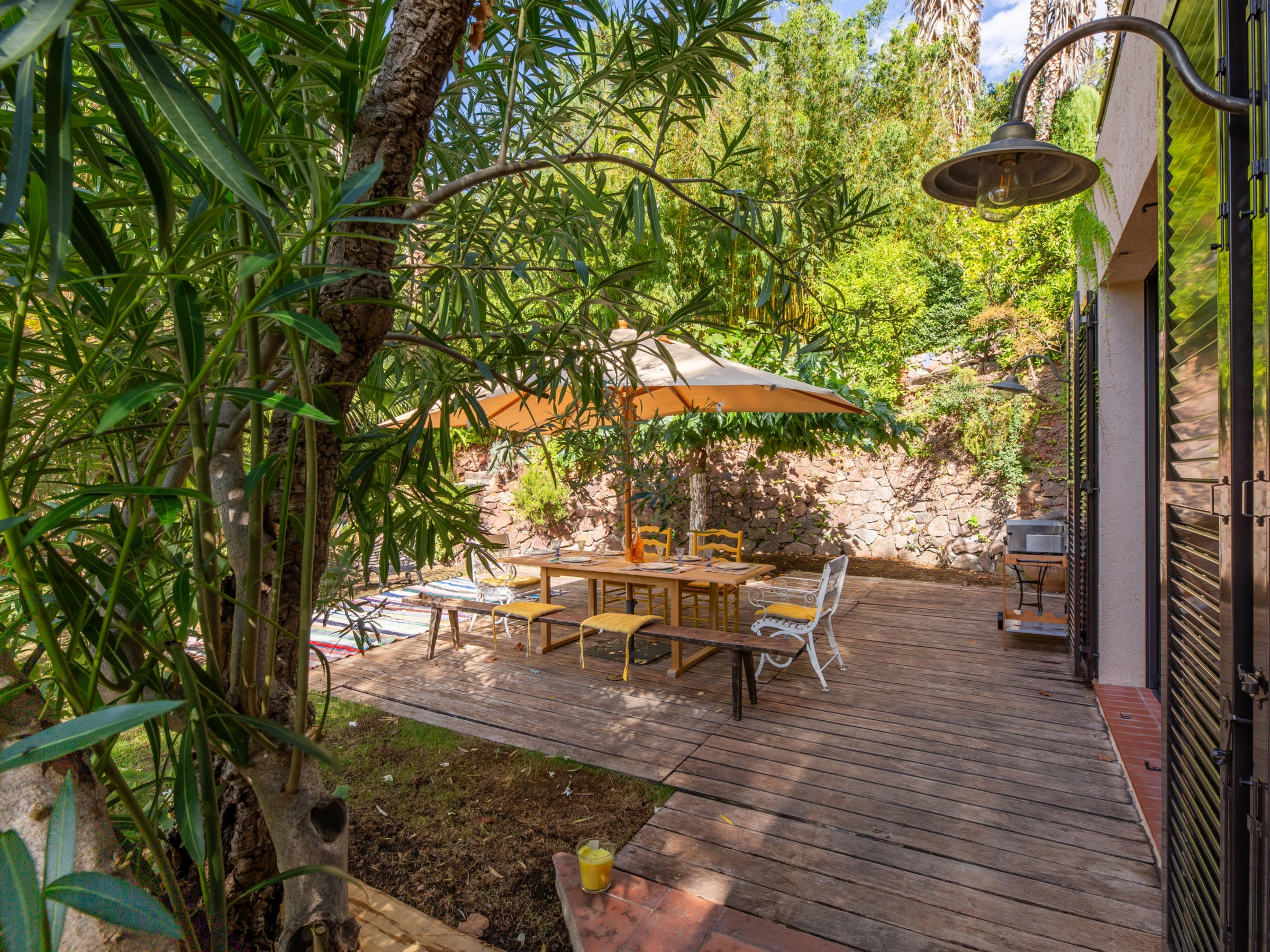 Maison individuelle "Villa 50", de 2 étages. Dans un quartier résidentiel, à 600 m de la mer, à 600 m de la plage. A usage privé: jardin entretenu 570 m2 (clôturé), place de parking. Magasins 1 km, supermarché 6 km, restaurant 600 m, arrêt de bus 400 m, plage de sable 600 m. Port plaisance 600 m, terrain de golf (18 trous) 12 km, chemins de randonnées pédestres depuis la maison 500 m. Attractions à proximité: Cannes 16 km, Nice 45 km. Région de randonnées: Esterel 500 m. Veuillez noter: voiture recommandée. Le propriétaire n'accepte pas les groupes de jeunes.