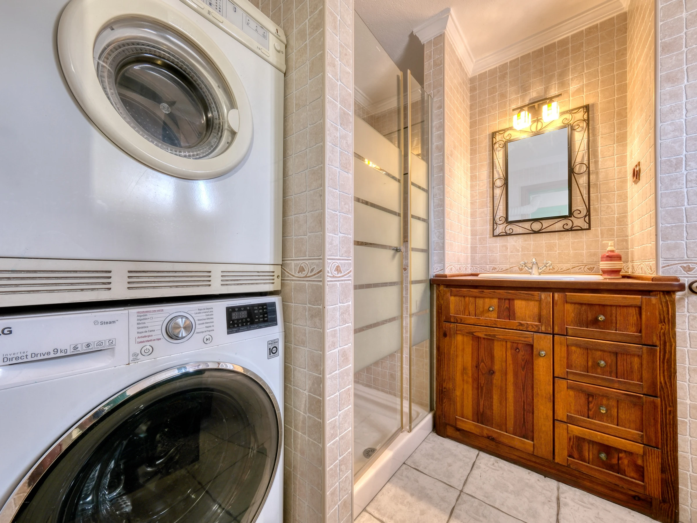 Le logement est un duplex avec deux chambres très confortables. Au rez-de-chaussée se trouve une chambre avec un lit king size, un dressing et une salle de bain attenante, offrant une intimité et un confort maximum. À l'étage, vous trouverez une autre chambre avec un lit de matrimonial et un grand placard.