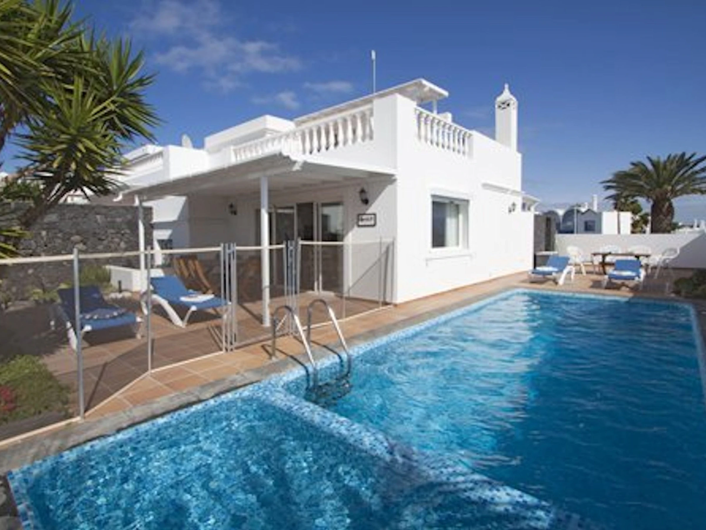 Cette superbe maison mitoyenne est située dans le quartier prisé de Los Mojones à Puerto del Carmen. Idéalement située à quelques pas de la vieille ville, du port et de l'avenue principale avec sa plage de sable doré, ses bars et restaurants, elle dispose de sa propre terrasse spacieuse et d'une piscine privée (chauffée en hiver). La piscine est équipée d'une clôture grillagée avec portail verrouillable afin que les jeunes enfants ne puissent pas y accéder sans surveillance. La clôture peut être repliée si vous ne souhaitez pas l'utiliser sans enfants.