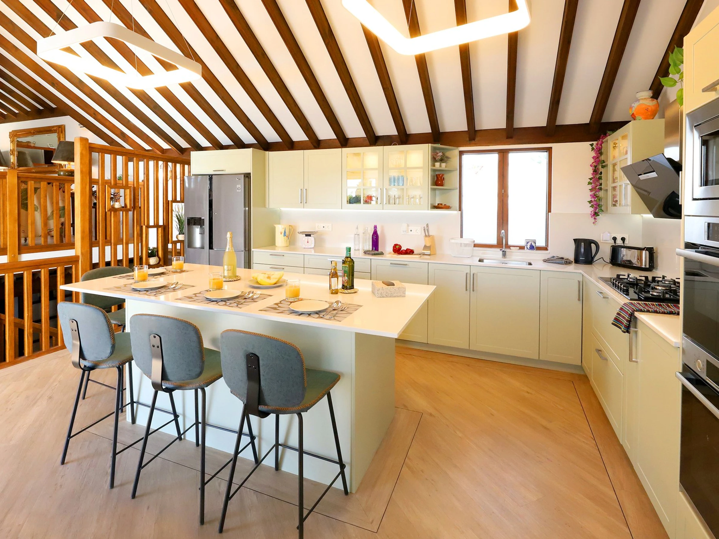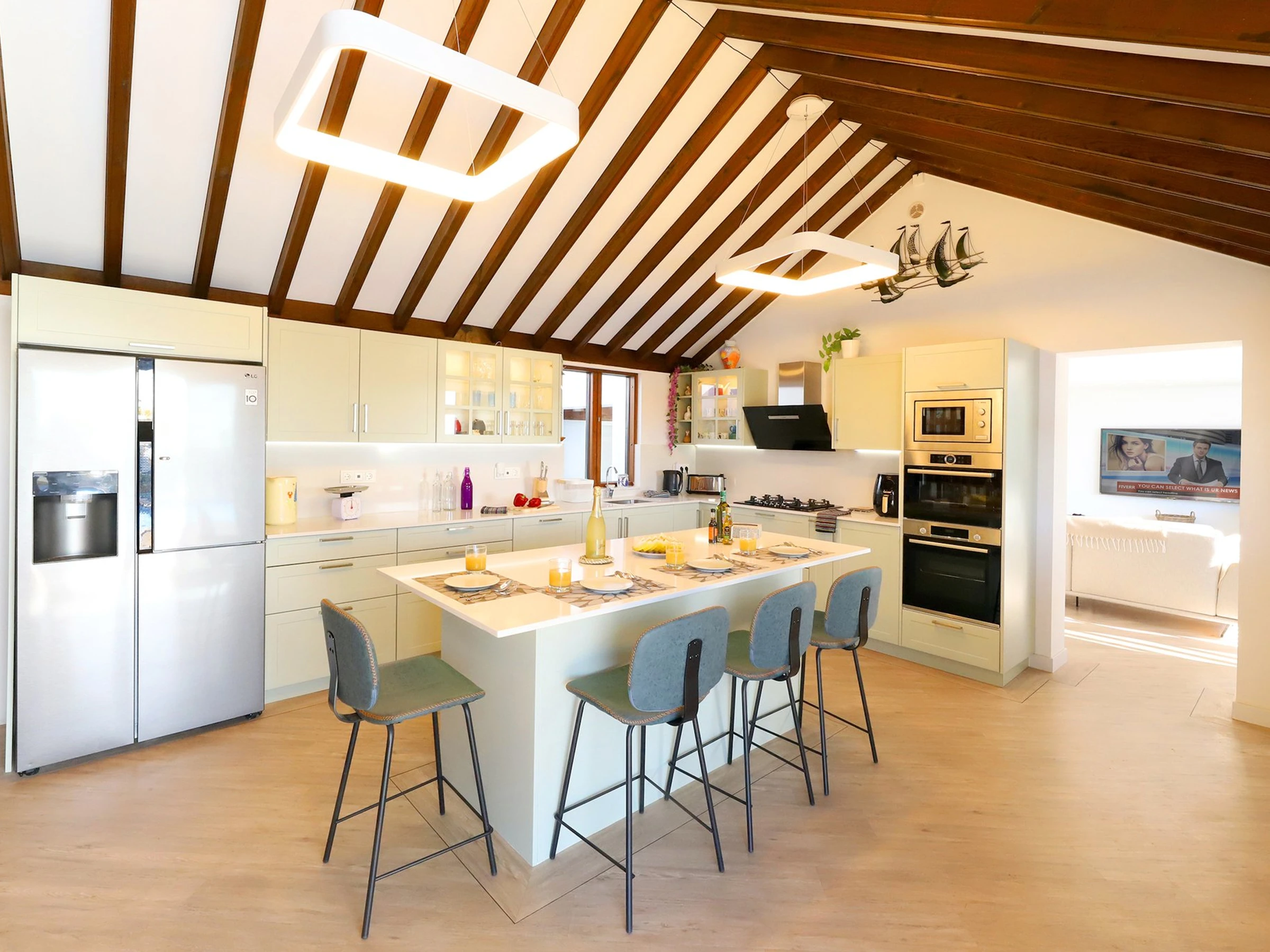 La cuisine, est équipée avec réfrigérateur, micro-ondes, four, congélateur, lave-vaisselle et cafetière.