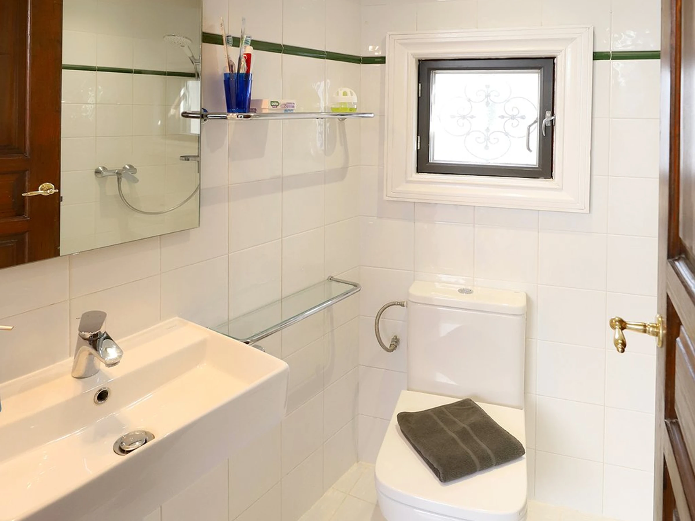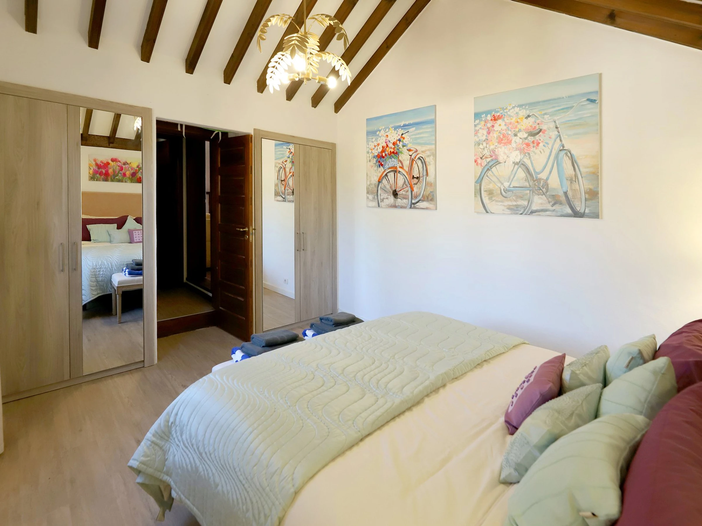 Elle dispose de terrasse, lave-linge, sèche-linge, barbecue, fer à repasser, accès internet, alarme, climatisation, piscine collective, piscine chauffée privée, 1 Télévision.