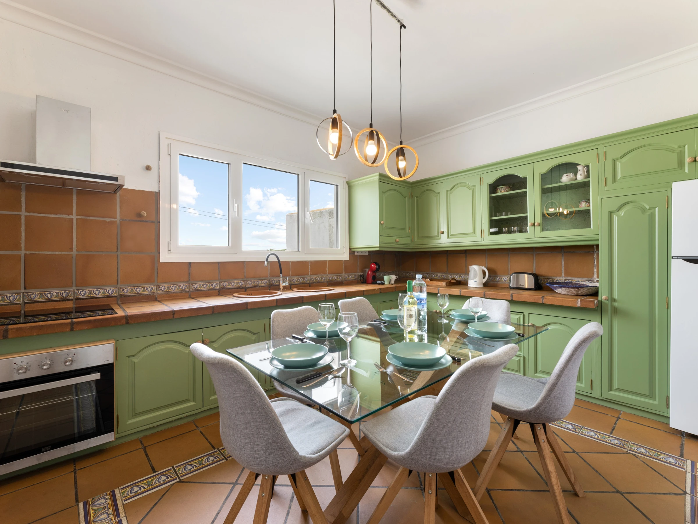 La cuisine, est équipée avec réfrigérateur, micro-ondes, four, congélateur, vaisselle/couverts, ustensiles/cuisine, cafetière, grille pain, bouilloire et presse-agrumes.