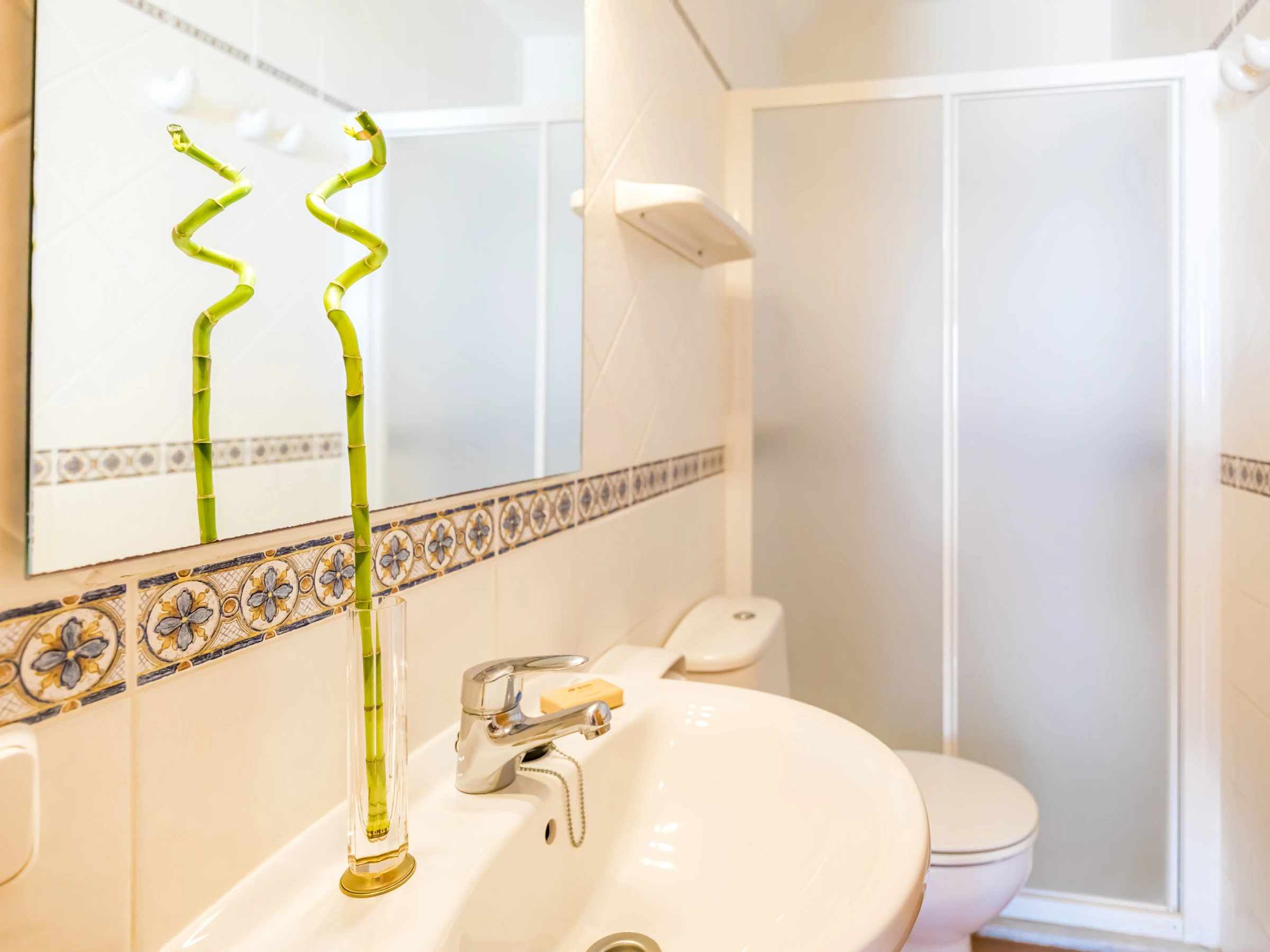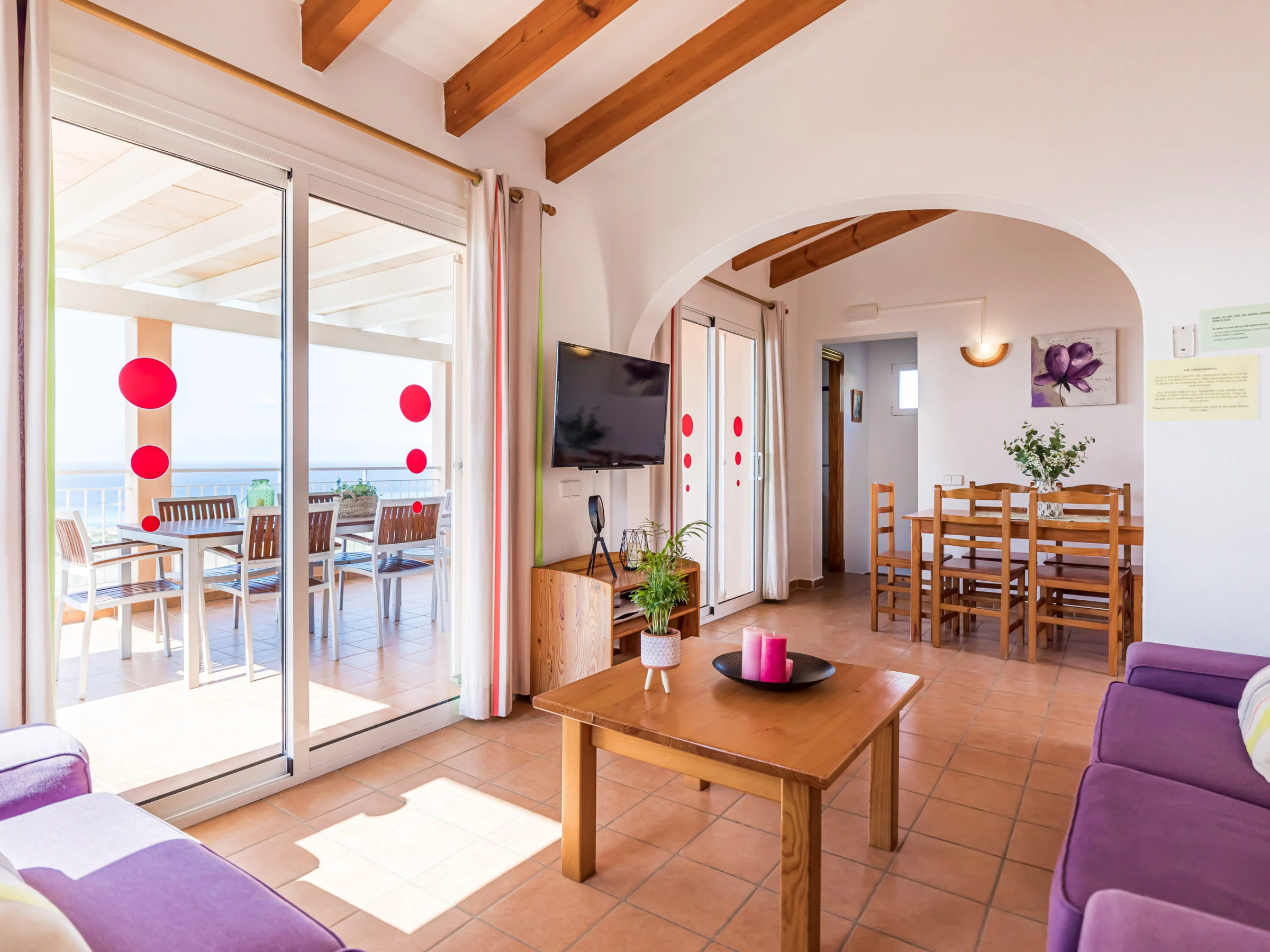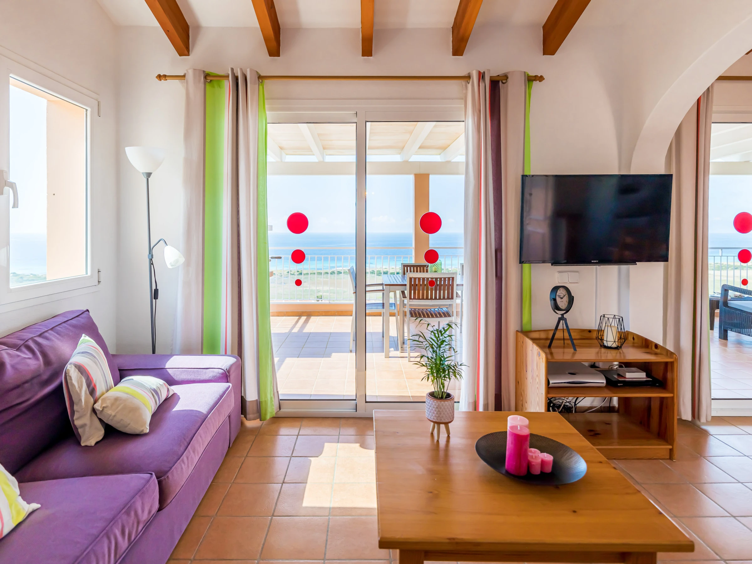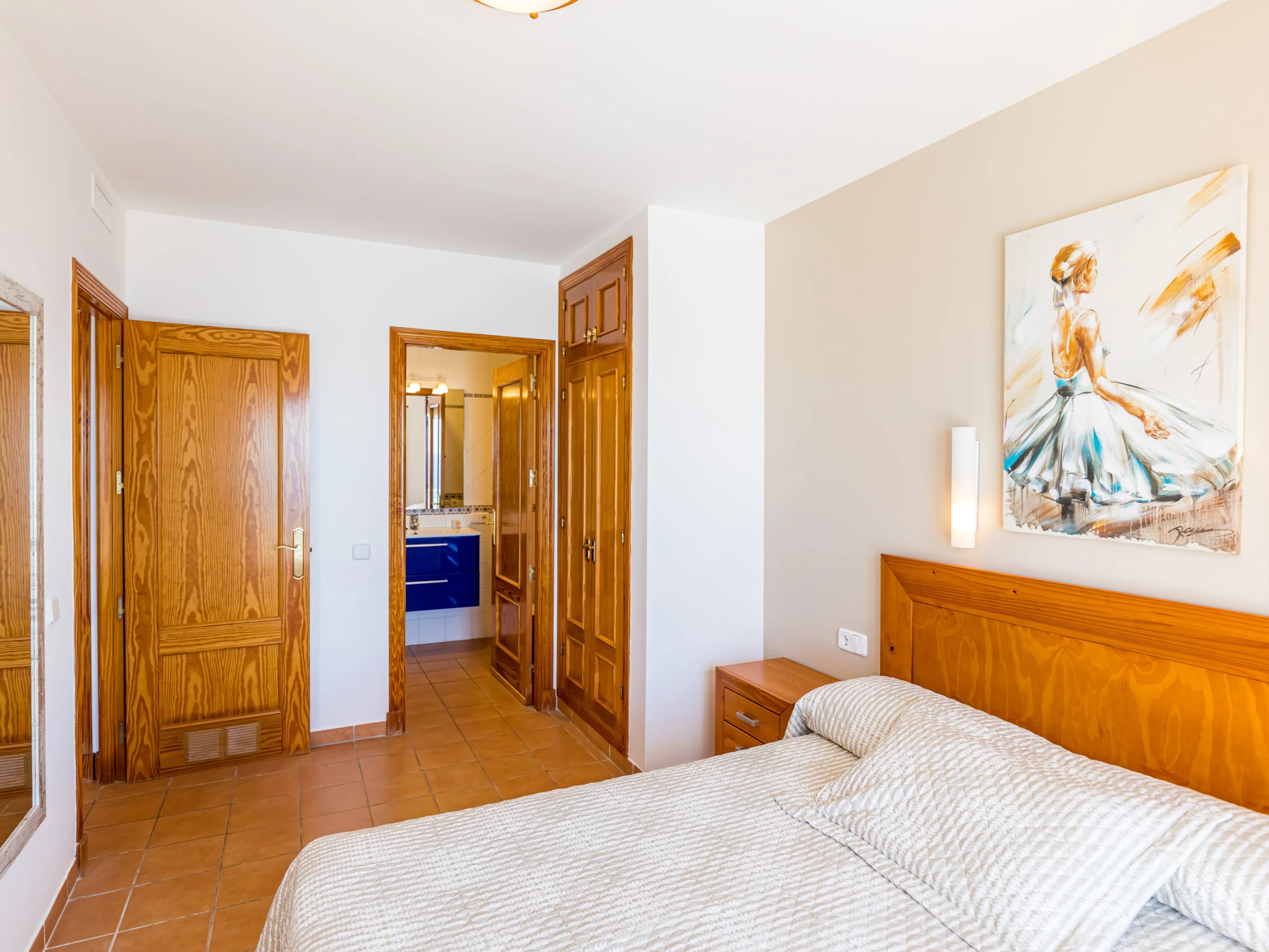 Le logement est réparti sur deux étages. À l'étage supérieur se trouve la zone commune, composée d'un grand salon-salle à manger lumineux avec cuisine intégrée, entièrement équipée avec bouilloire, micro-ondes, machine à café Dolce Gusto, mixeur, presse-agrumes, grille-pain, réfrigérateur, plaque vitrocéramique, four, lave-linge, fer à repasser et planche à repasser. À cet étage se trouve également un toilette et une agréable terrasse couverte avec zone barbecue, parfaite comme salle à manger alternative tout en profitant de magnifiques vues sur la mer.