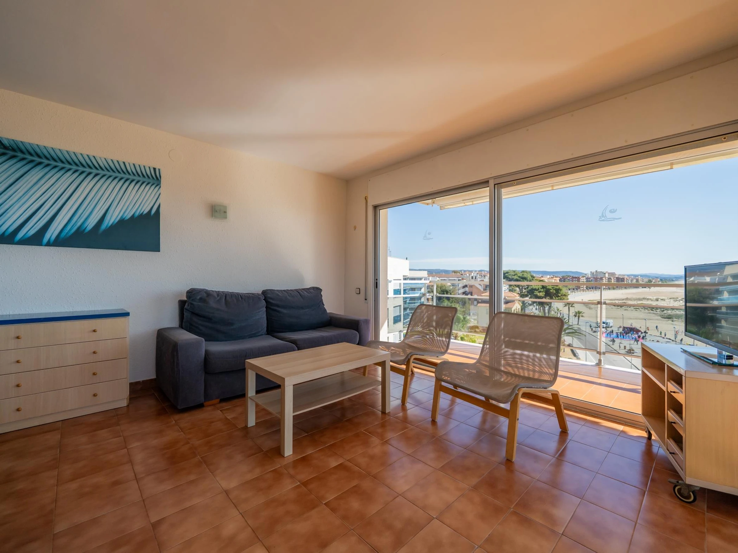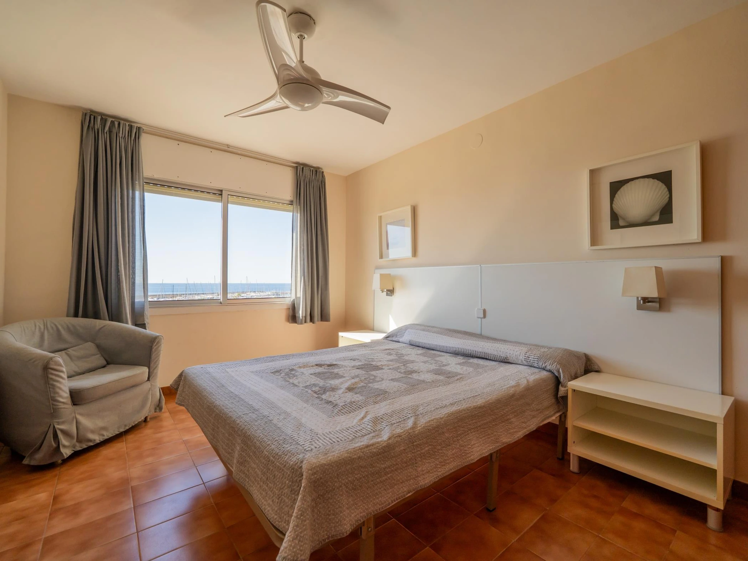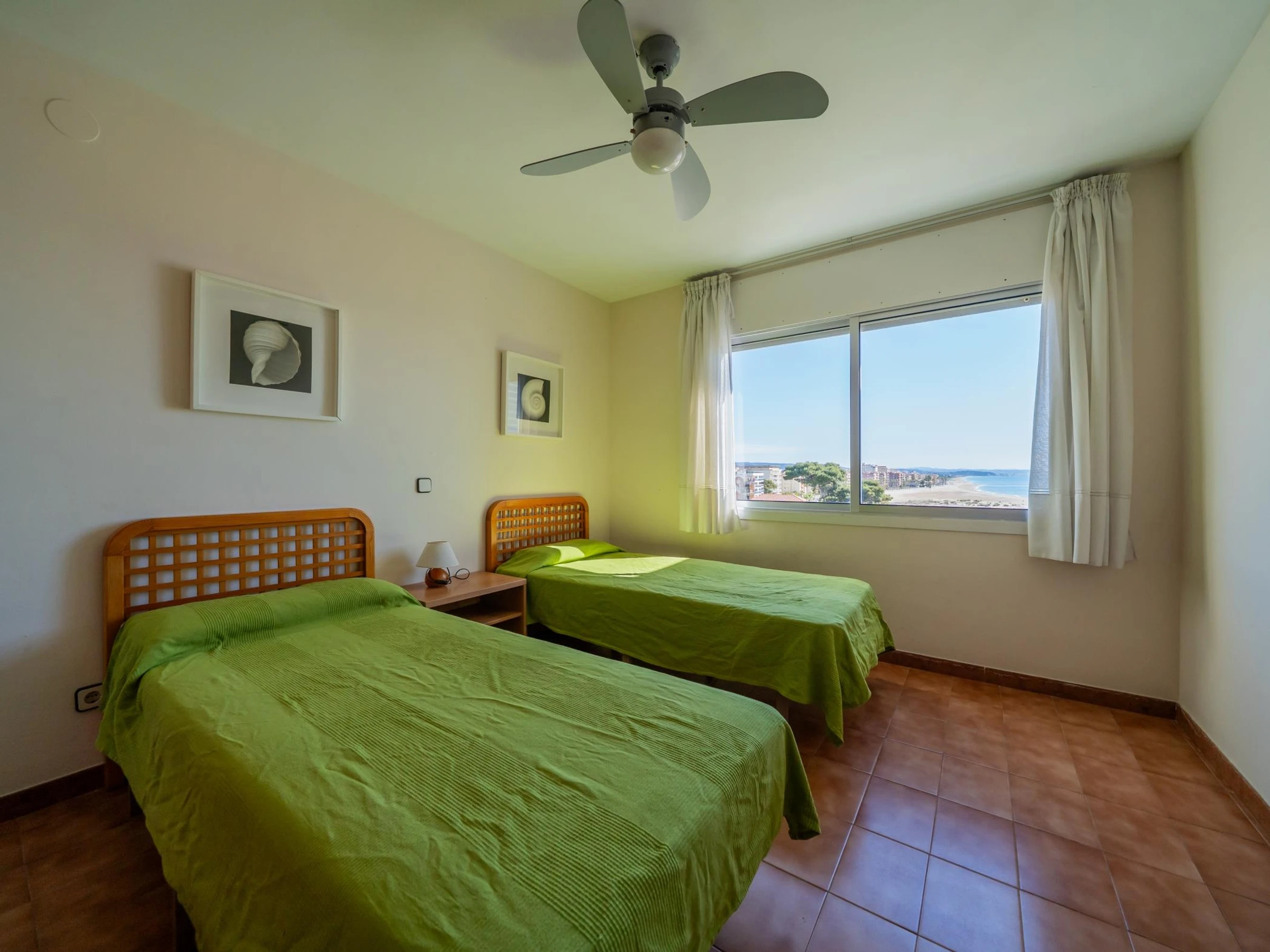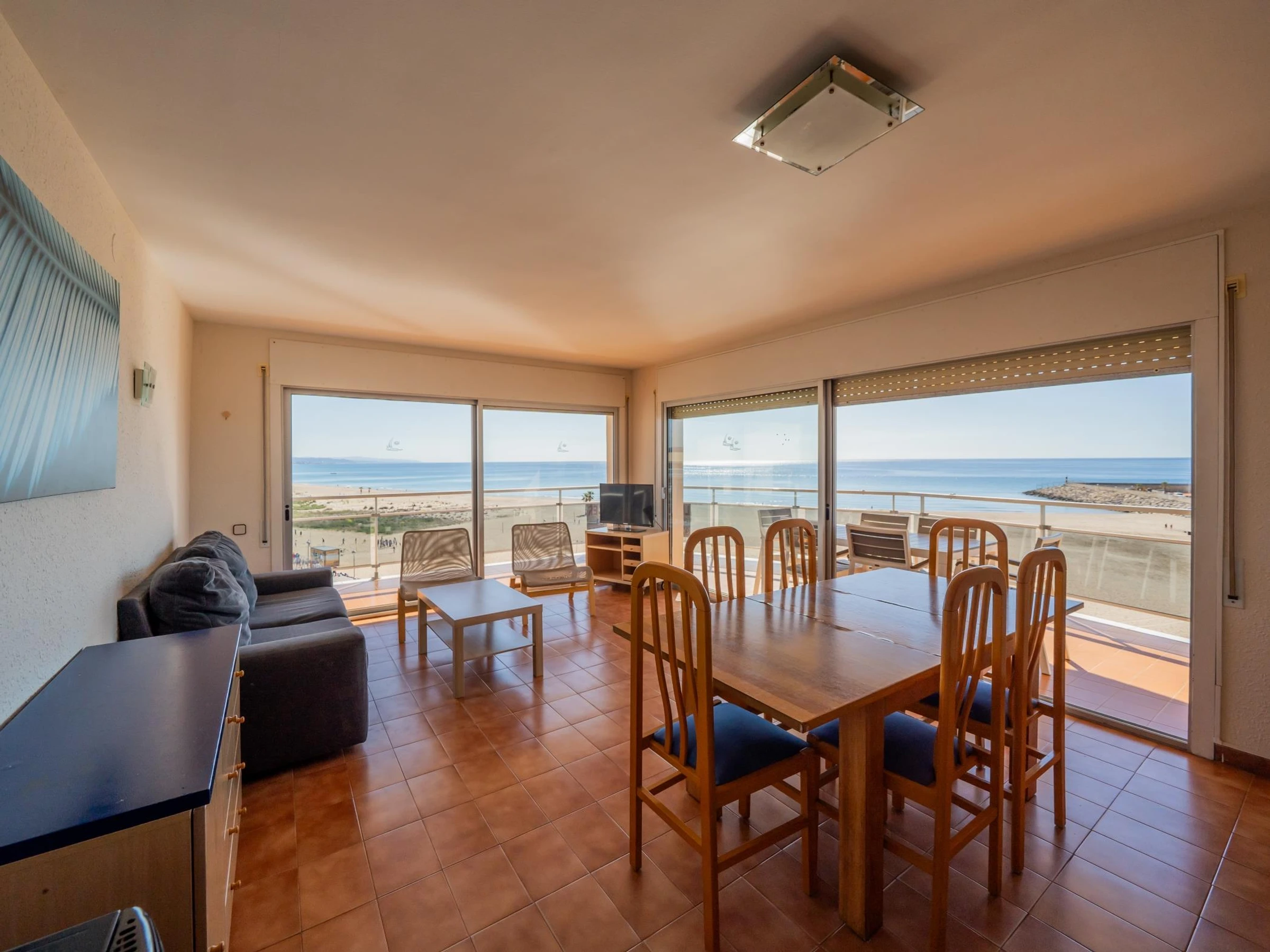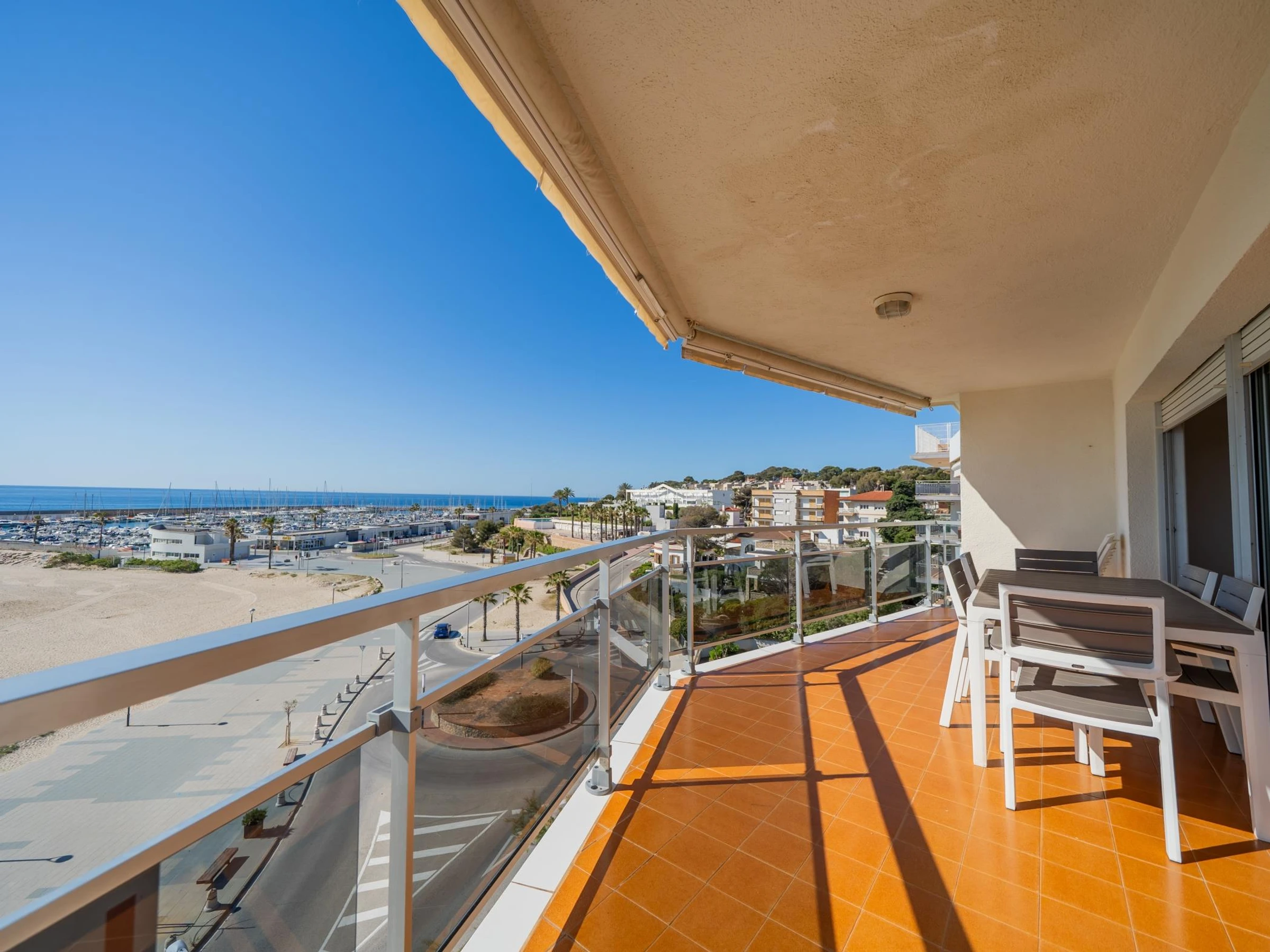Appartement de 100 m2 en front de mer au 5ème étage avec ascenseur. Il comprend 4 chambres (une avec 1 lit double, deux avec 2 lits simples et une avec 1 lit simple), 2 salles de bains avec baignoire chacune et une cuisine entièrement équipée. Il dispose également d'un ventilateur, d'une terrasse avec de très bonnes vues sur la mer et d'une zone commune avec piscine. Il dispose également d'une connexion Wifi et d'une place de parking souterrain. Les appartements comprennent également le linge de lit et les serviettes de bain.