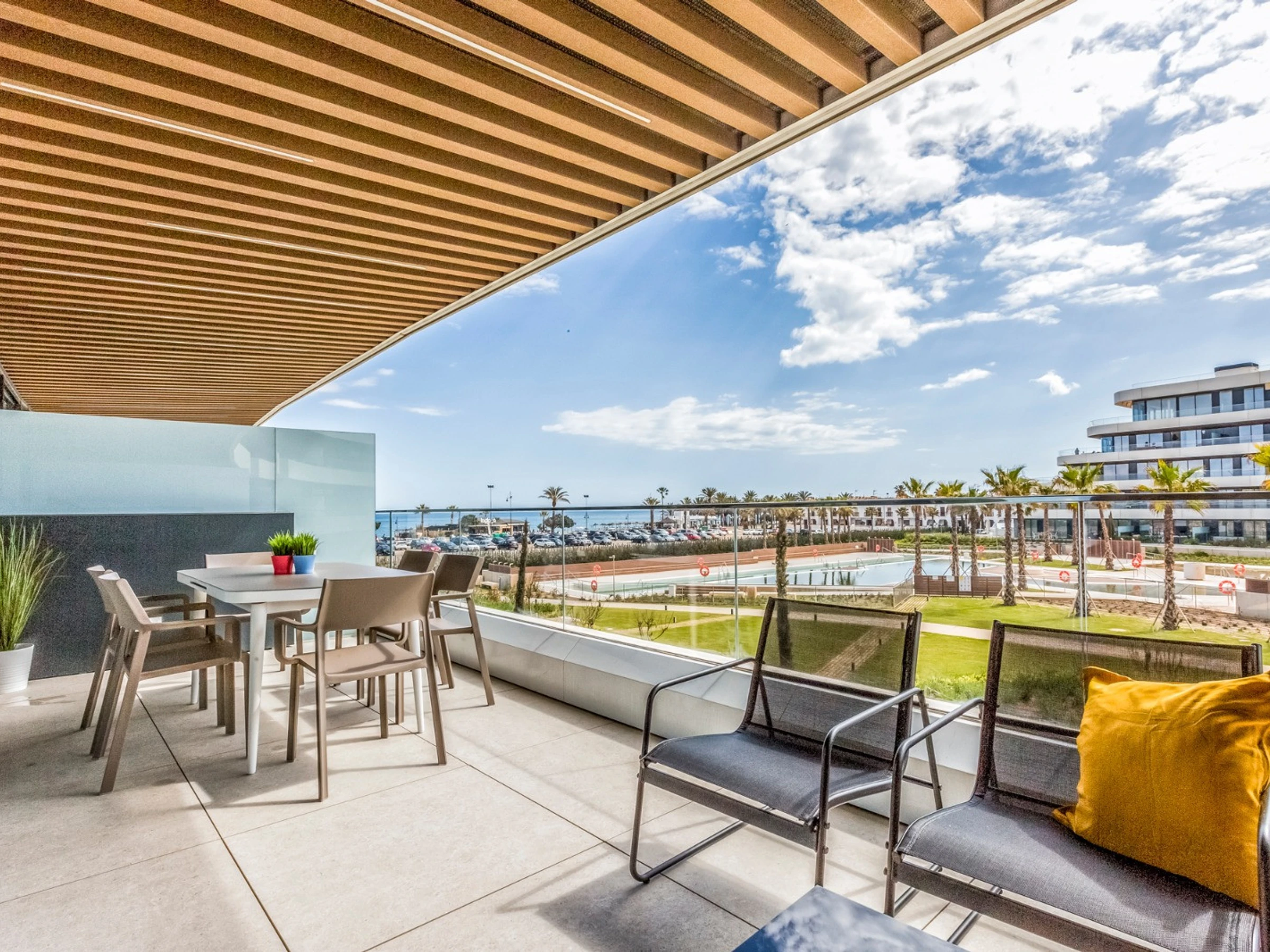 Logement de 100 m² confortable et de construction récente, situé en front de plage eten première ligne de golf, avec vue sur la mer et la montagne.